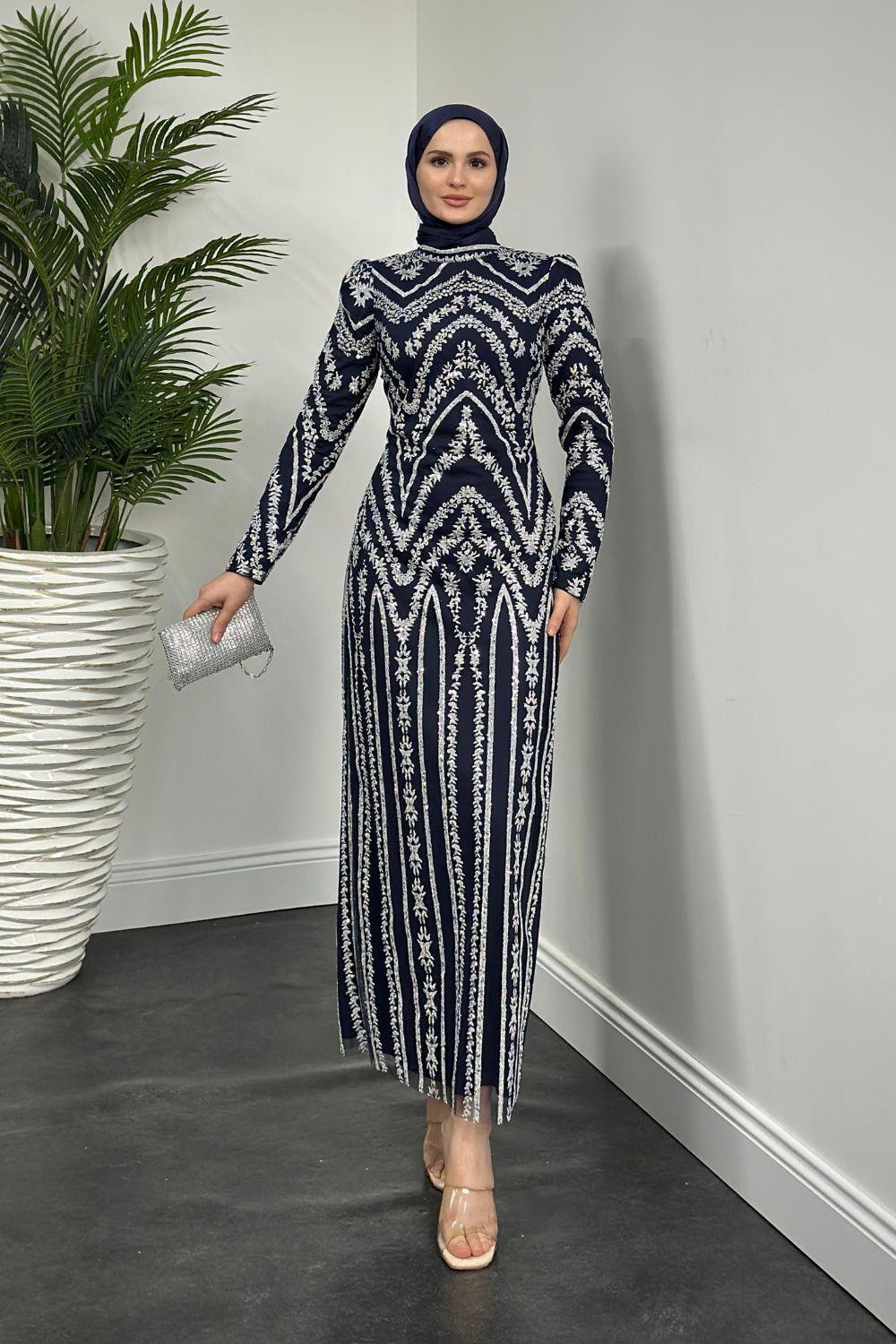 Liam Simli Desenli Abiye Lacivert