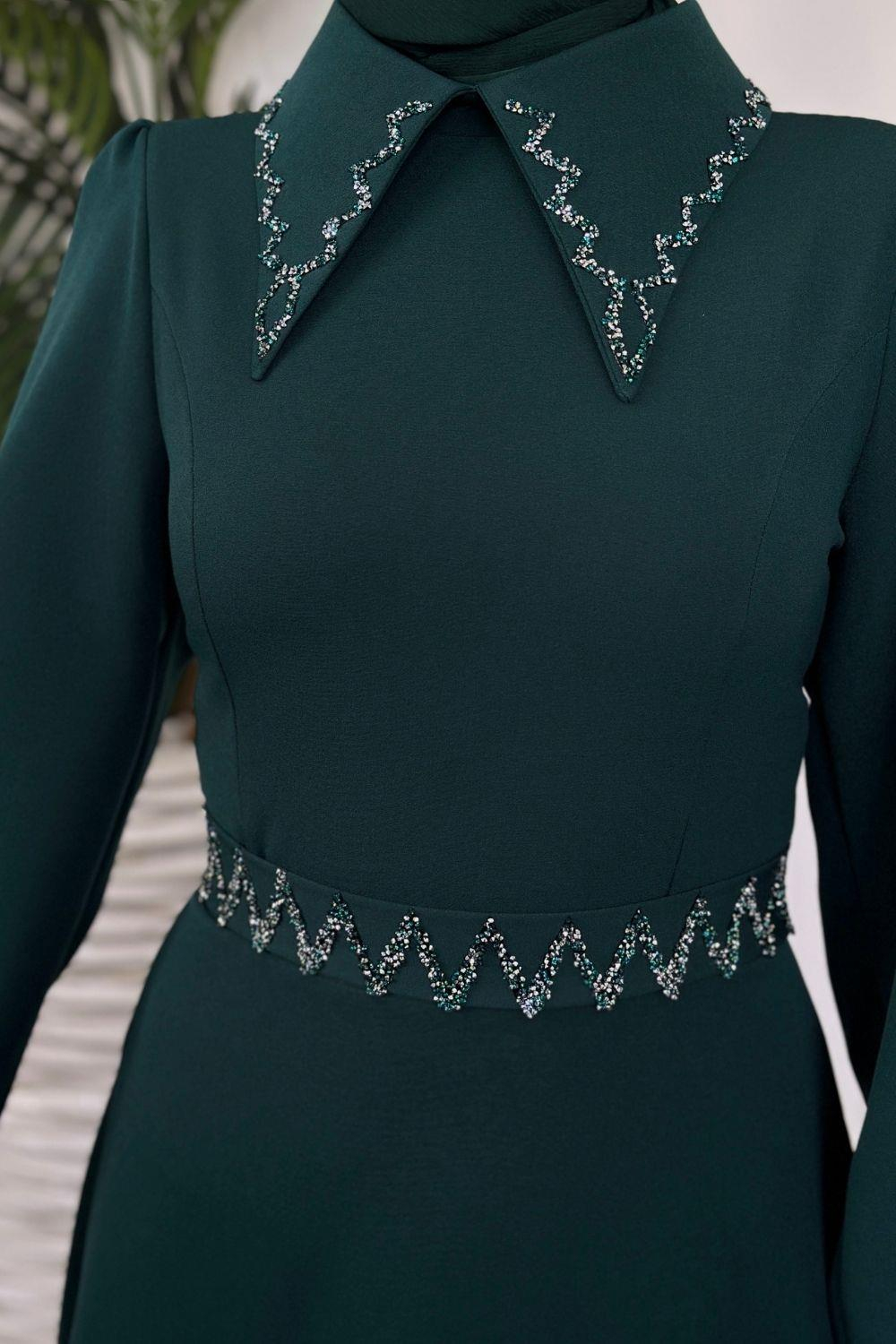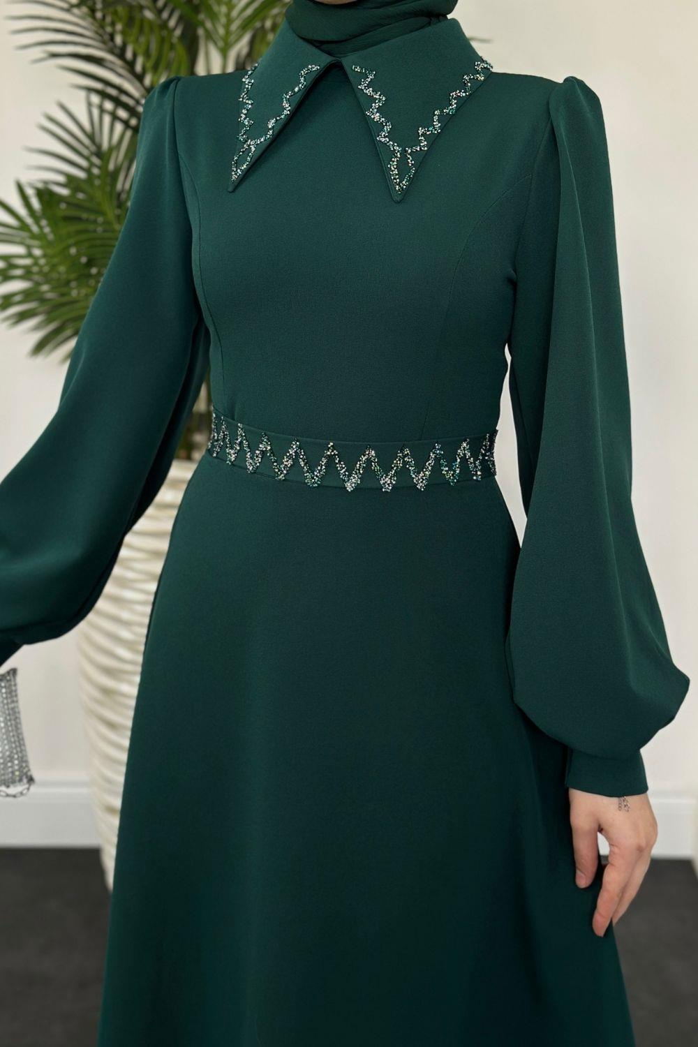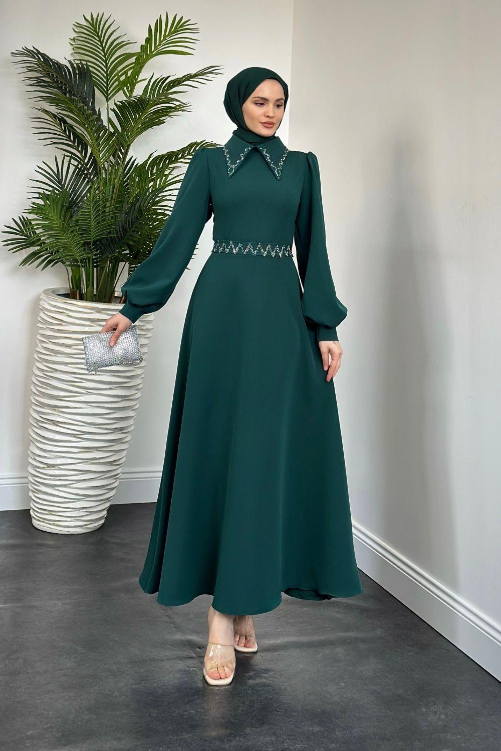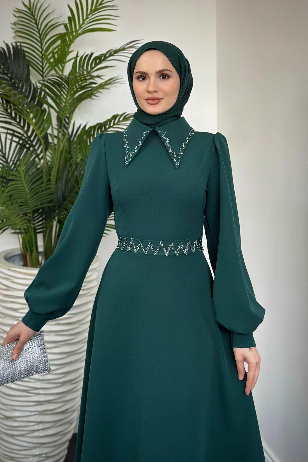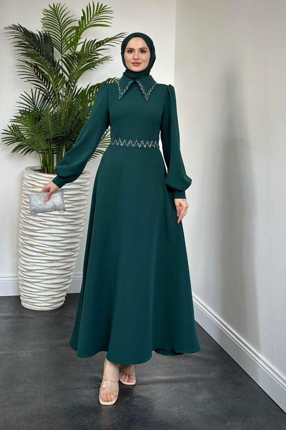 Nomi Yakası Taşlı Mevlana Kesim Abiye Zümrüt
