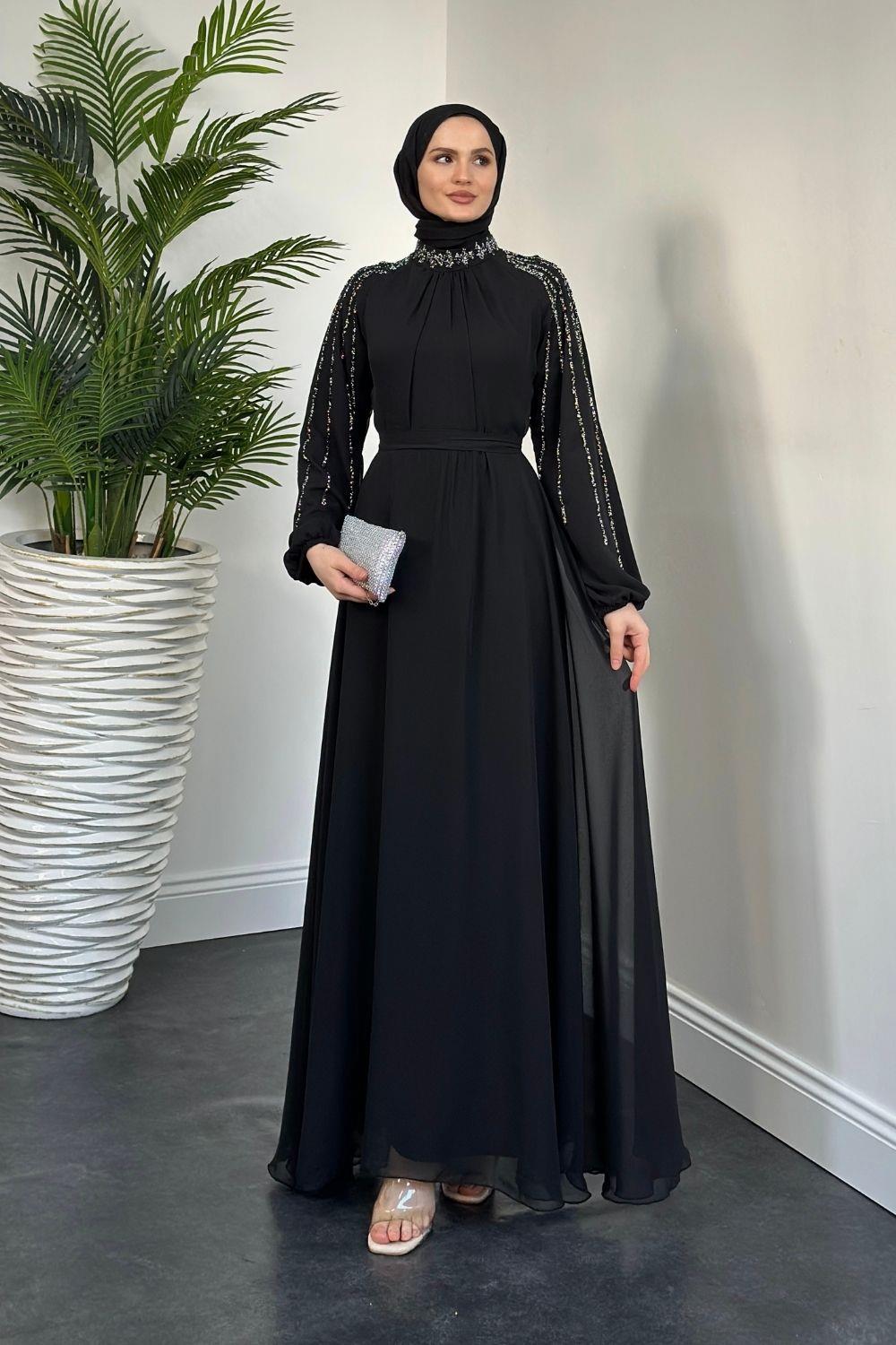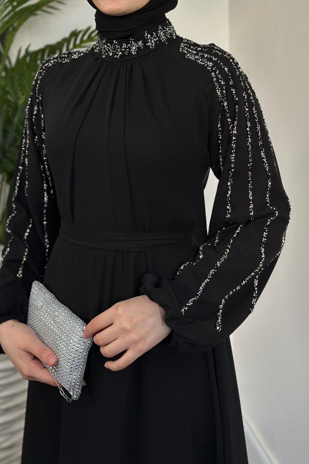 Jayla Kolları Taşlı Abiye Siyah