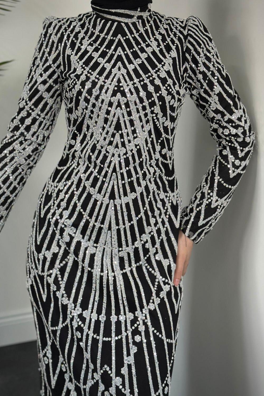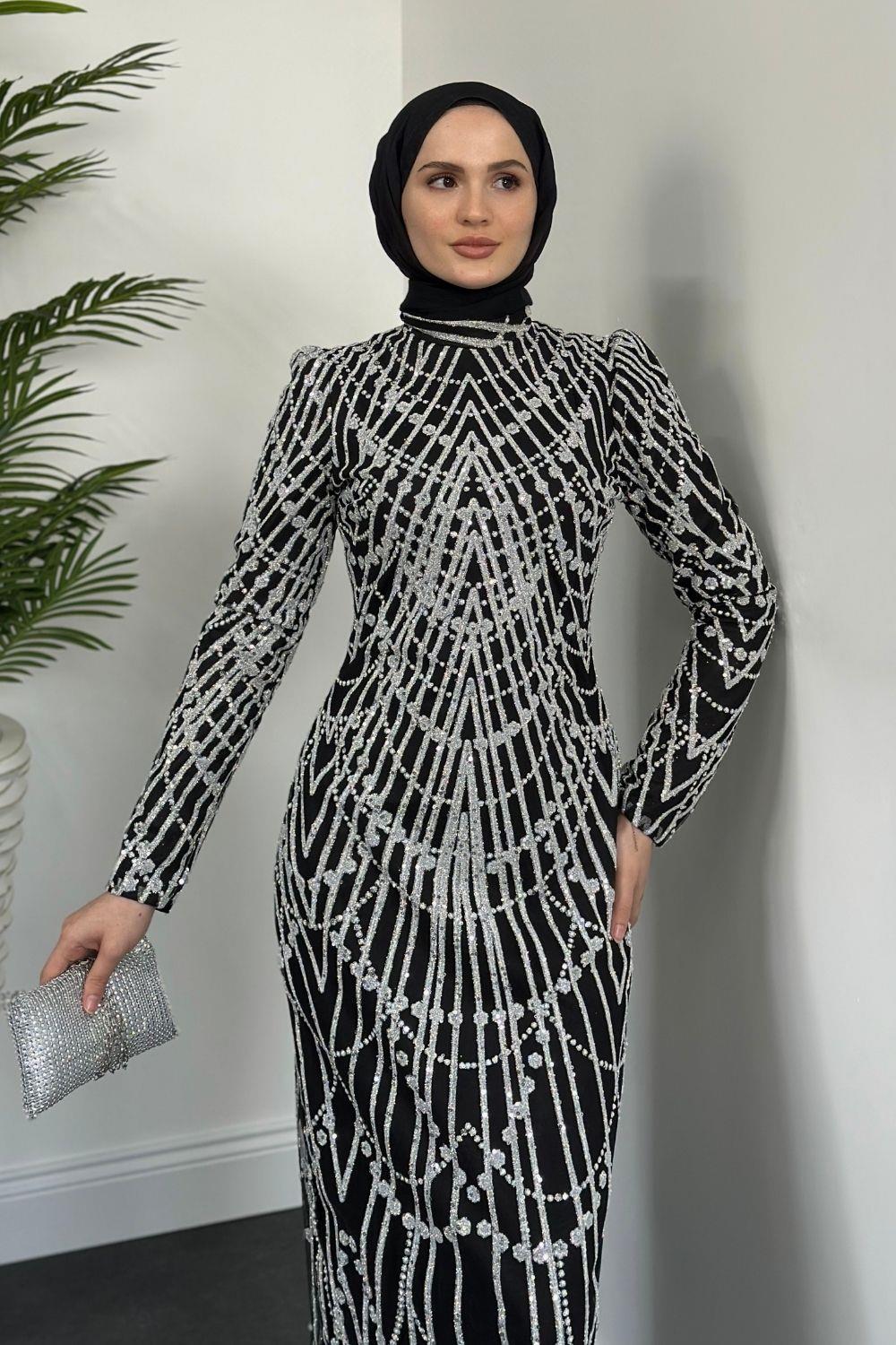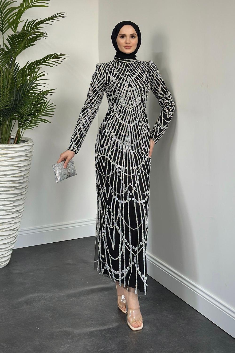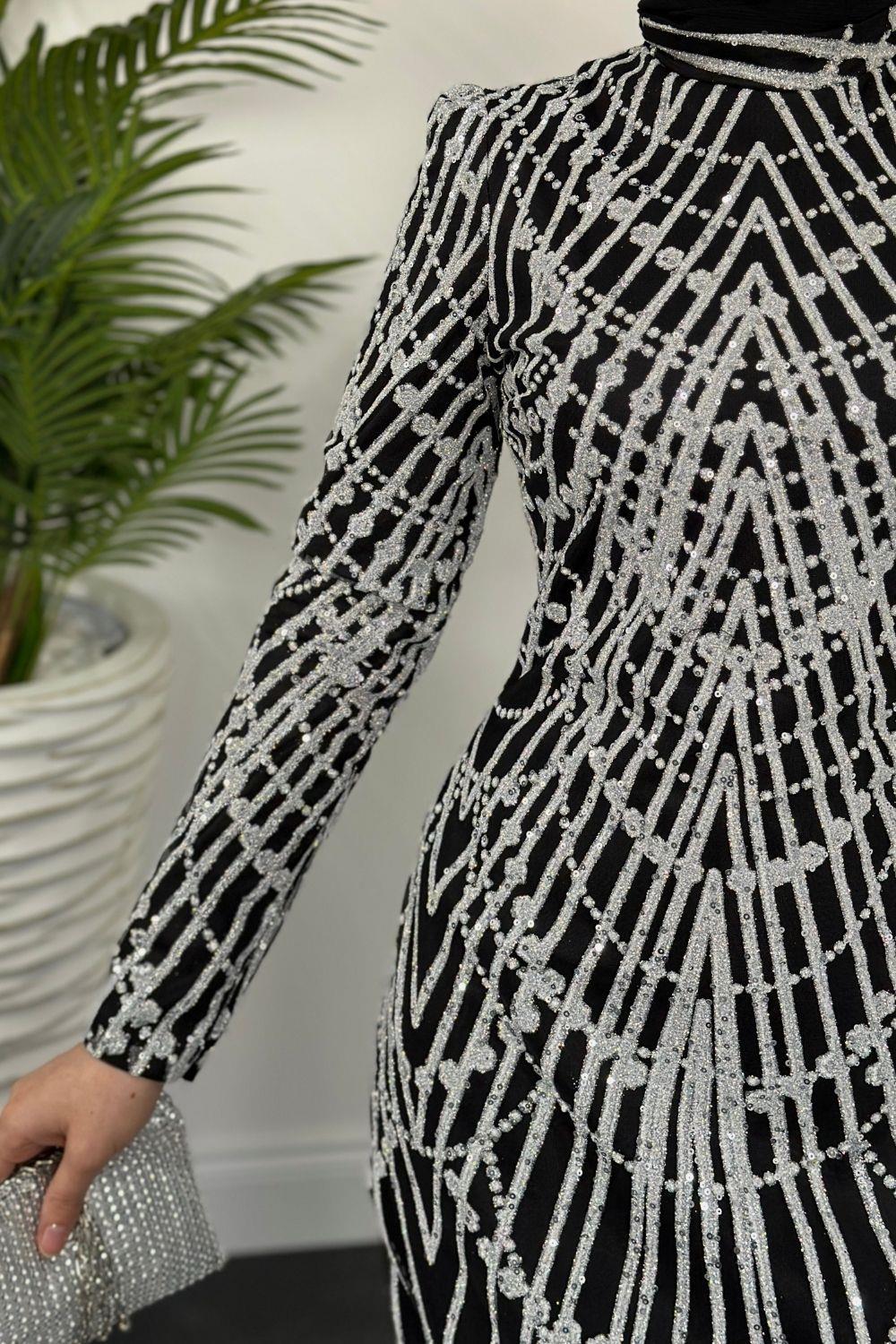 Zayne Simli Pullu Abiye Siyah