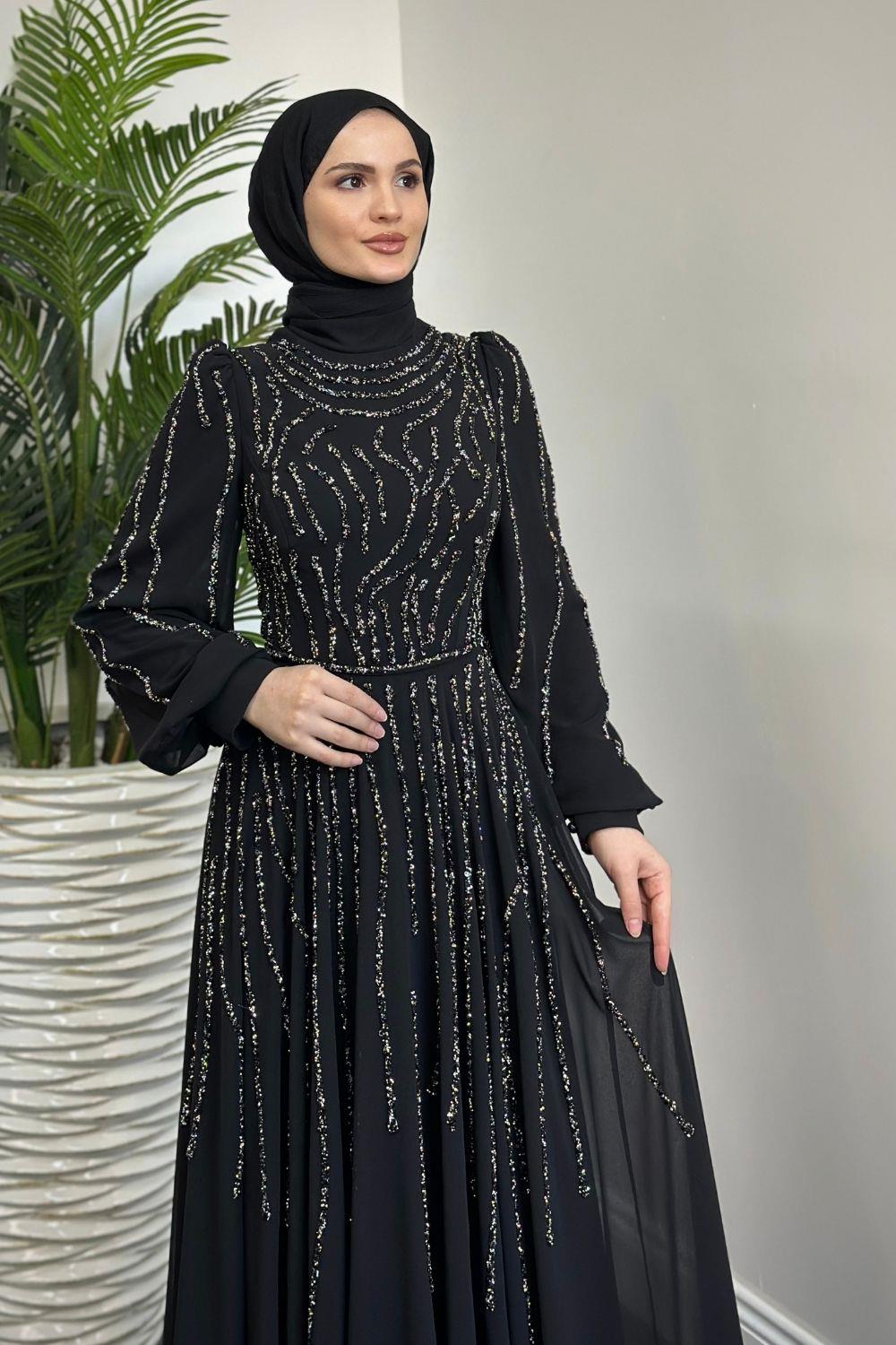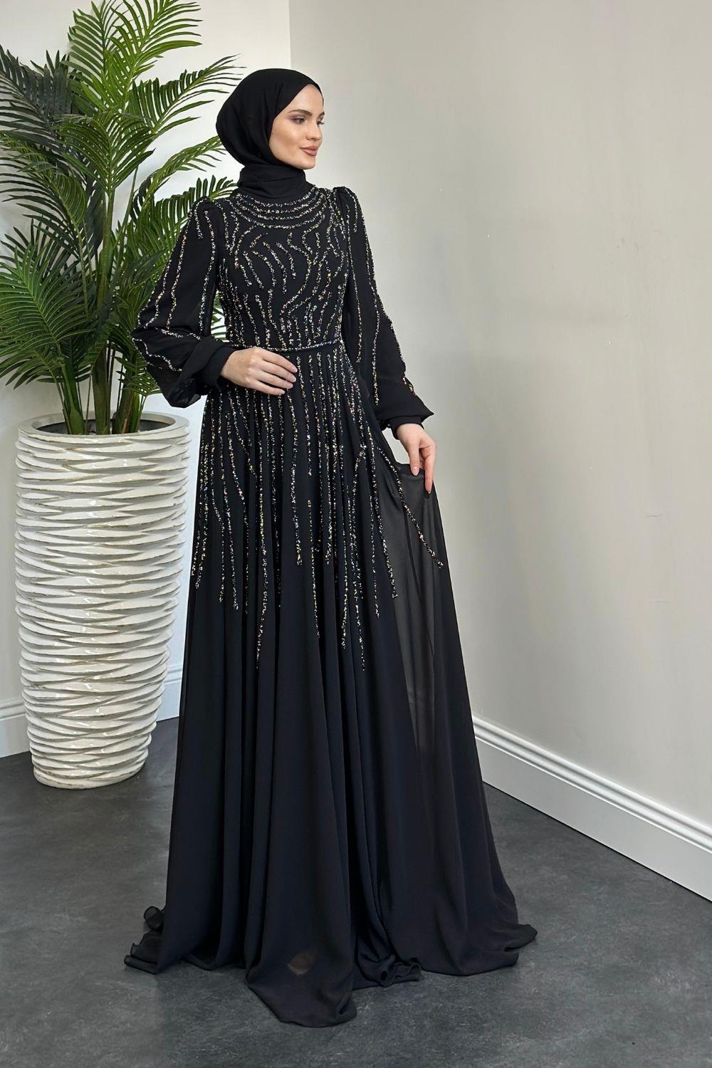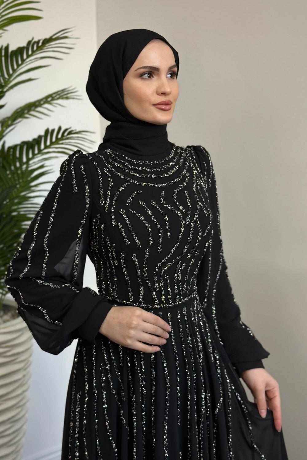Balbina Taşlı Mevlana Şifon Abiye Siyah