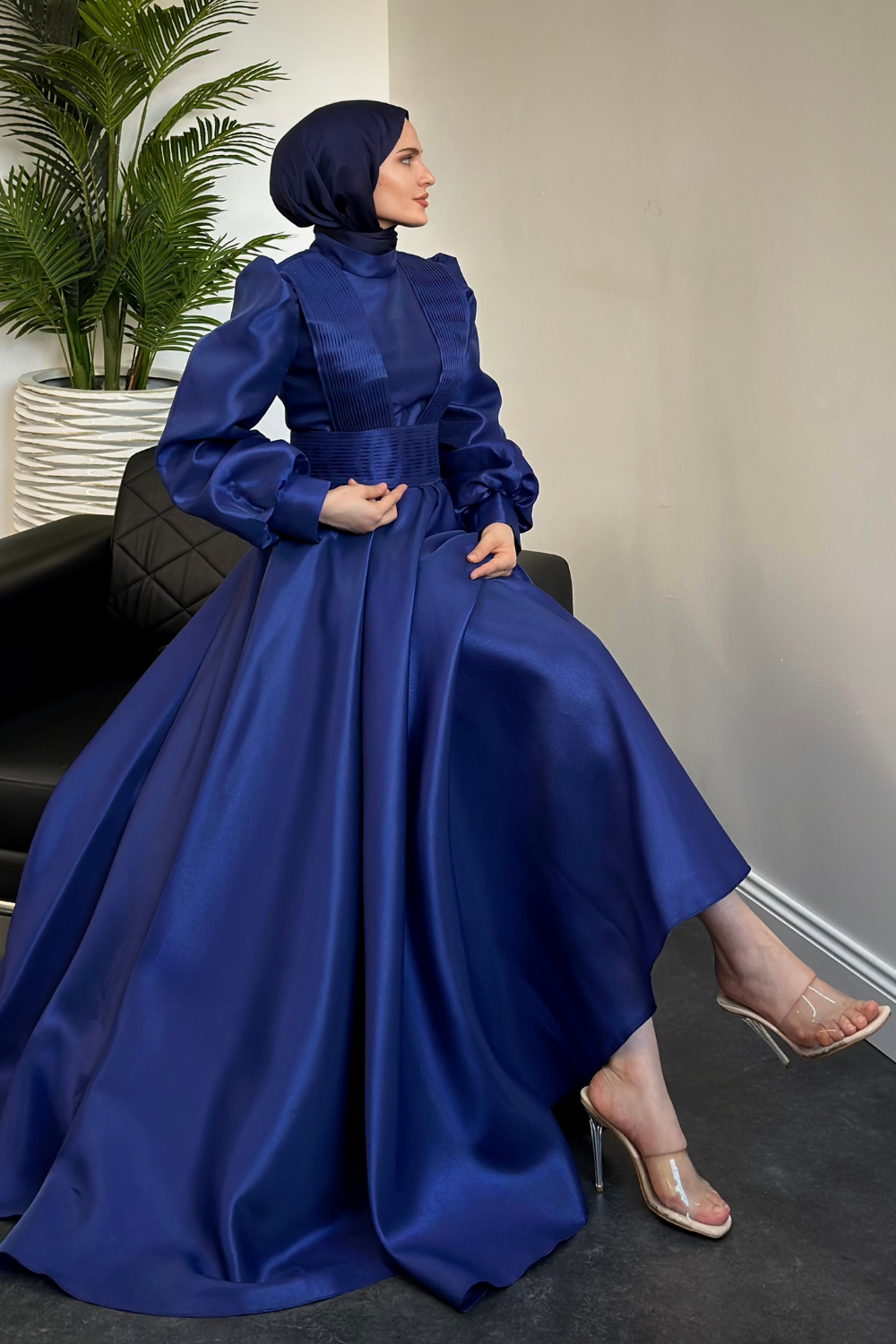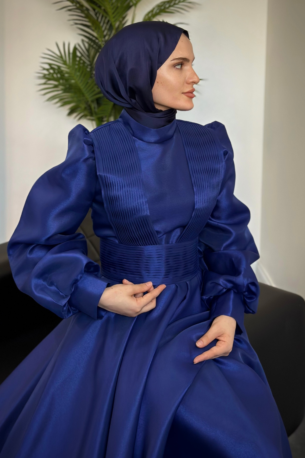 Jaiden Tafta Kumaş Prenses Abiye Lacivert