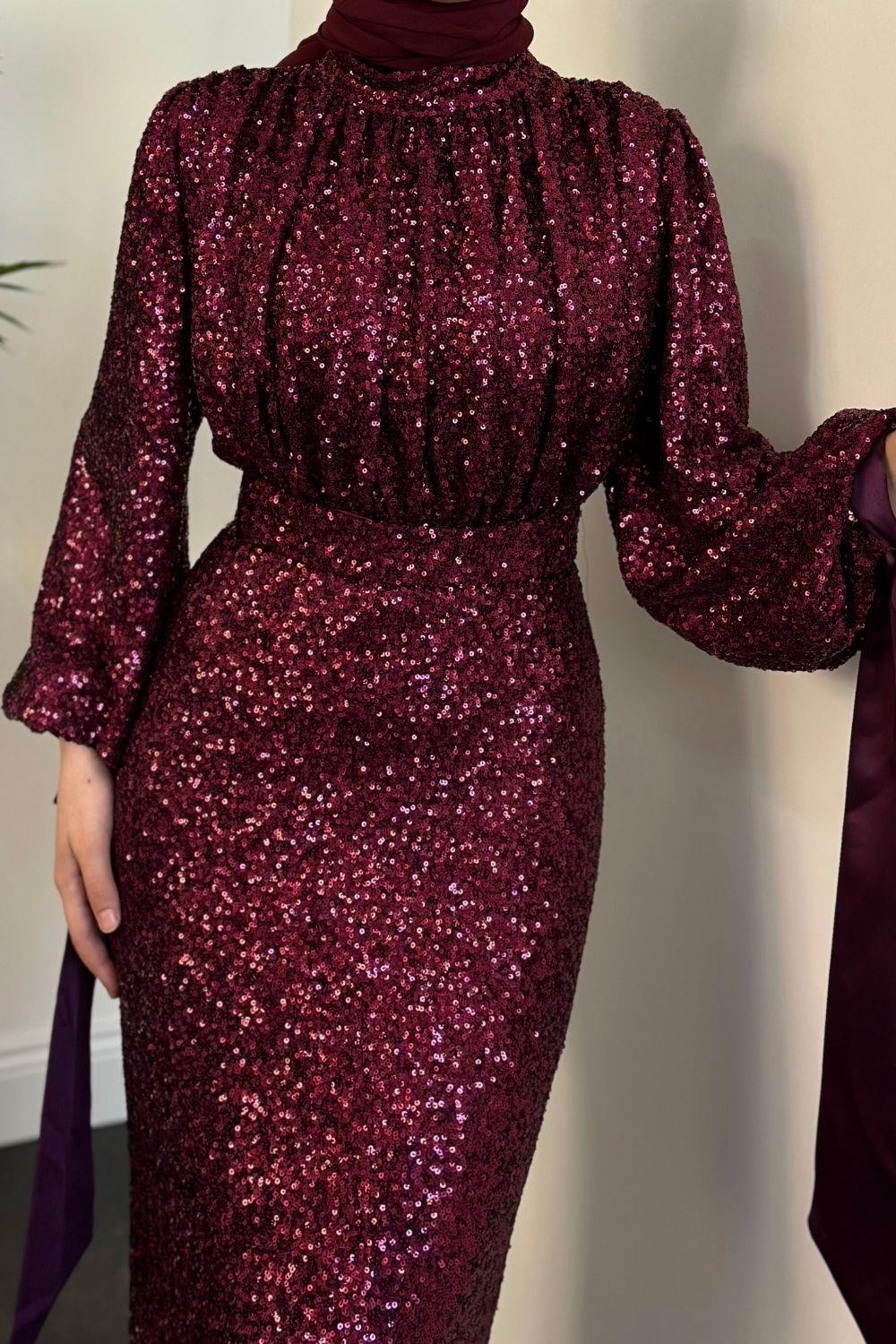 Angeline Drape Detay Pul Payet Abiye Vişne Çürüğü