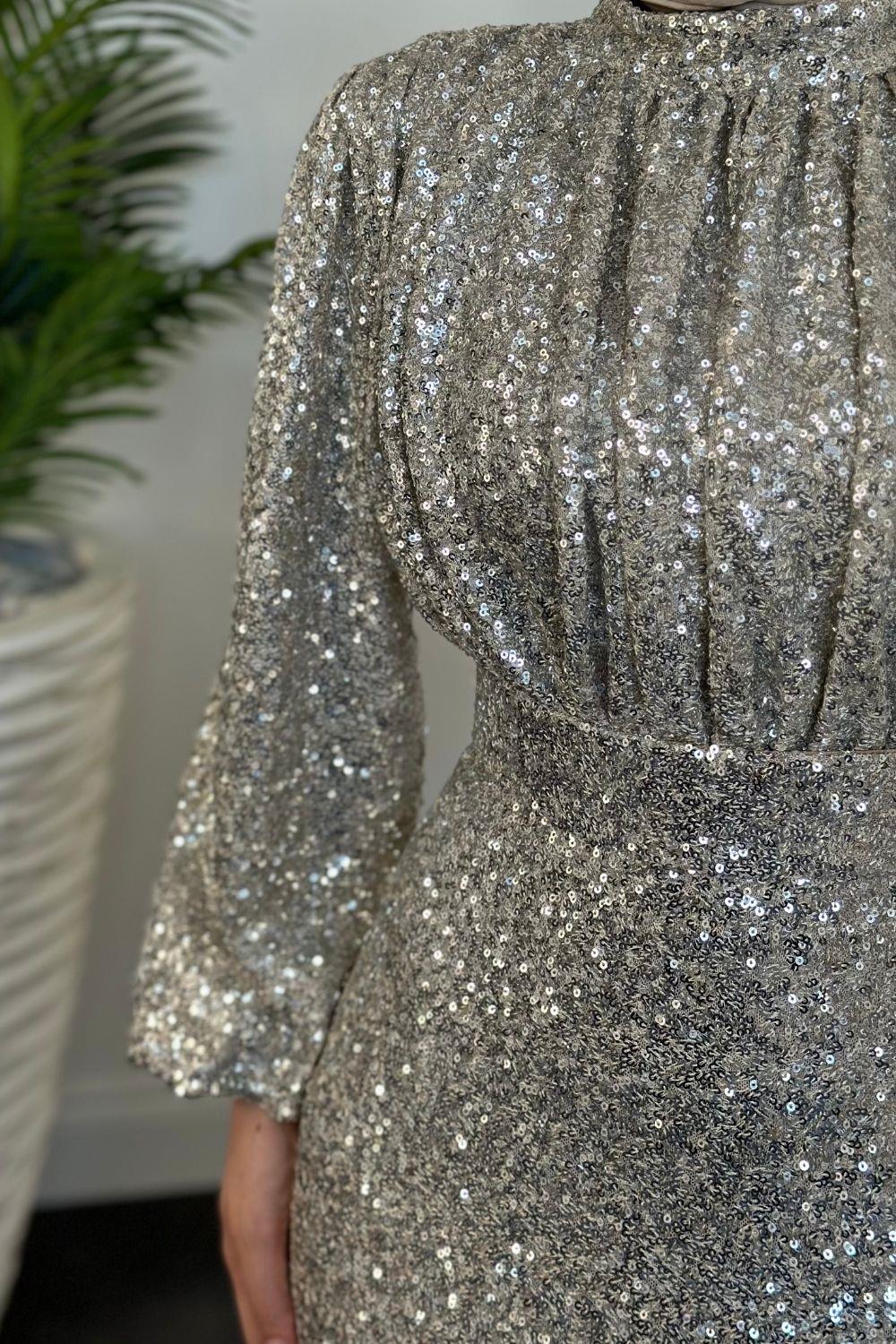 Angeline Drape Detay Pul Payet Abiye Dore