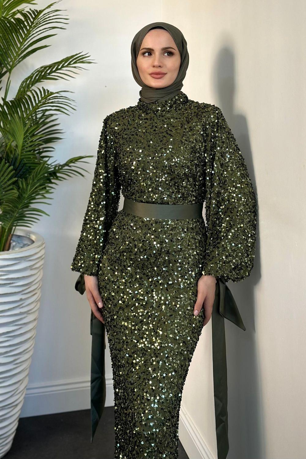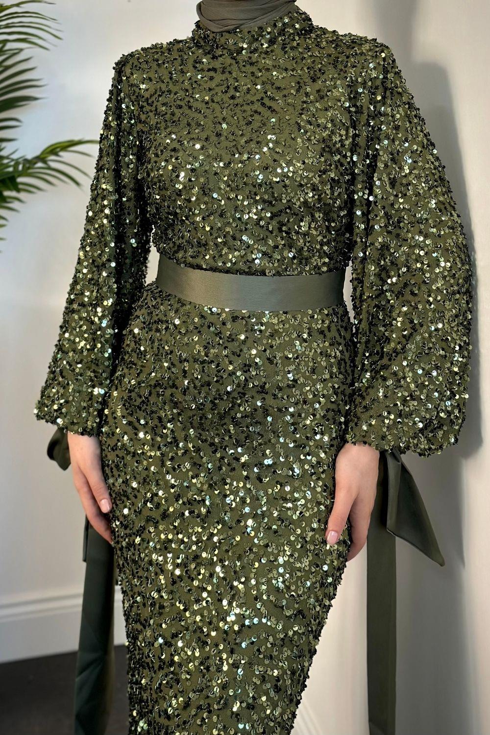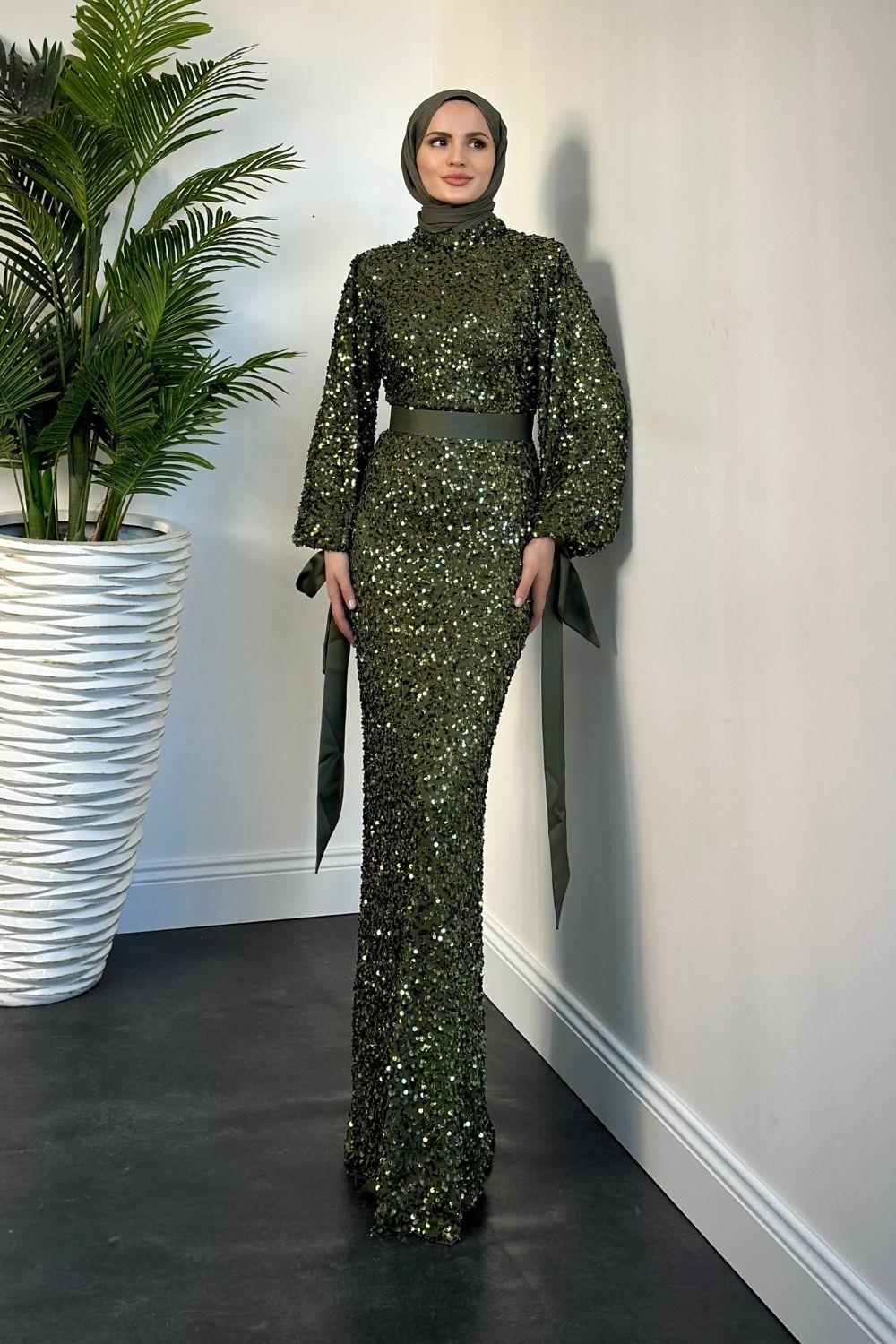 Firida Pul Payet Balık Abiye Haki