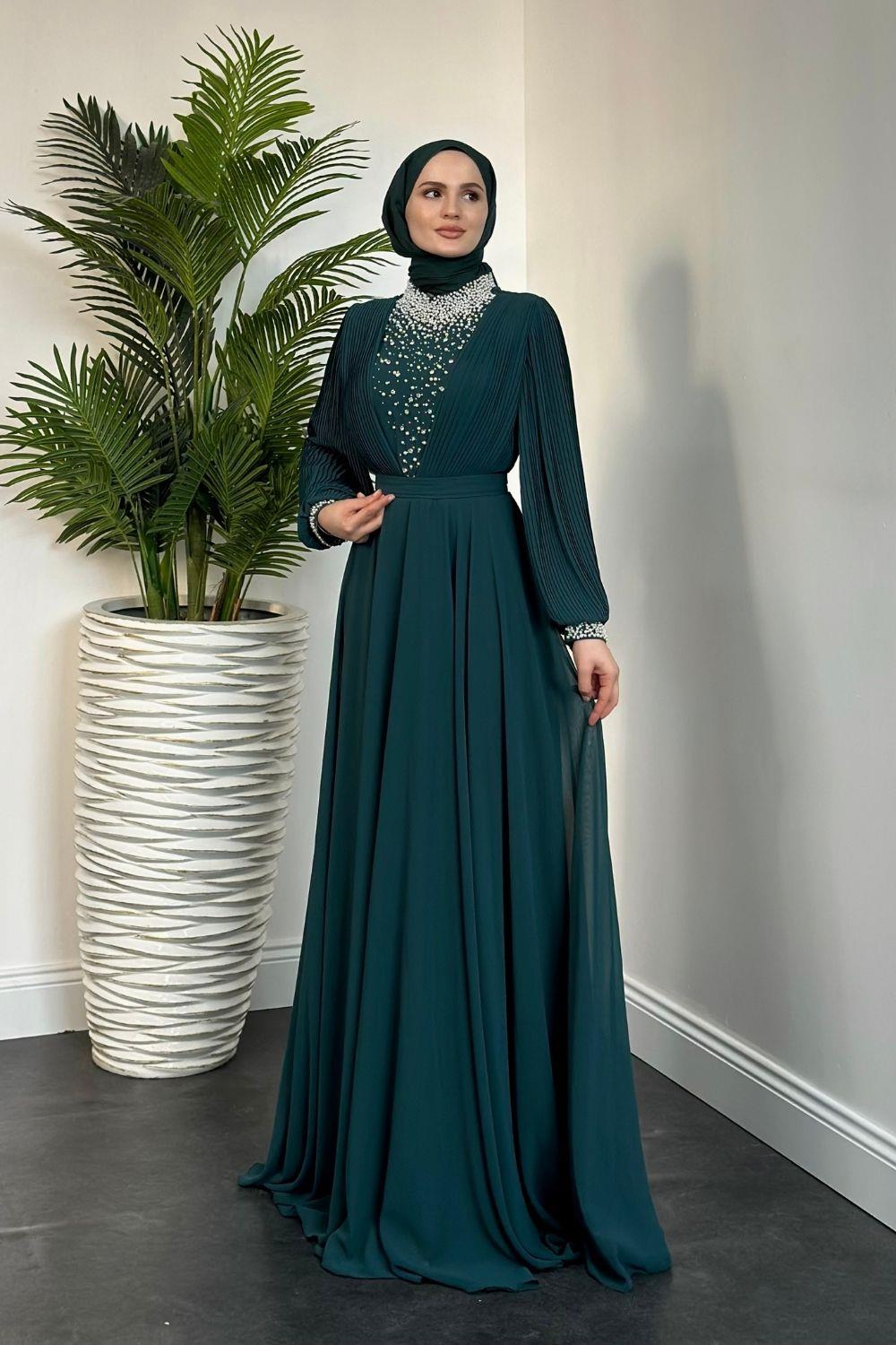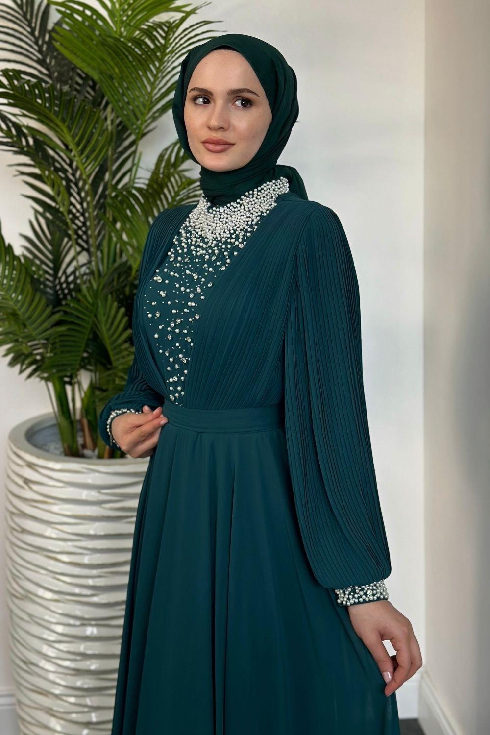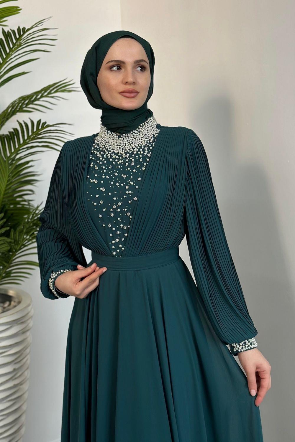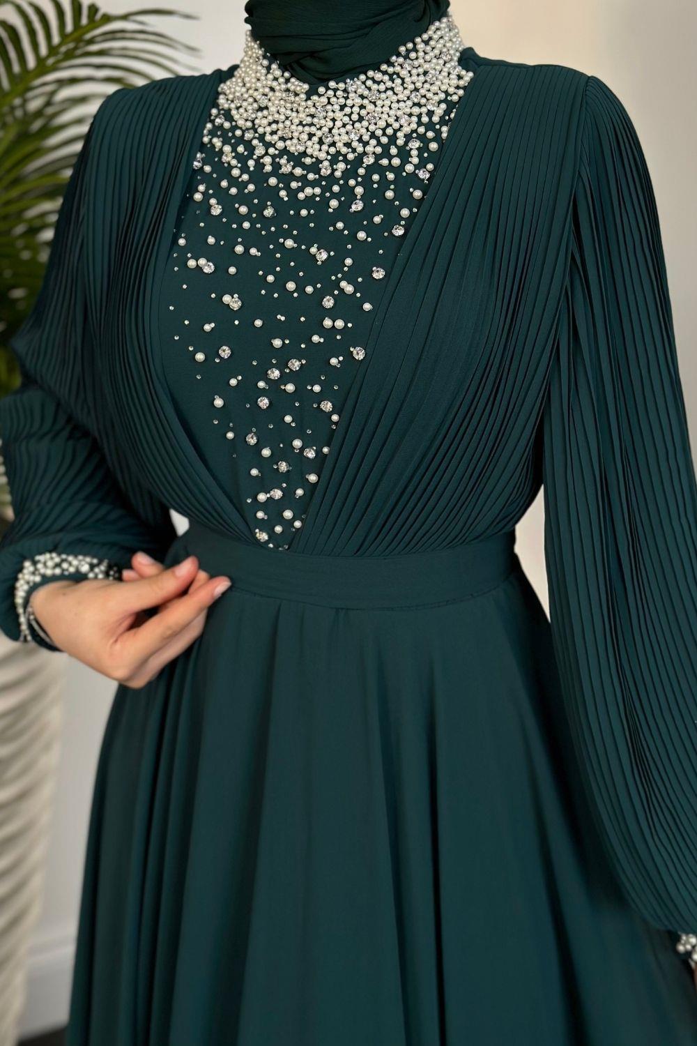 Carmen Önü İnci İşleme Abiye Zümrüt