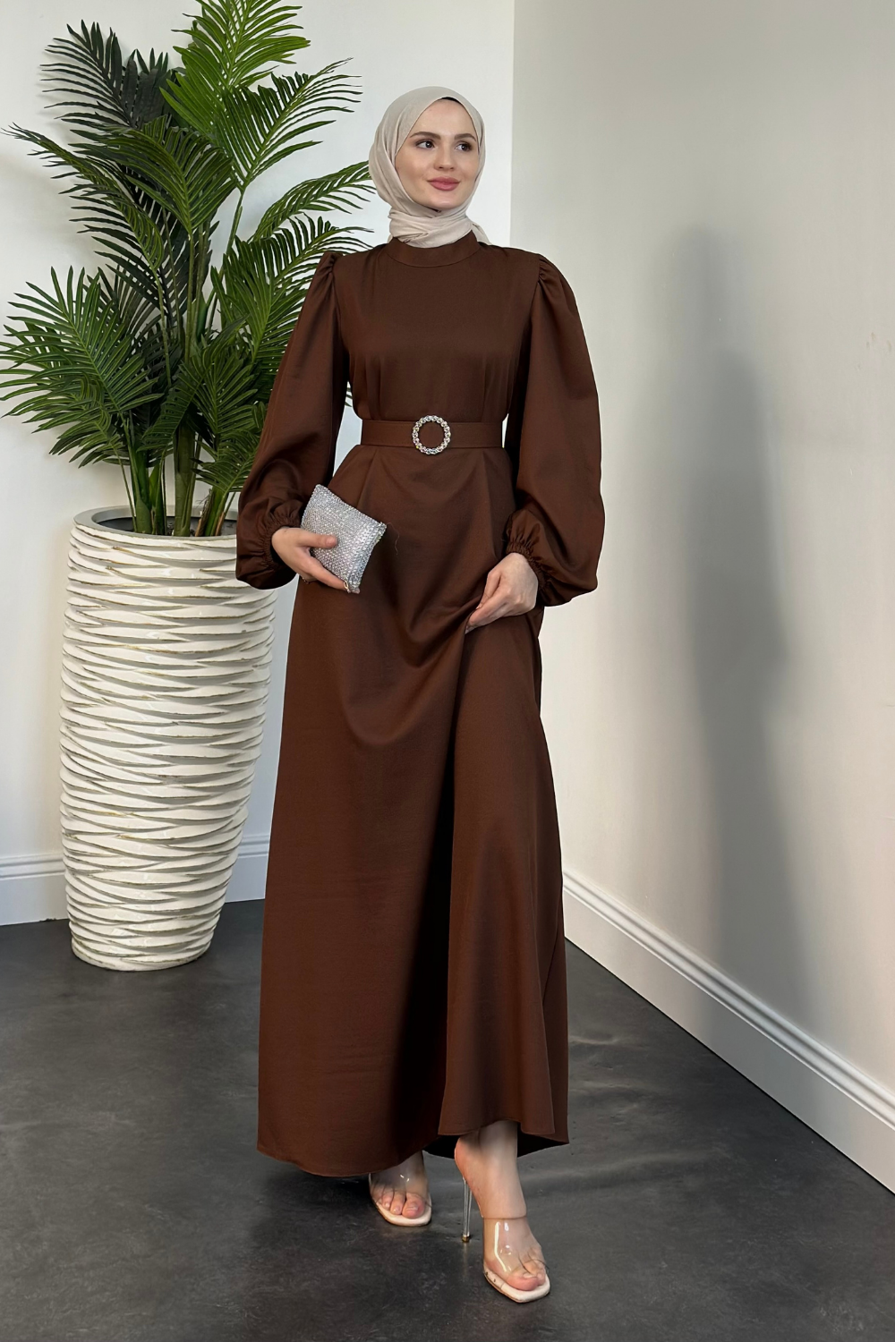 Sarah Kemerlı Elbise Kahverengi