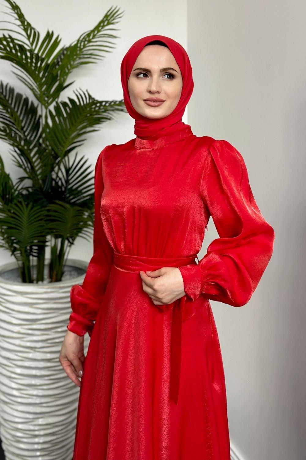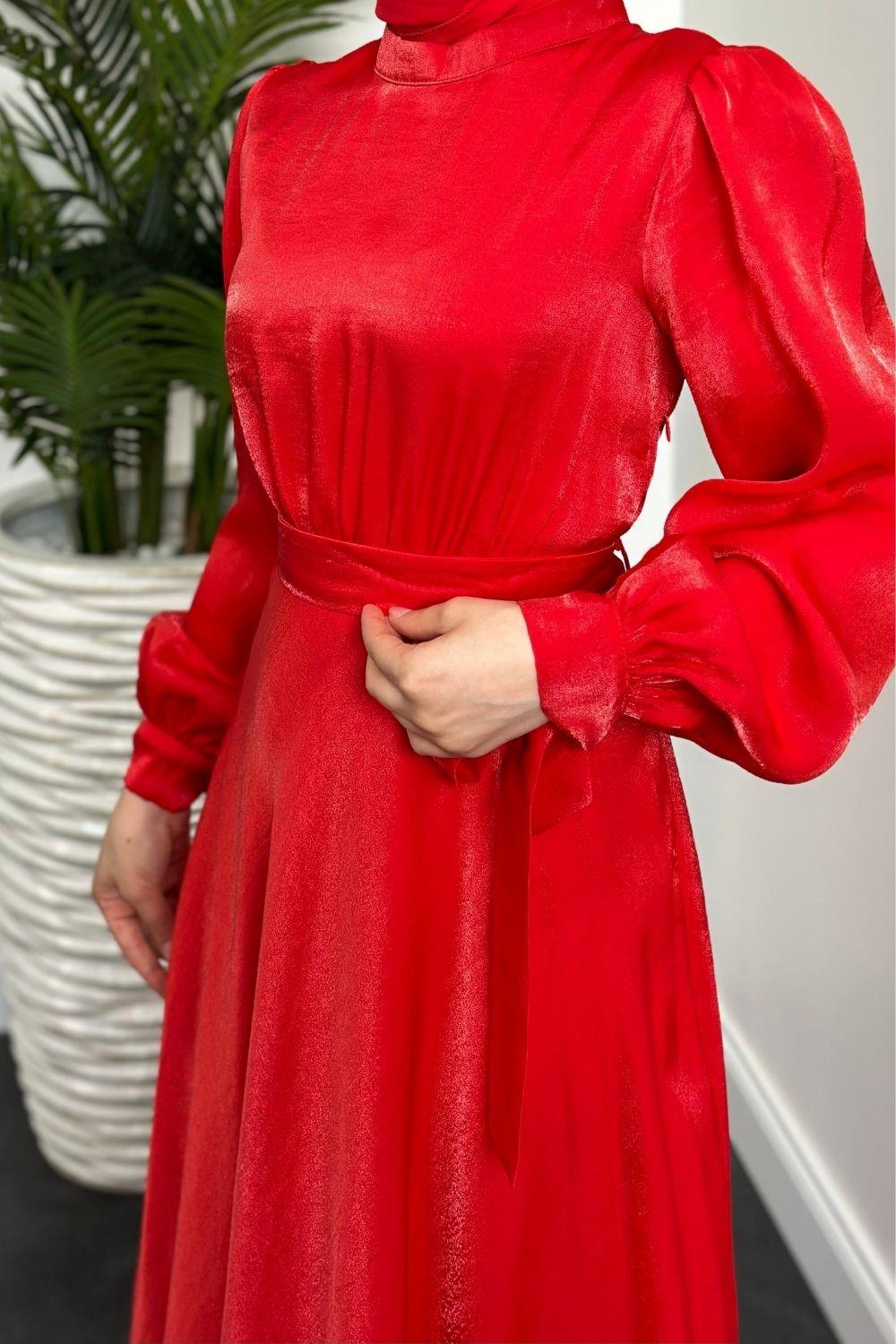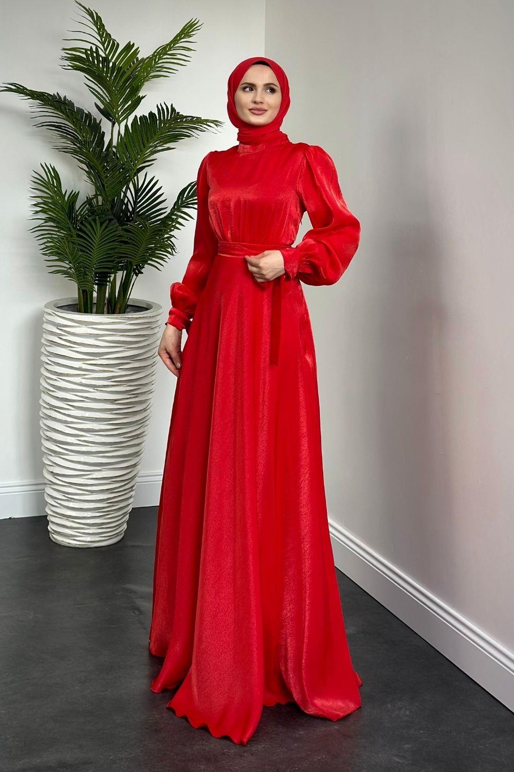 Clantha Kollları Bağcıklı Abiye Kırmızı