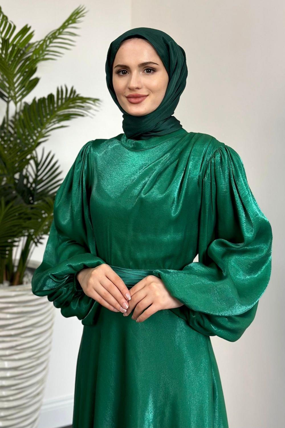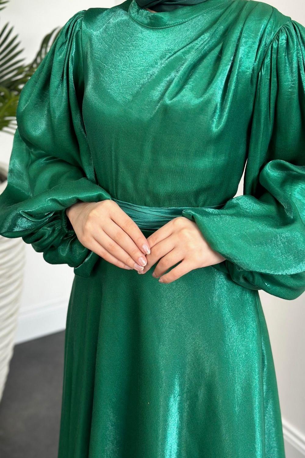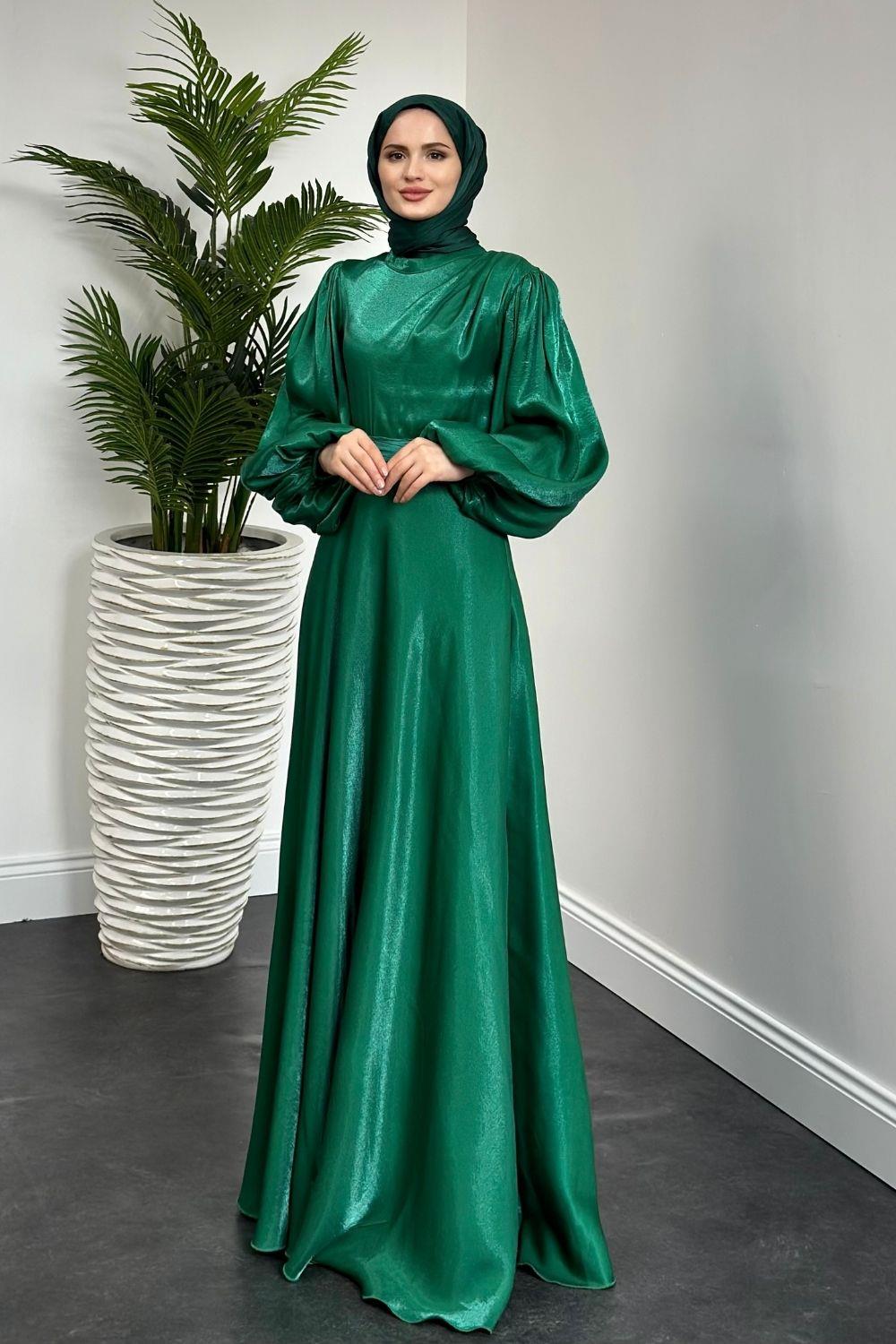 Bernelle Balon Kol Abiye Zümrüt