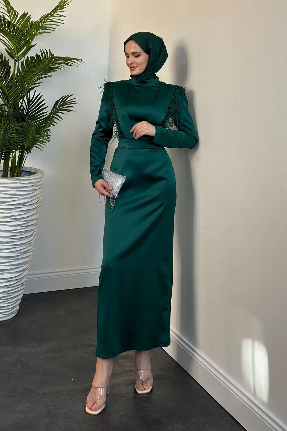 Adorle Kalem Saten Abiye Zümrüt