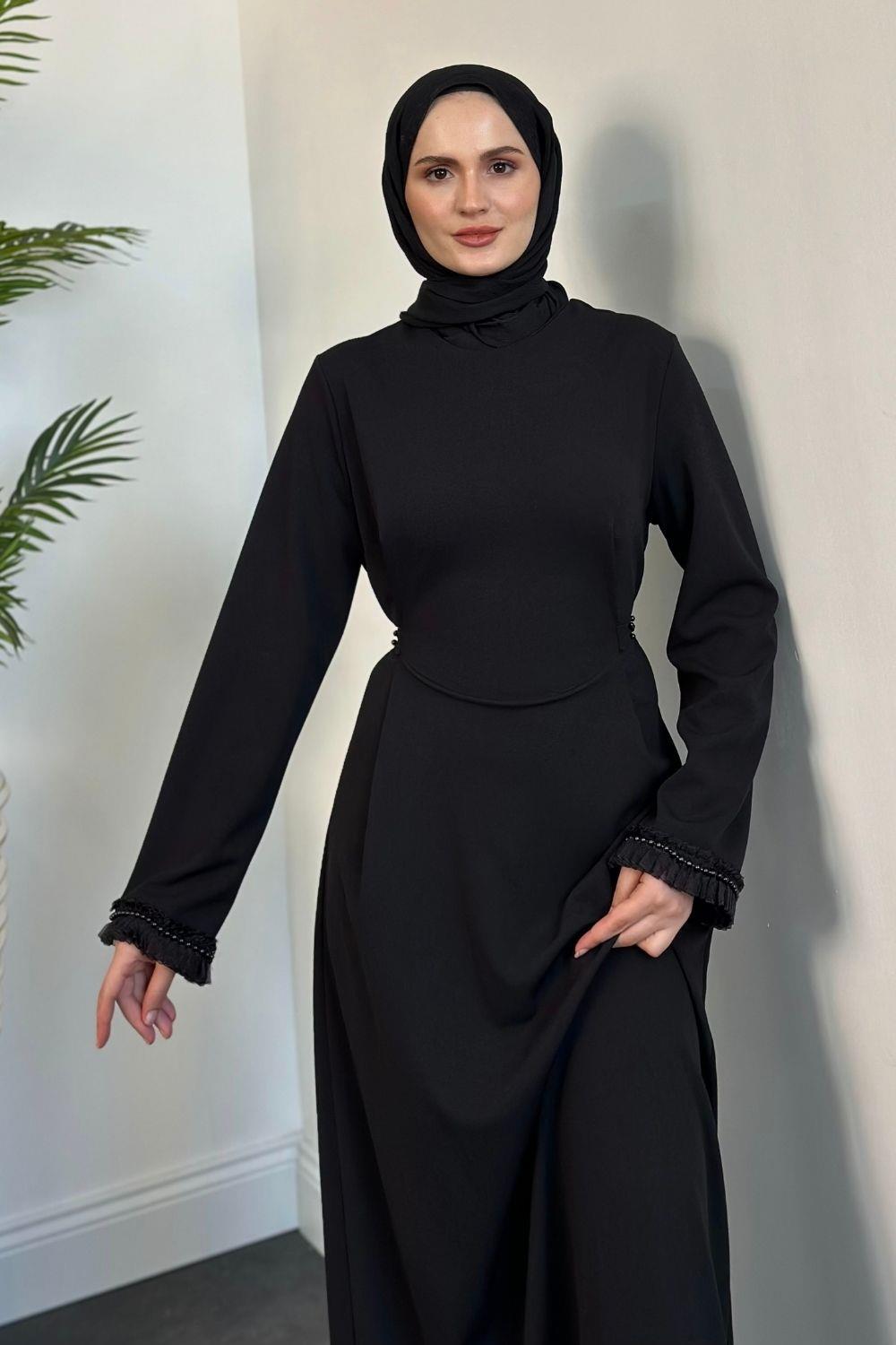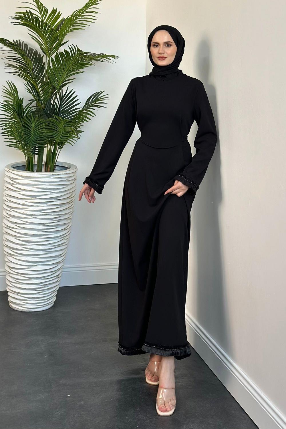 Jawel Etek Kemer ve Kol Ucu İnci Zımbalı Abiye Siyah