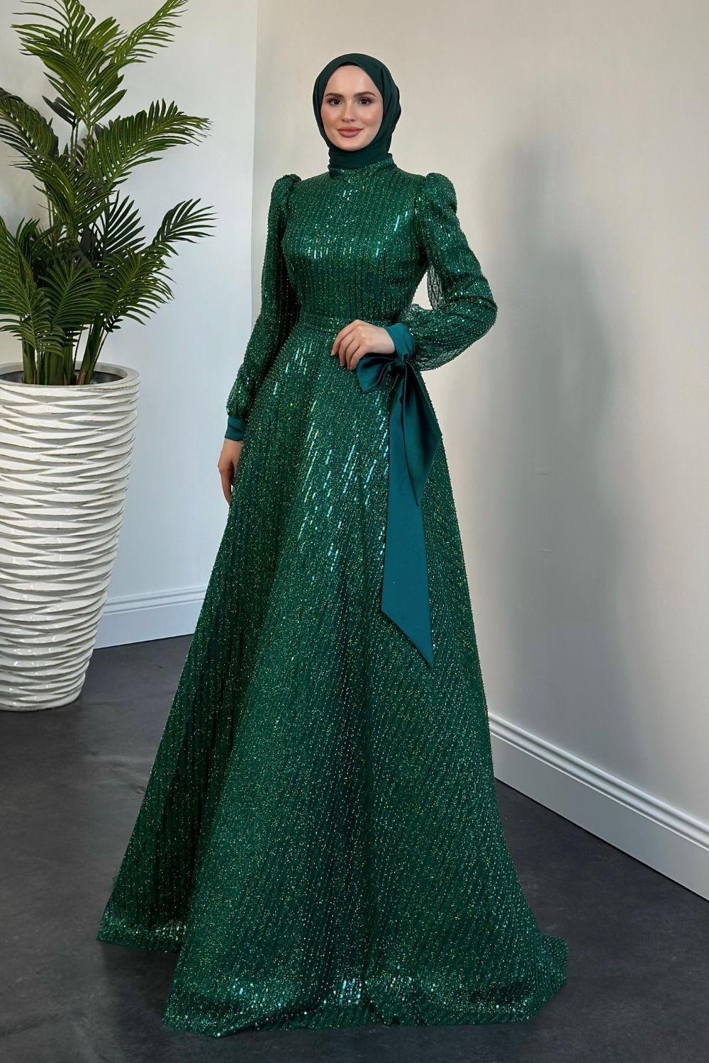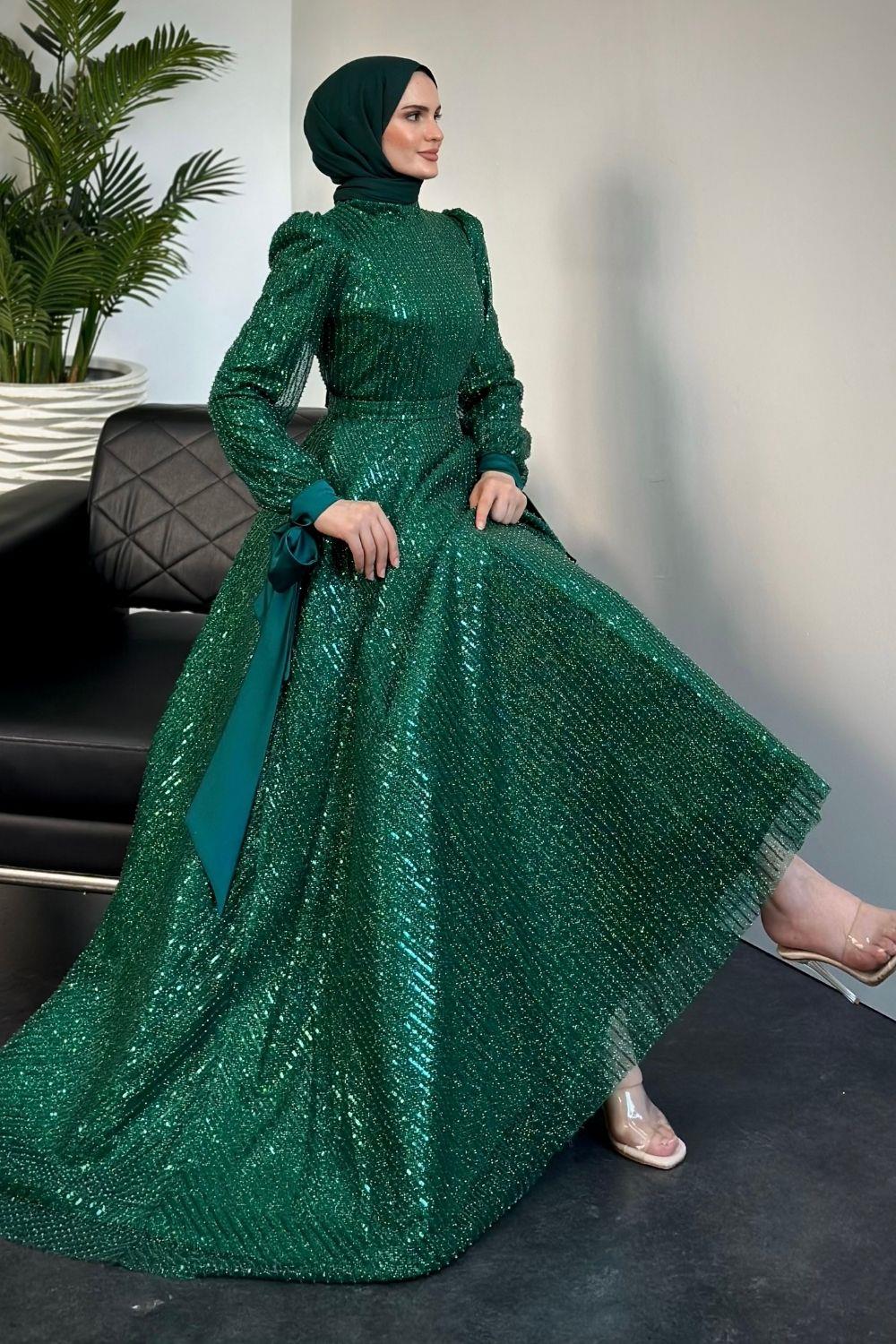 Caroline Tarlatanlı Boncuk İşleme Abiye Zümrüt