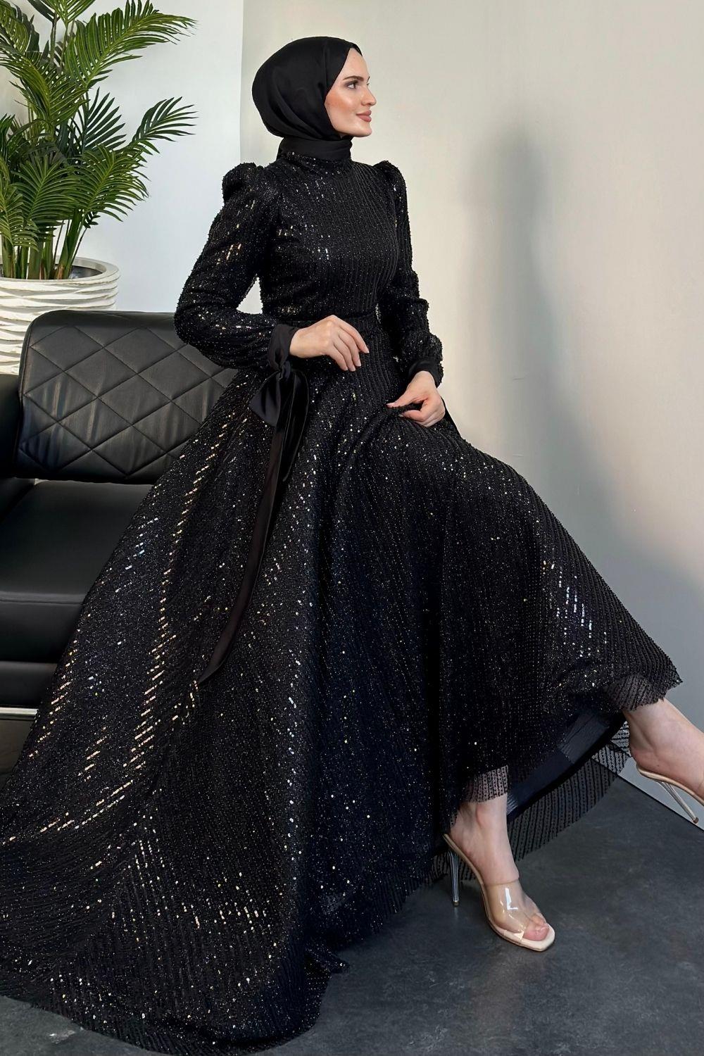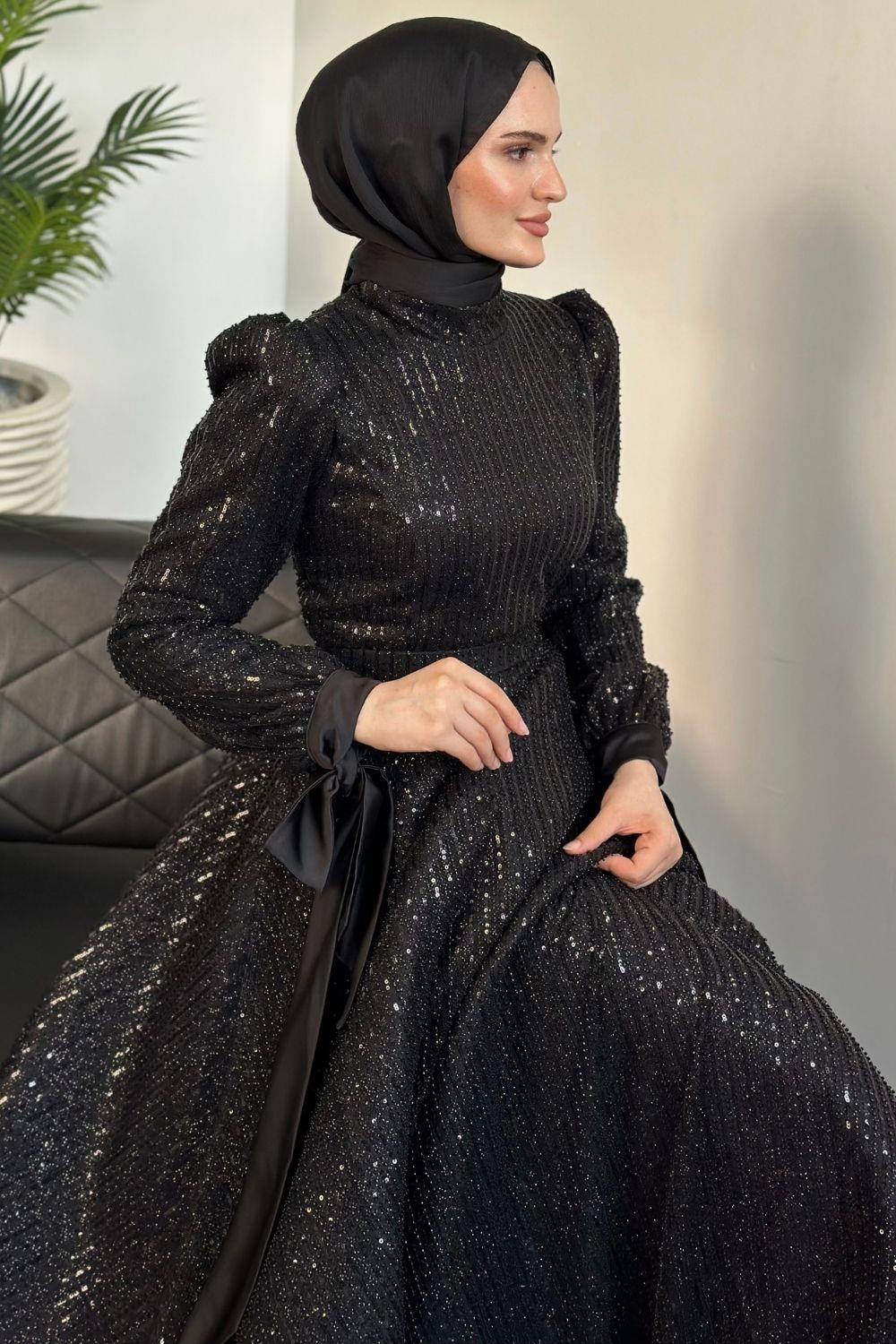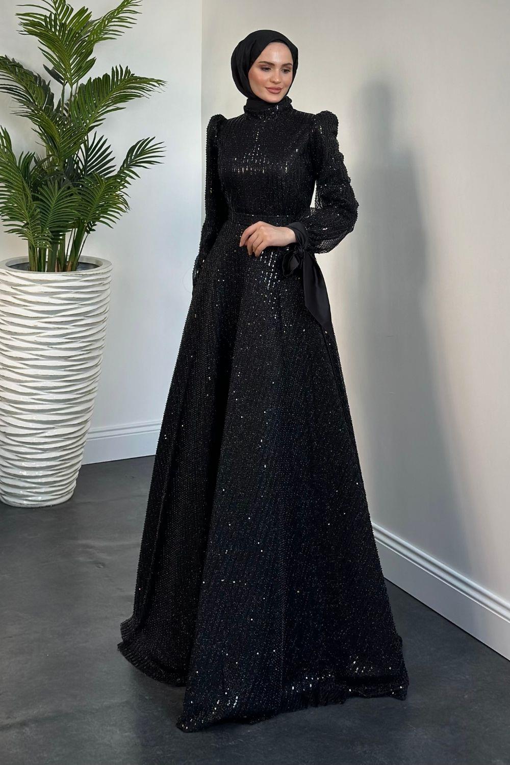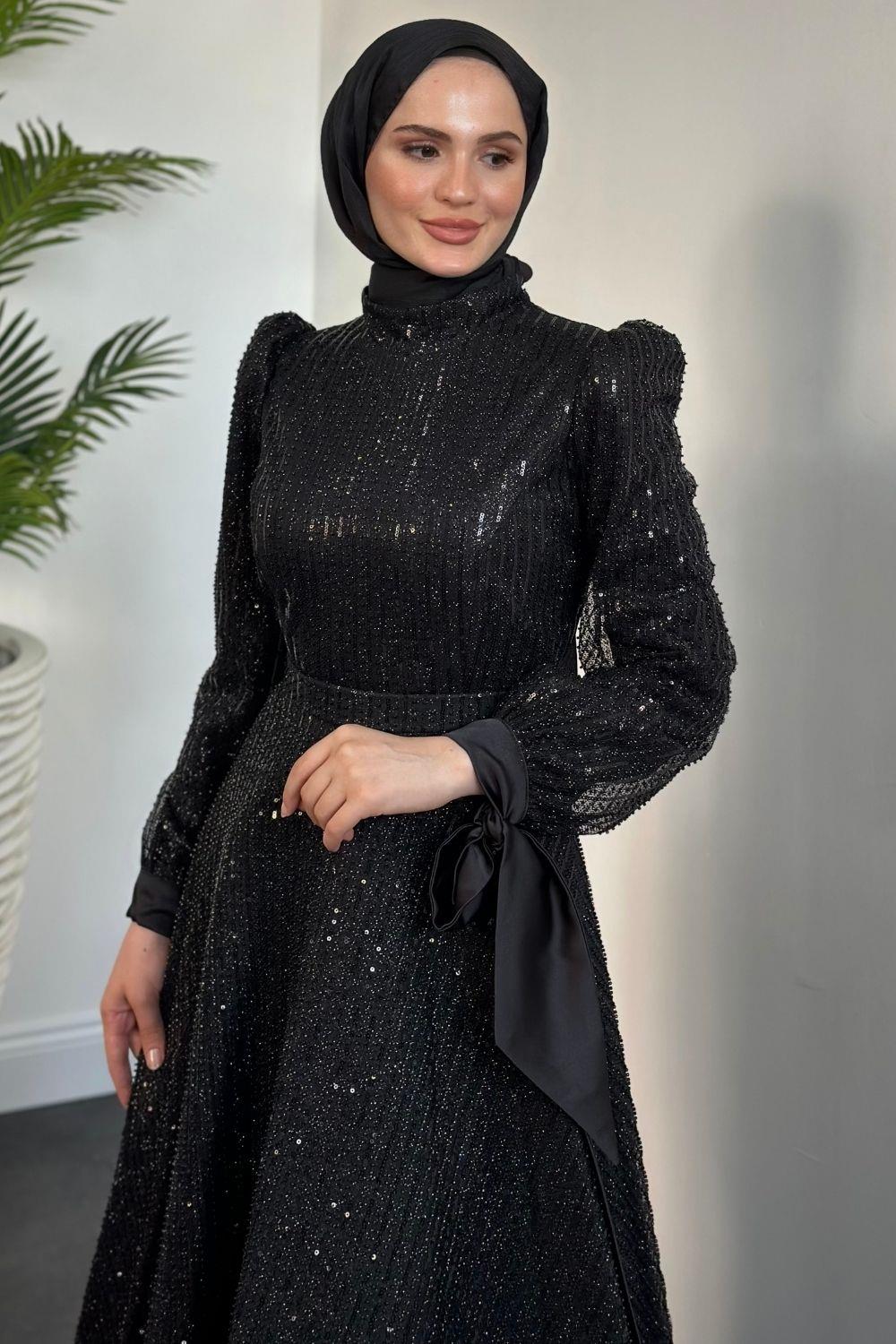 Caroline Tarlatanlı Boncuk İşleme Abiye Siyah