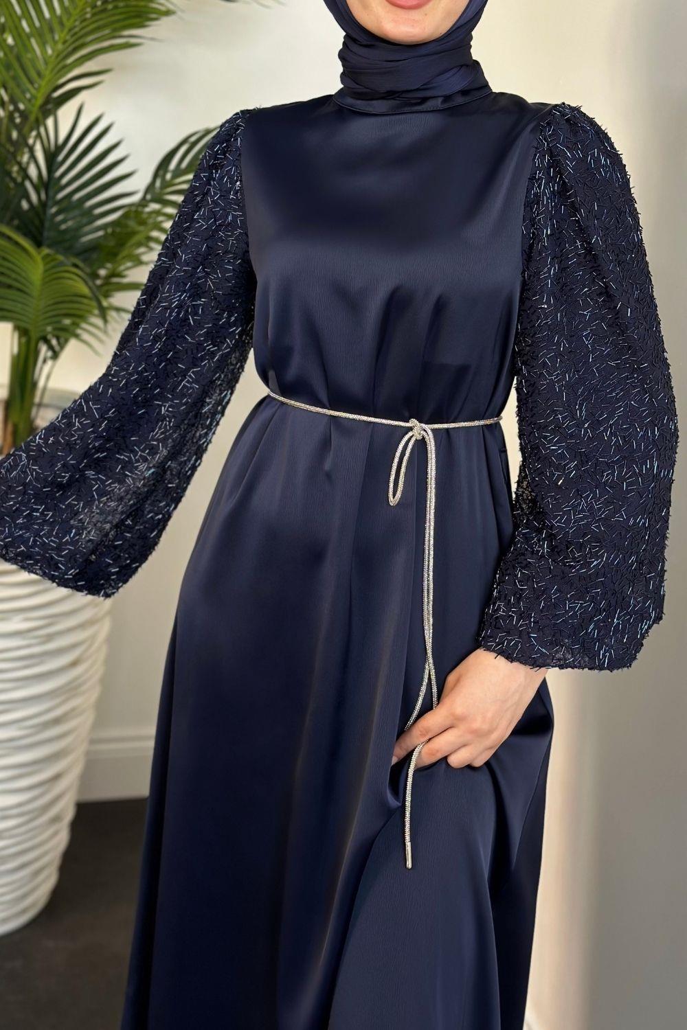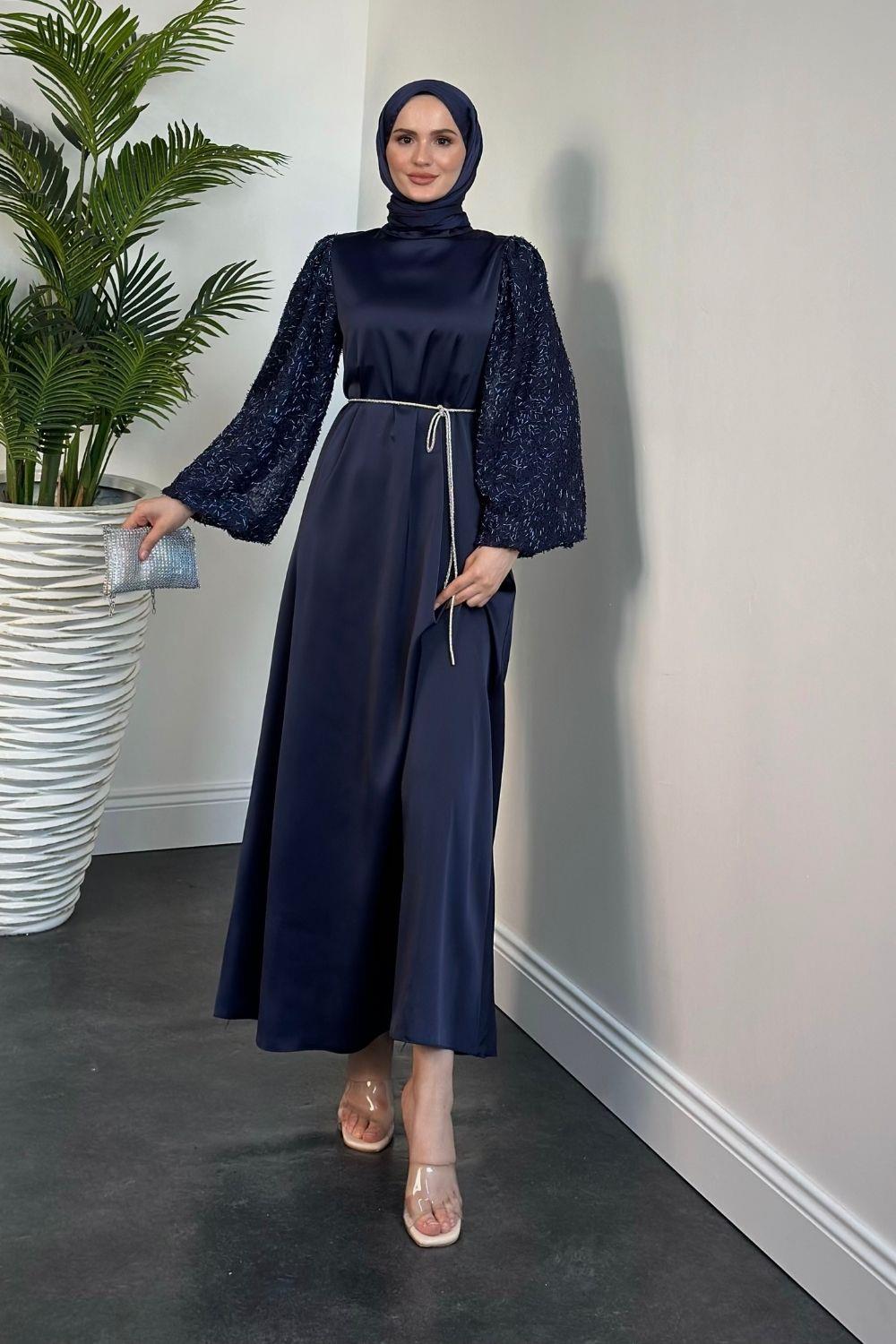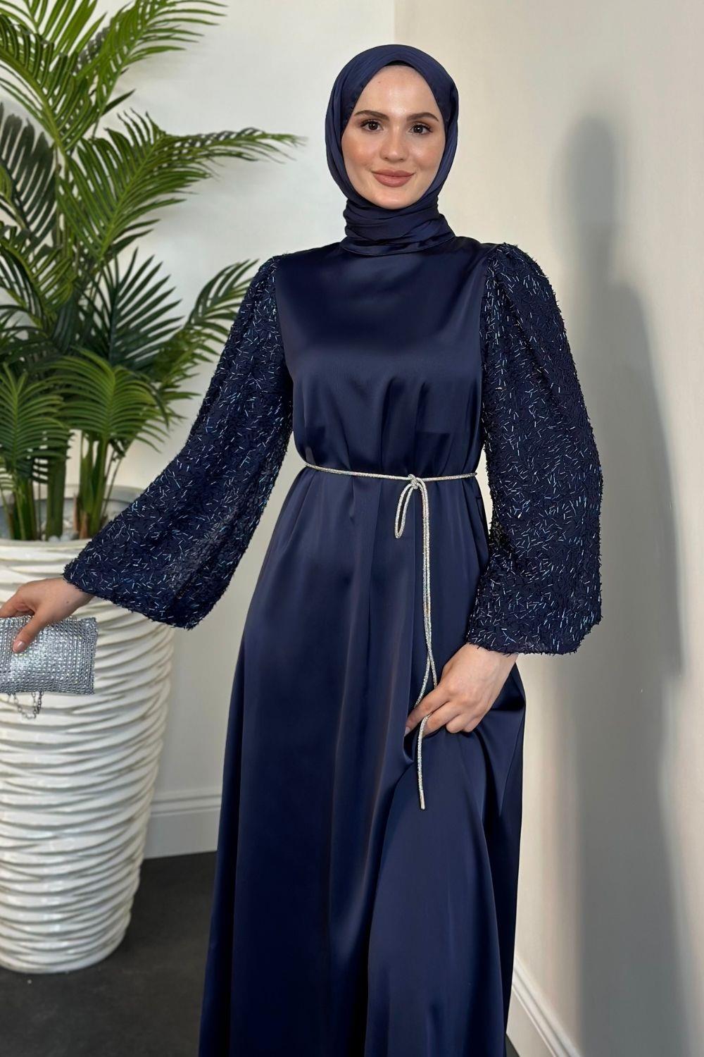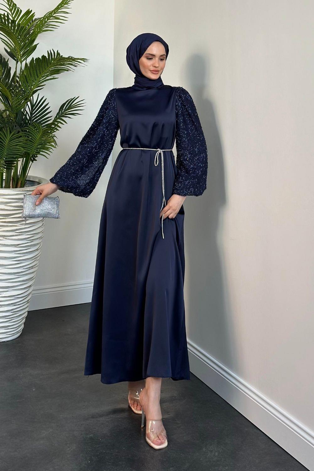 Carlotta Balon Kol Saten Abiye Lacivert