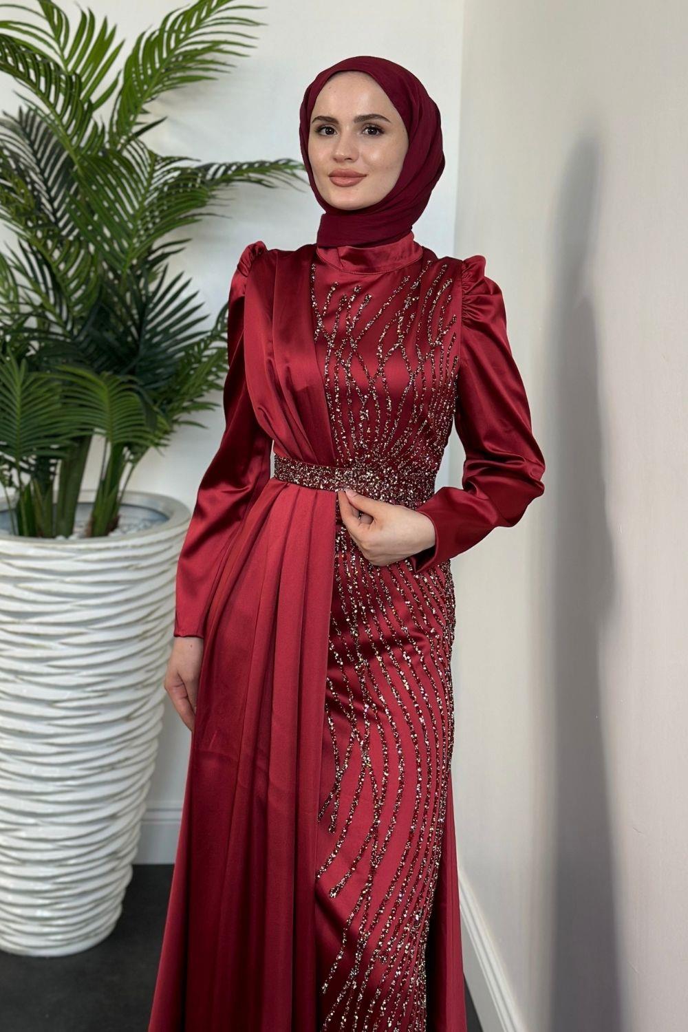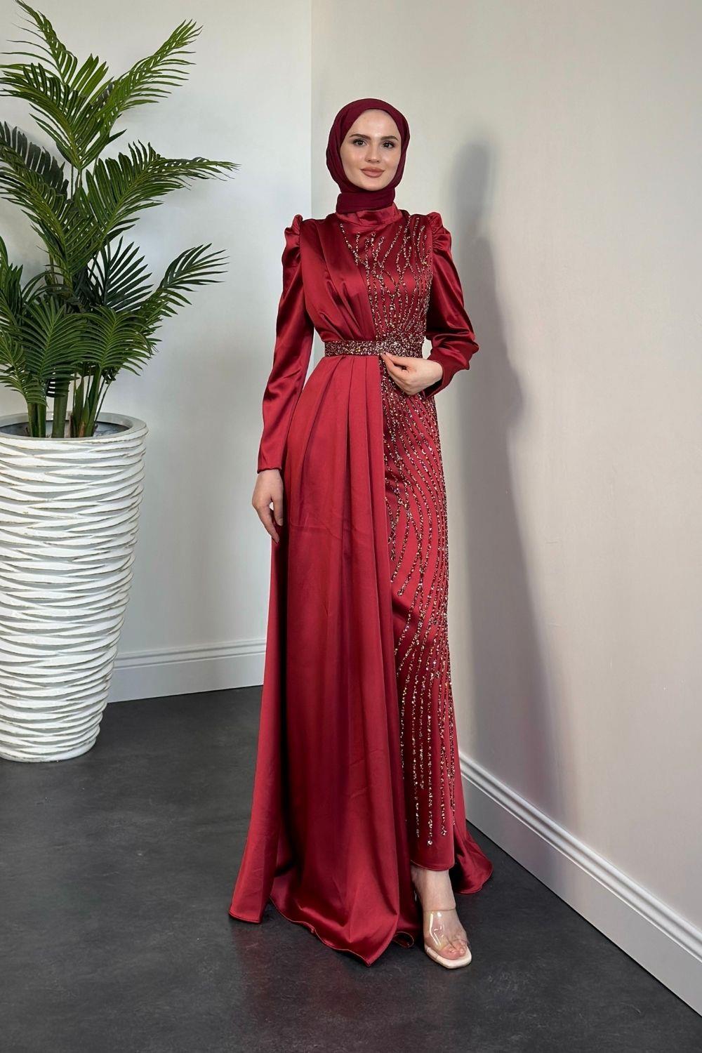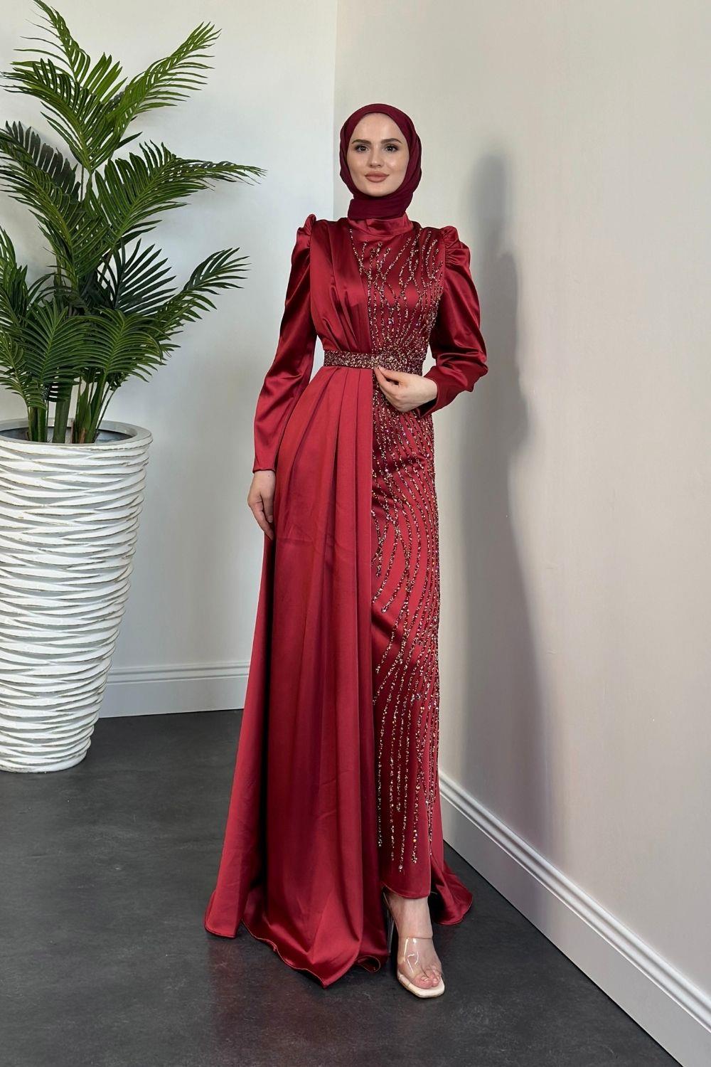 Sante Taş Detay Abiye Bordo