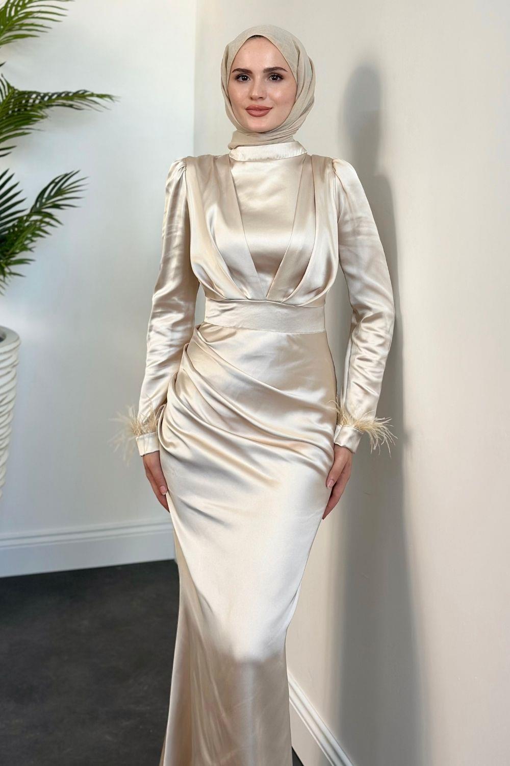 Vladya Kuyruklu Saten Balık Abiye Krem