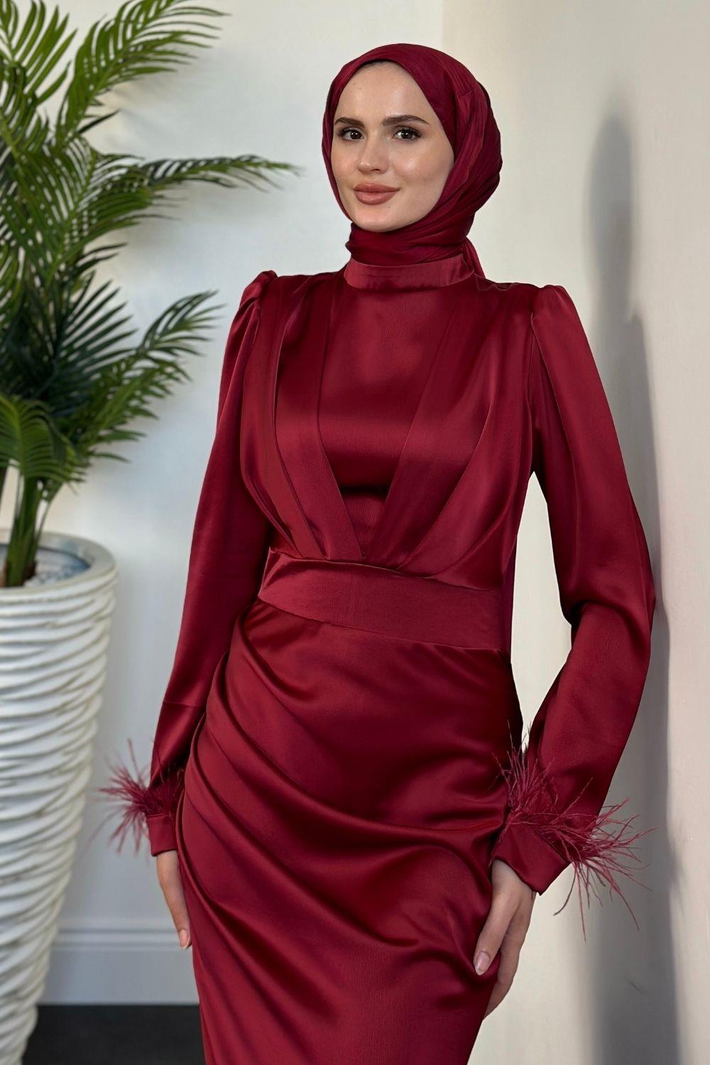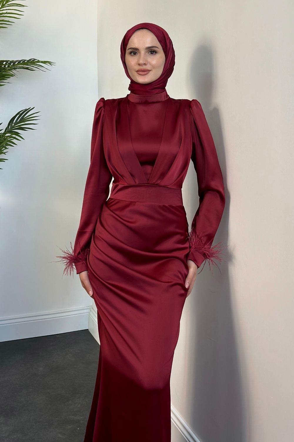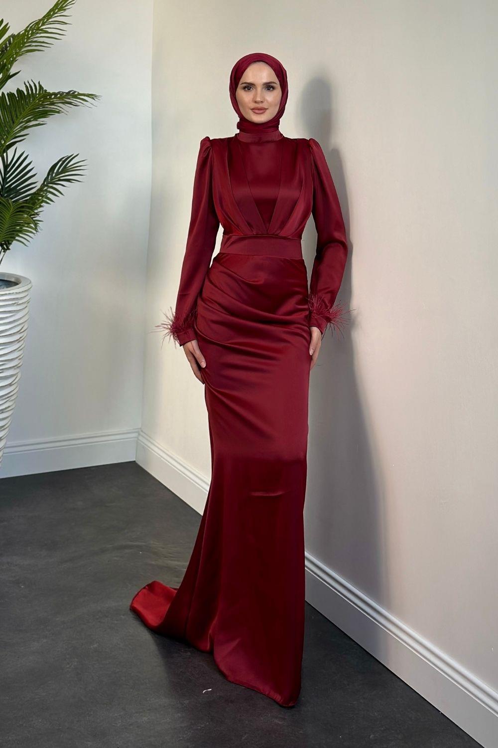 Vladya Kuyruklu Saten Balık Abiye Bordo