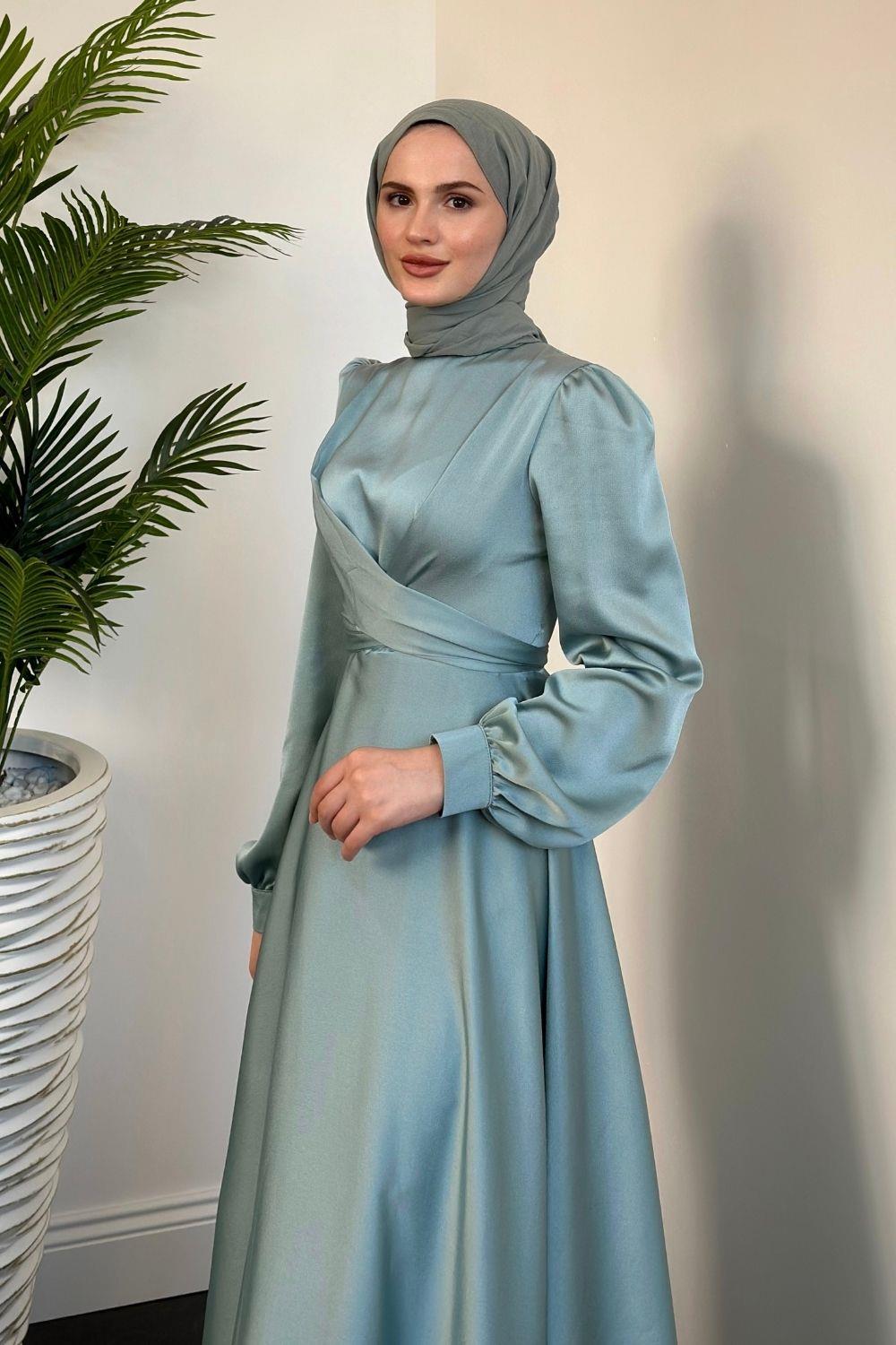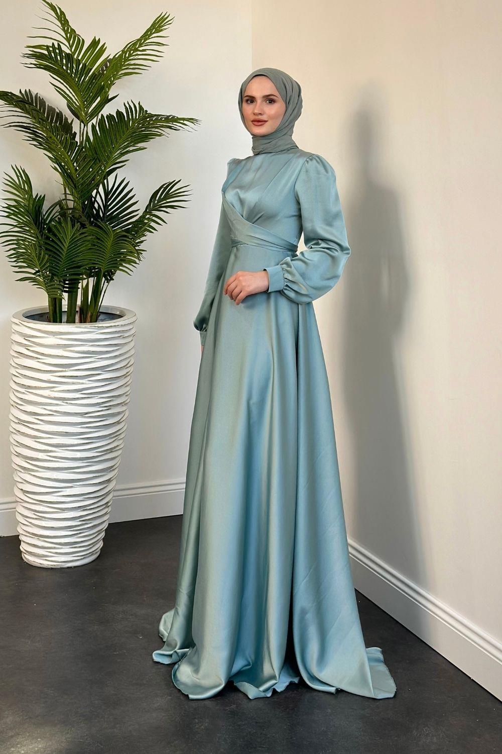 Samantha Önü Çapraz Detay Saten Abiye Açık Mint