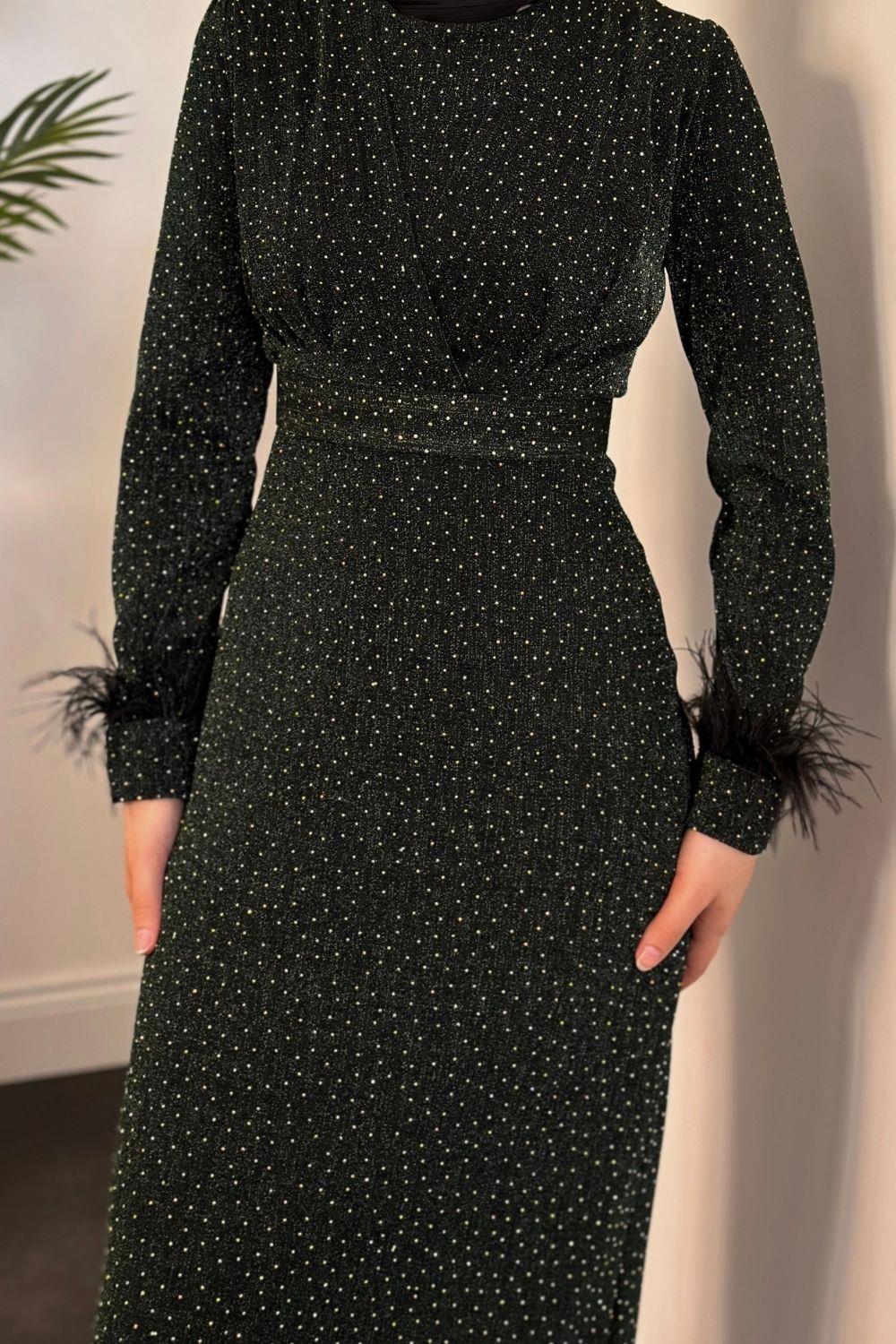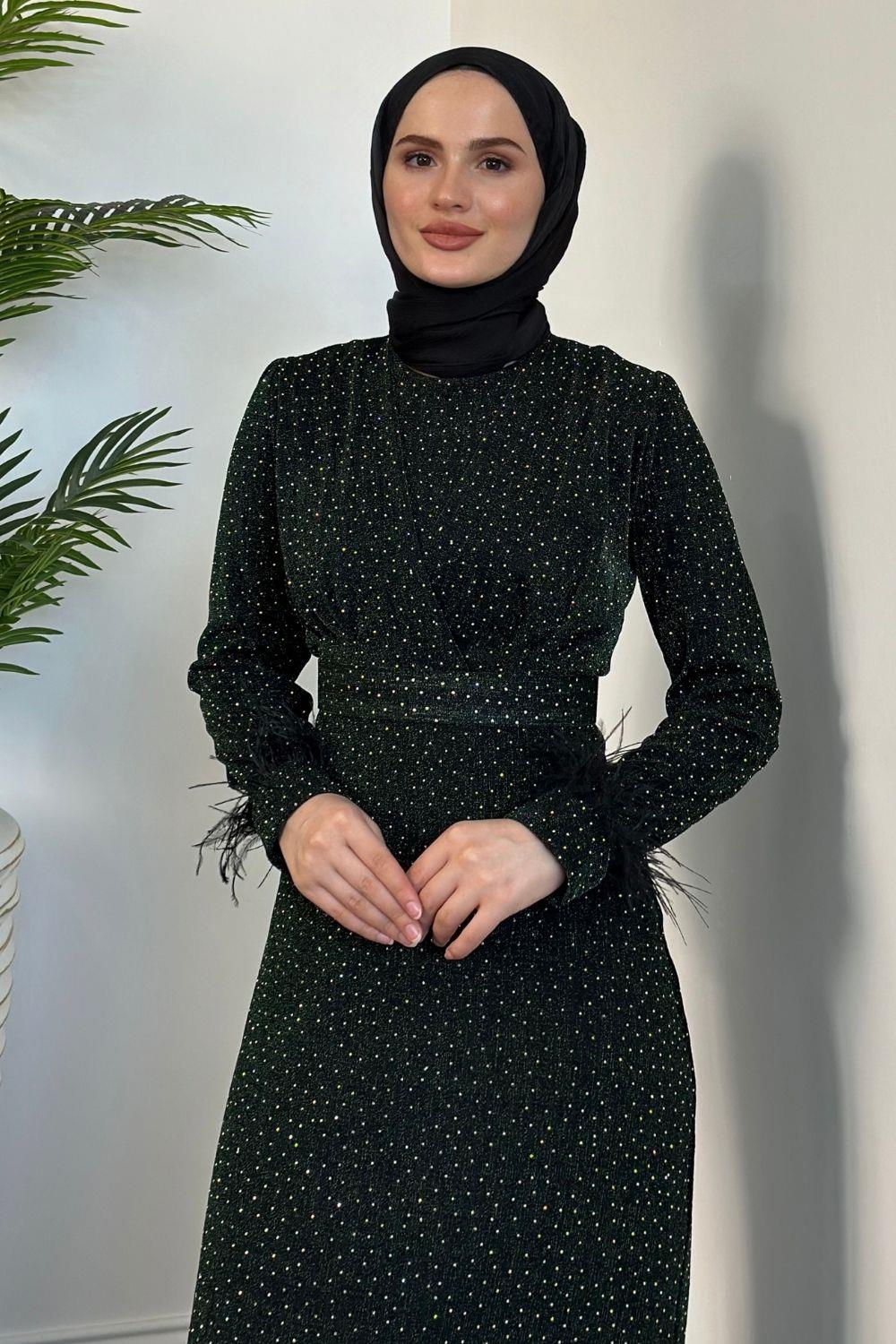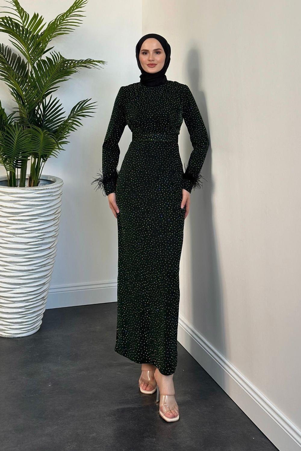 Celestina Simli Kruvaze Taş Detaylı Abiye Zümrüt