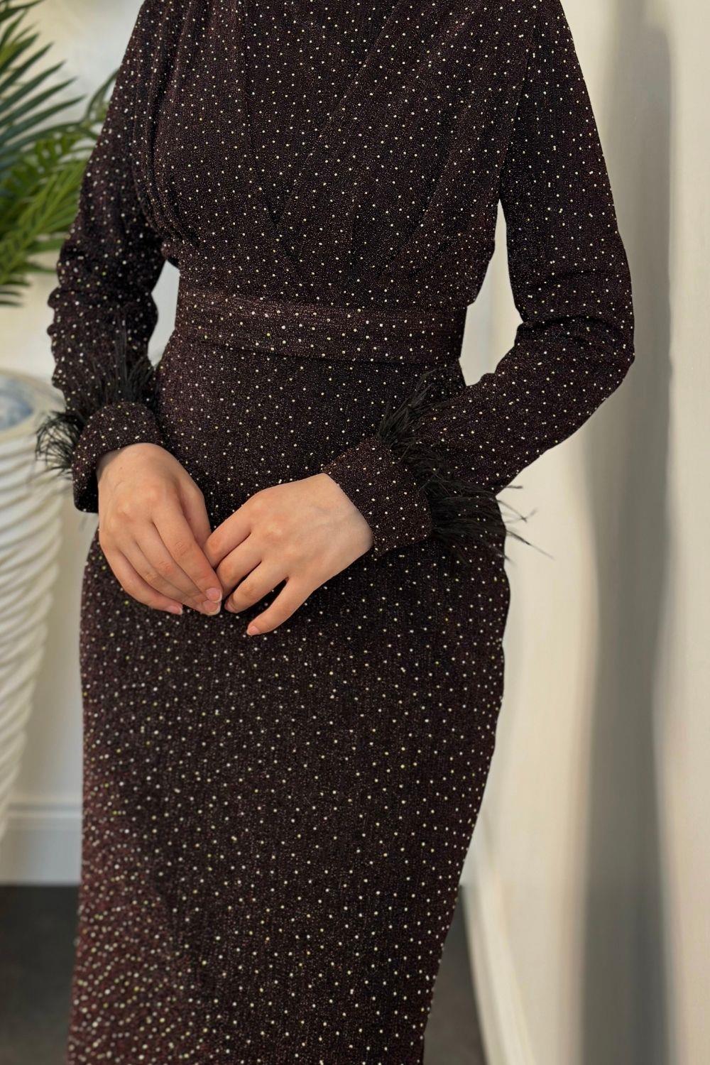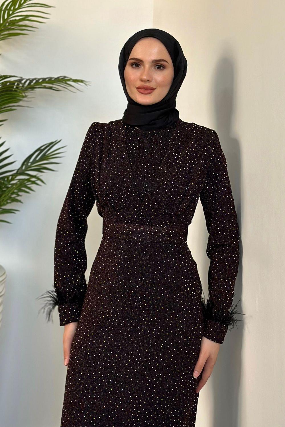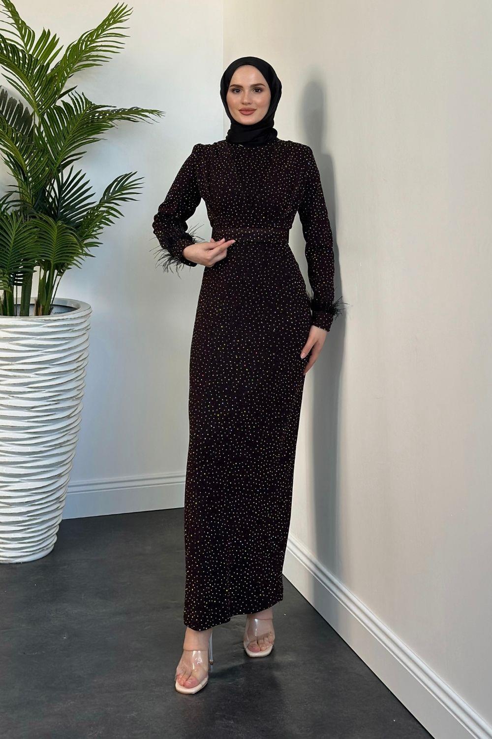 Celestina Simli Kruvaze Taş Detaylı Abiye Mürdüm