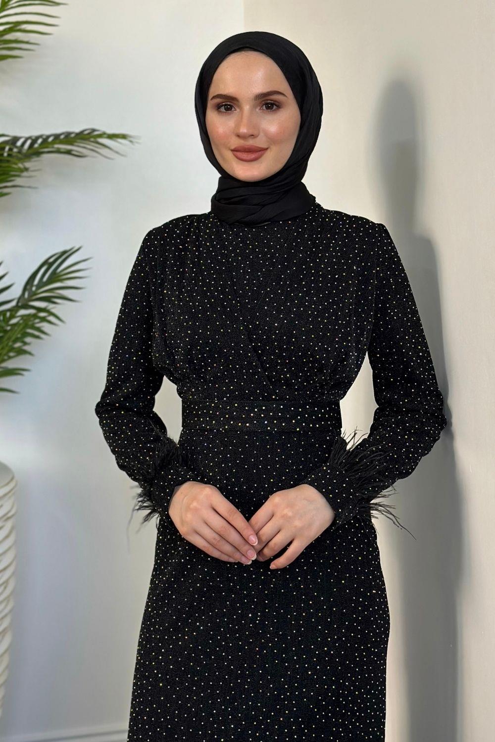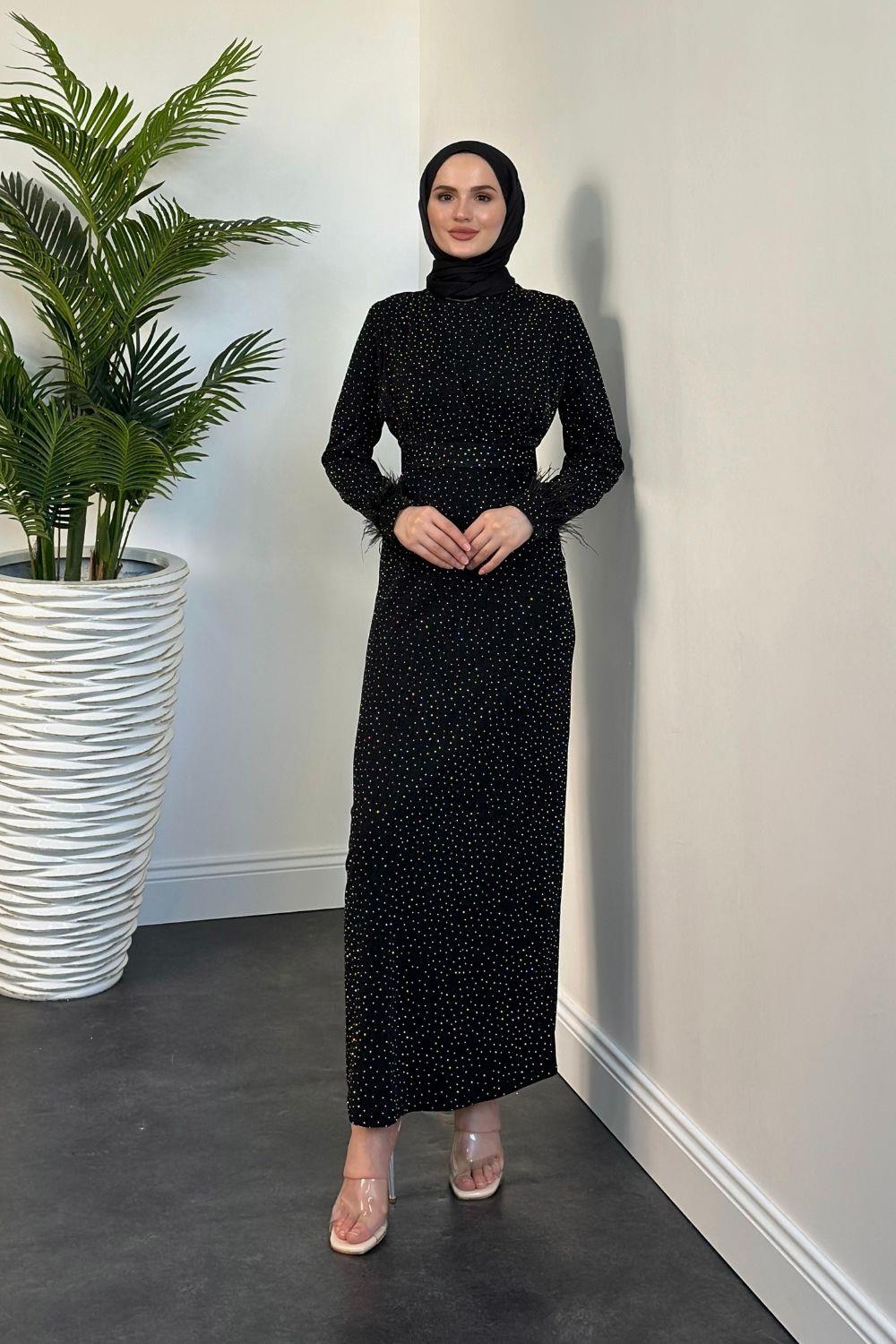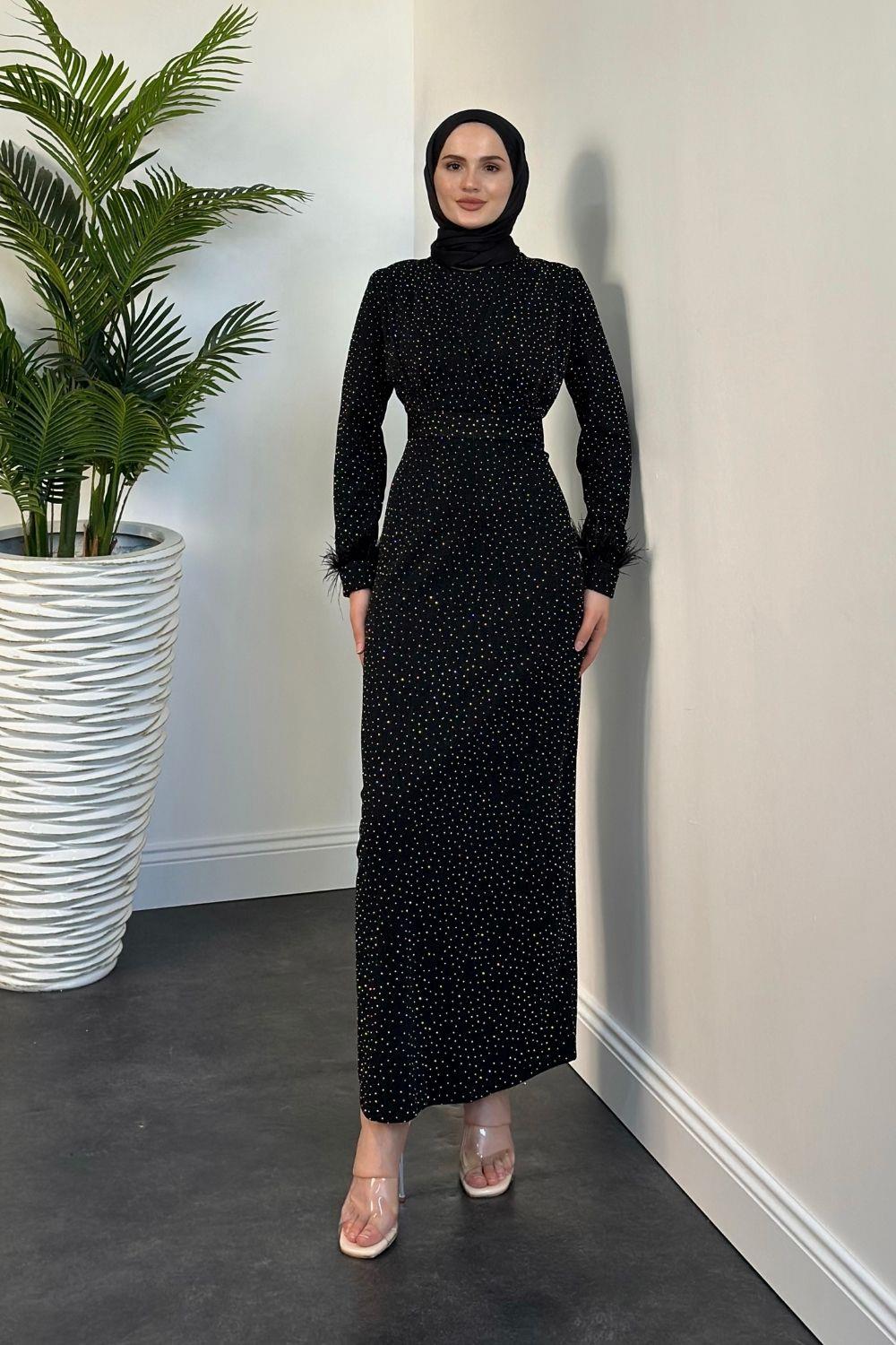 Celestina Simli Kruvaze Taş Detaylı Abiye Siyah