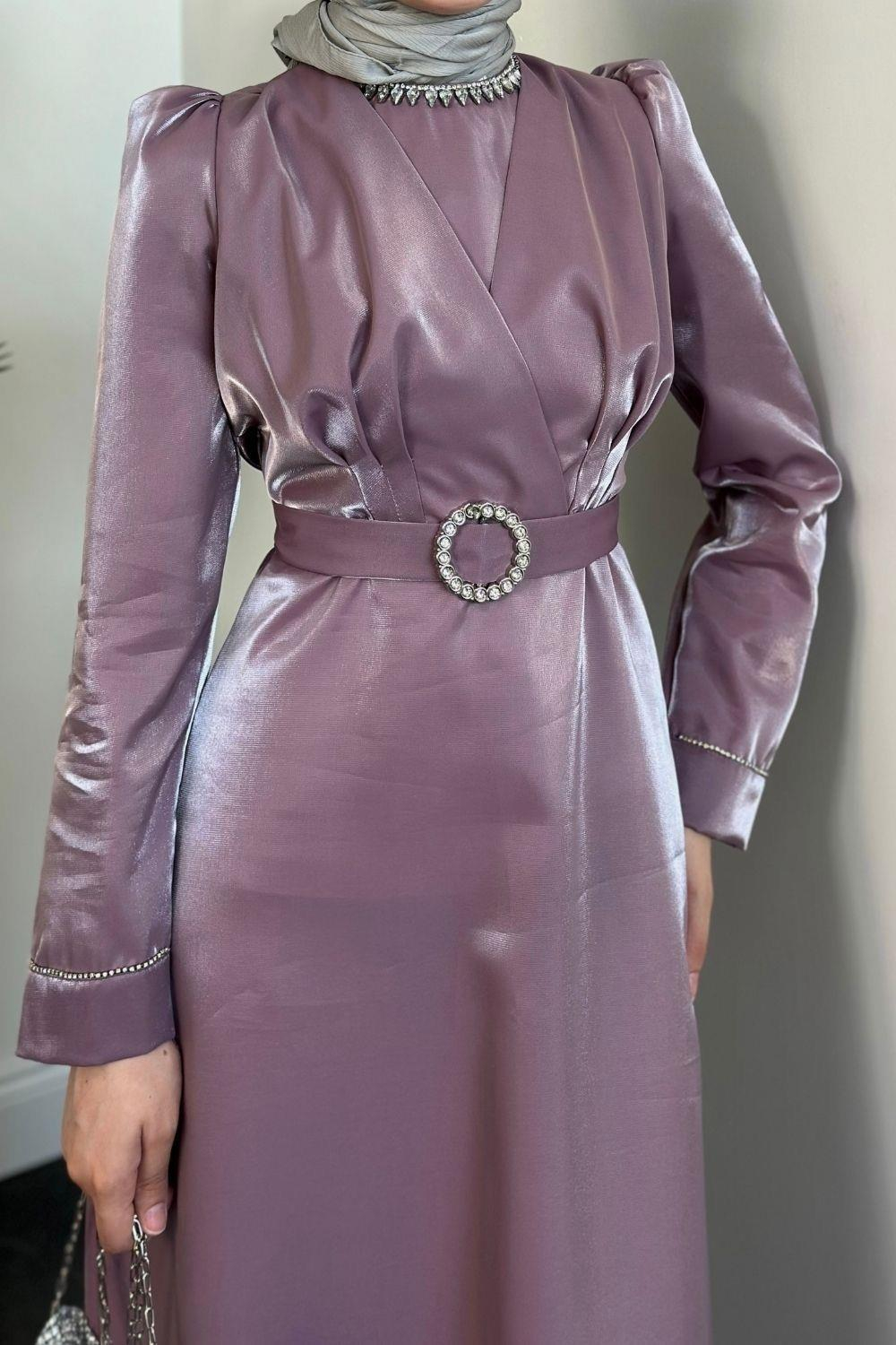 İrene Taşlı Tafta Abiye Lila