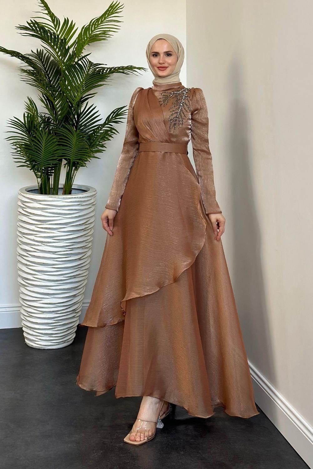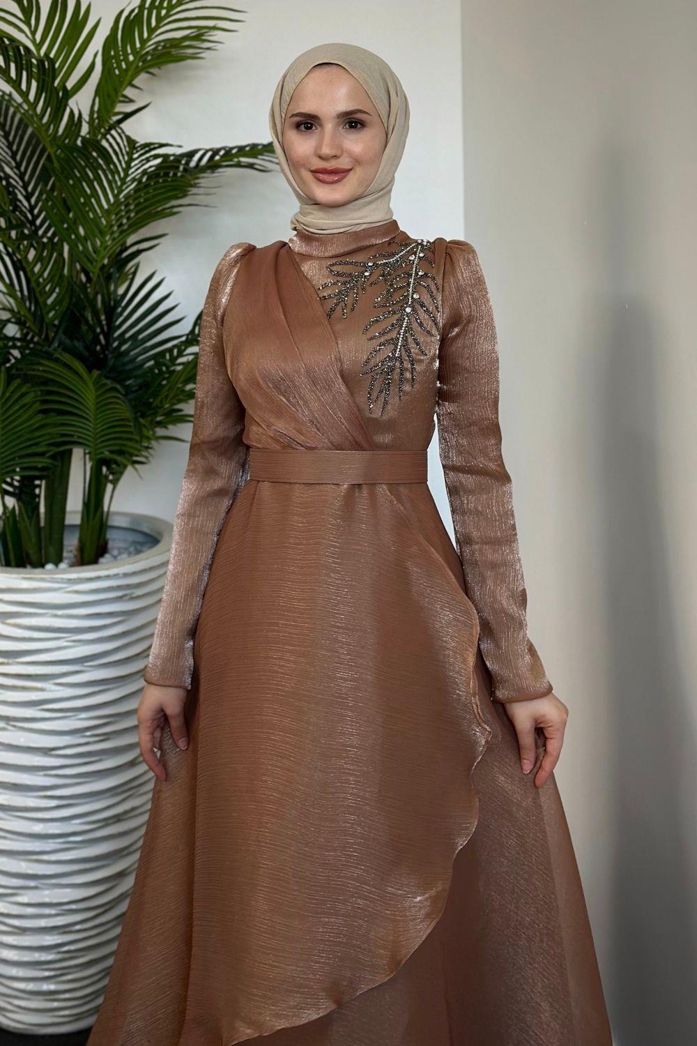 Ervah Taş Detay Abiye Sütlü Kahve