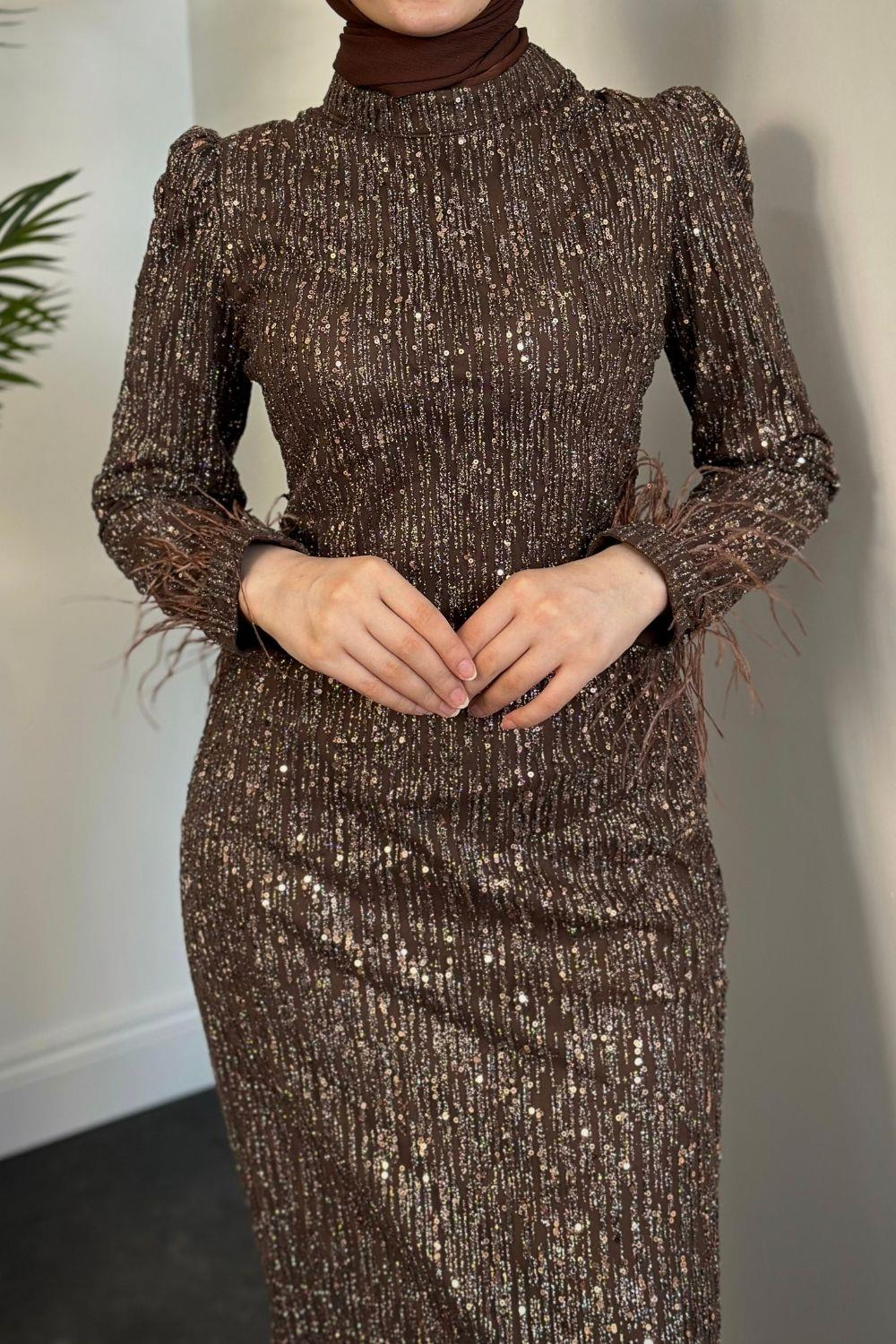 Carina Simli Kalem Abiye Kahverengi