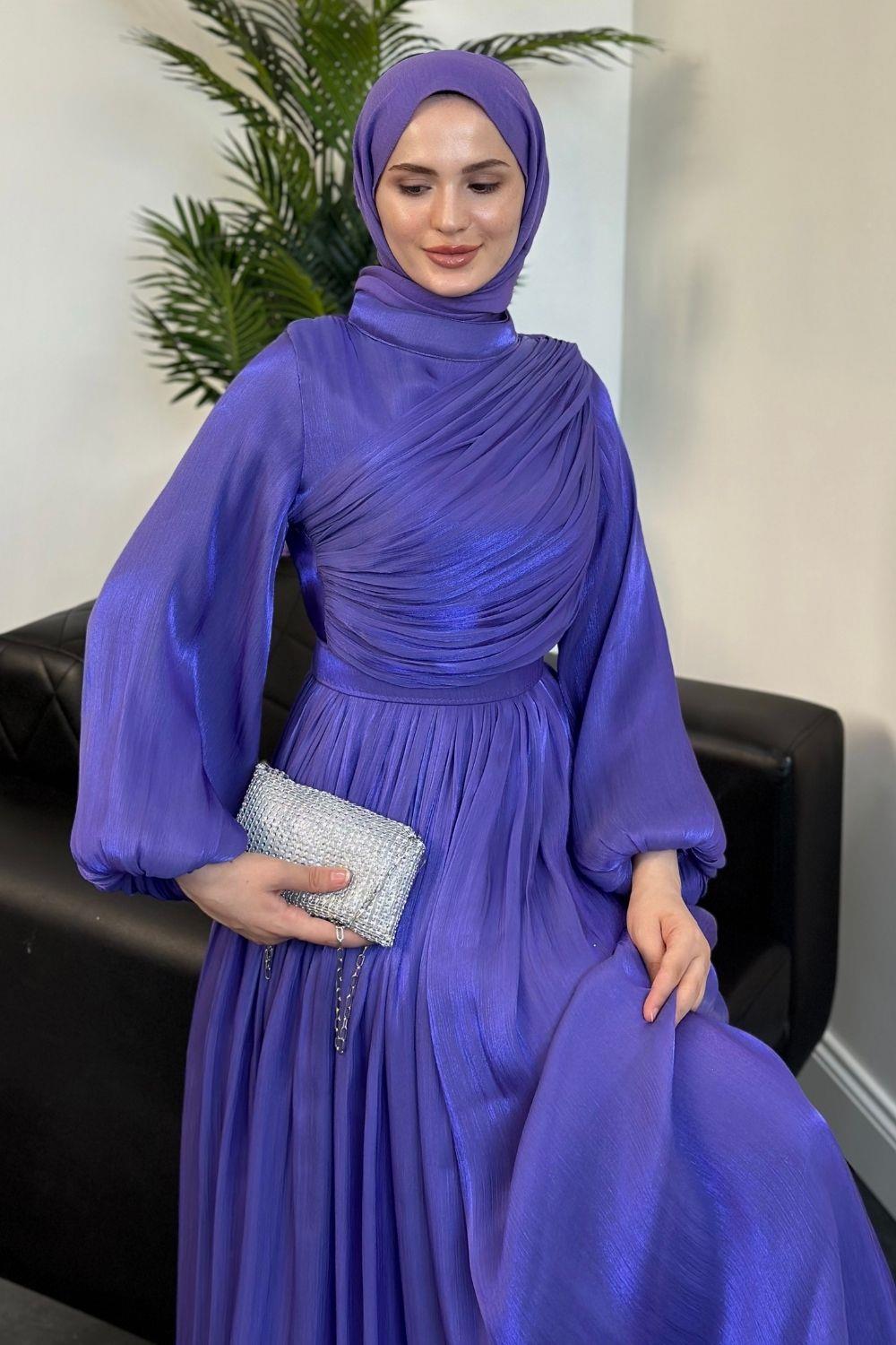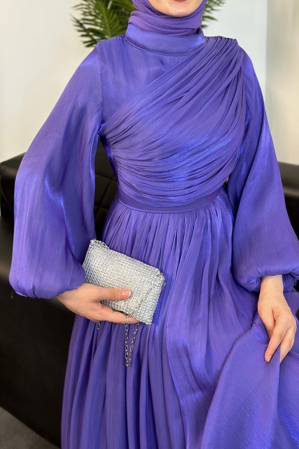 Erba Drape Detay Abiye Mor