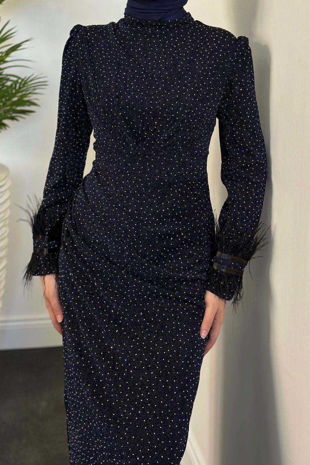 Meleda Taşlı Kuyruklu Likralı Balık Abiye Lacivert