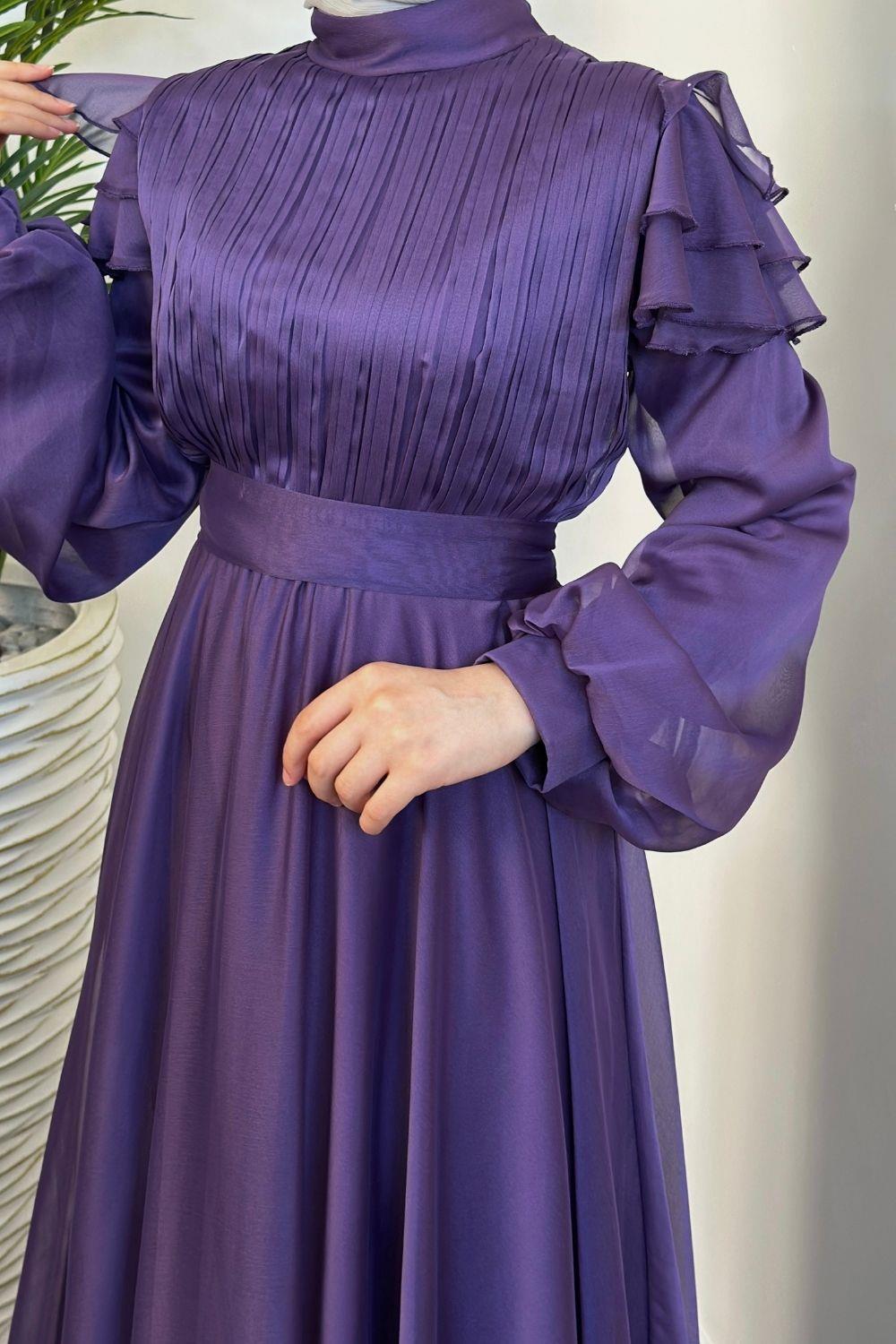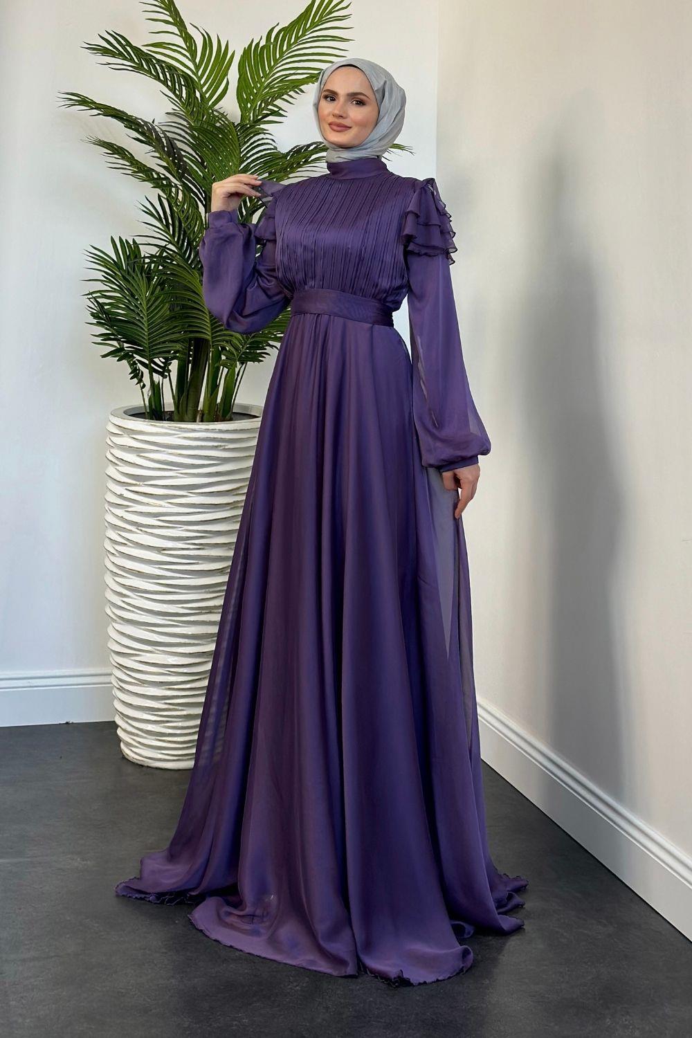 Efnan Omzu Fırfır Janjan Abiye Lila