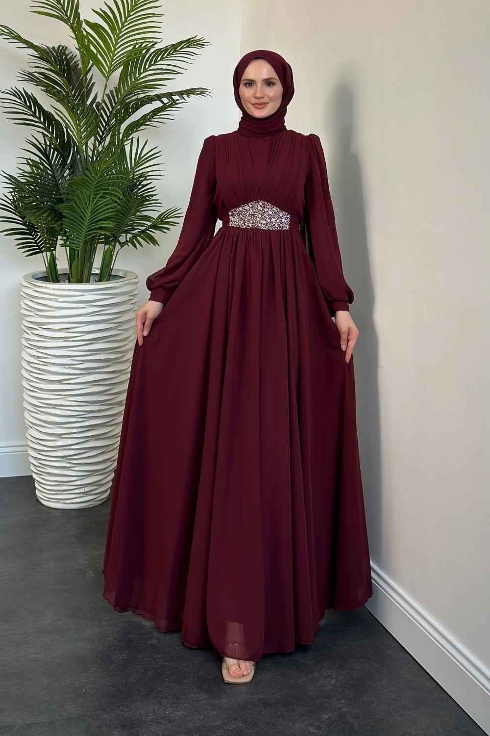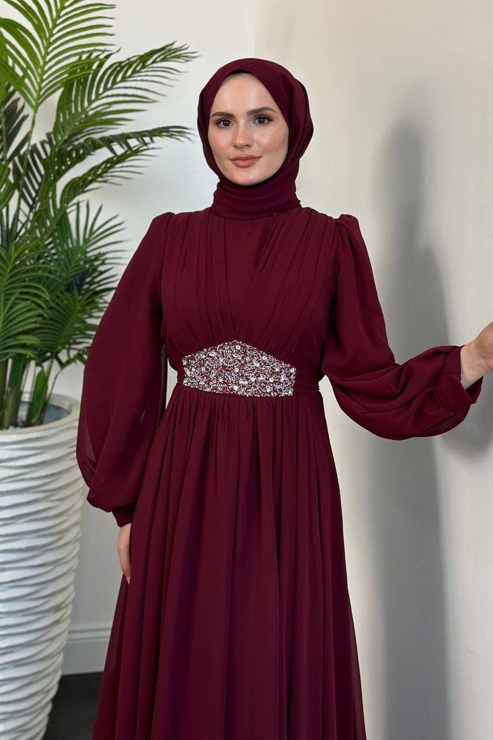 Sella Bel Taş Korse Abiye Vişne Çürüğü