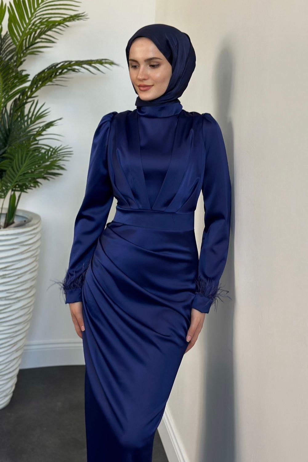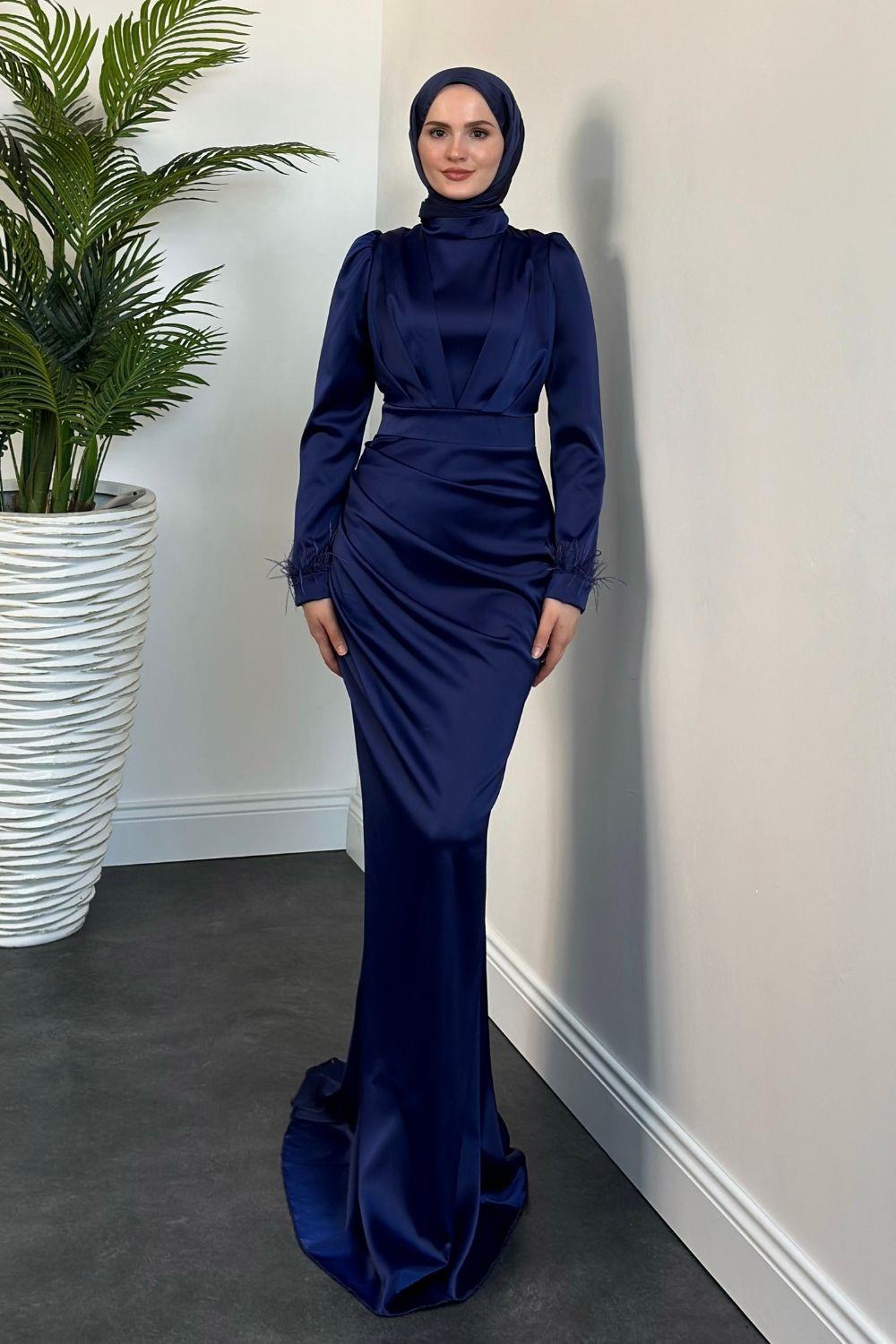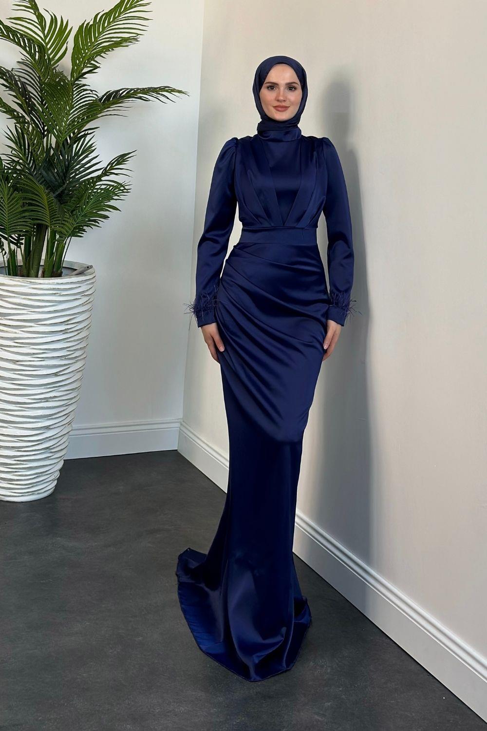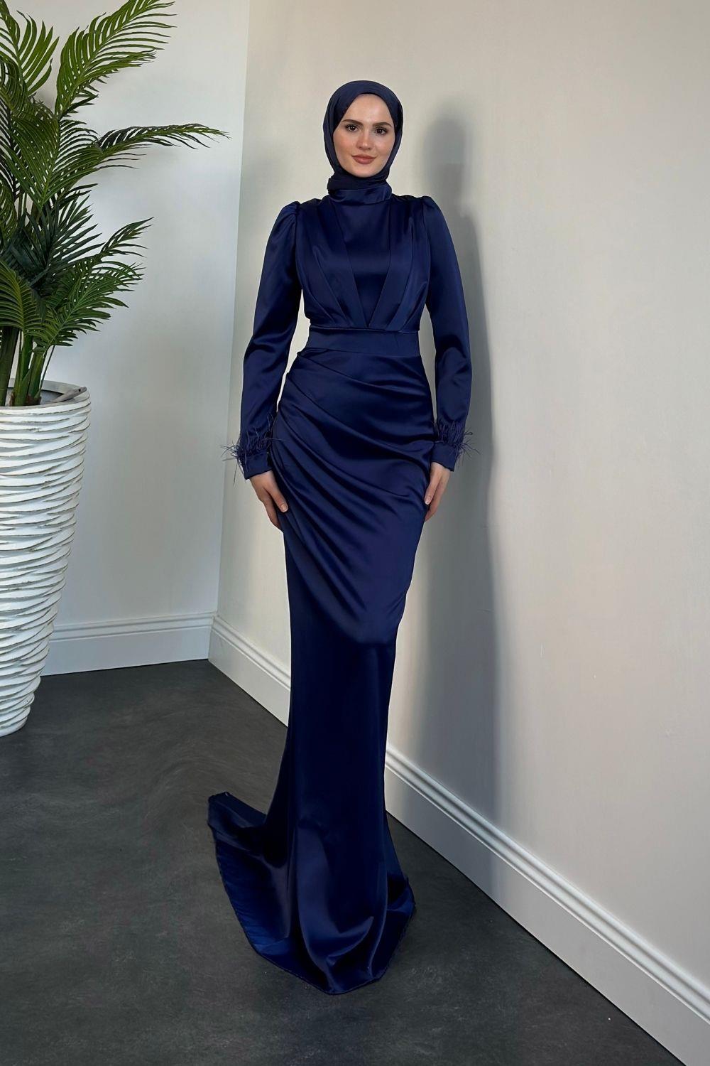 Vladya Kuyruklu Saten Balık Abiye Lacivert