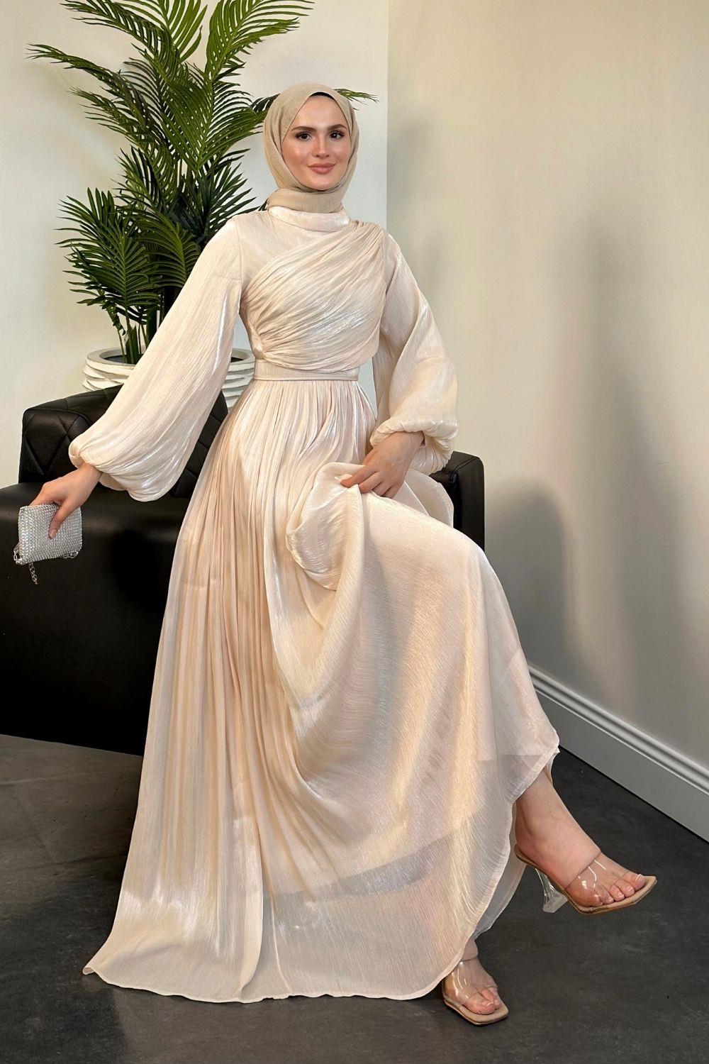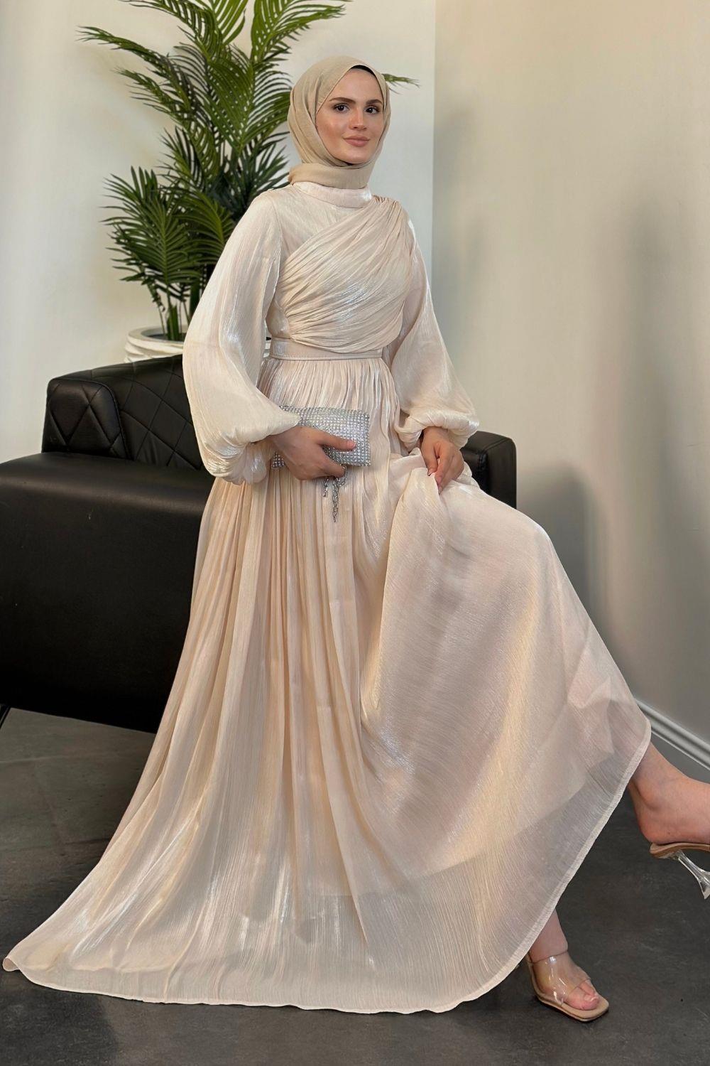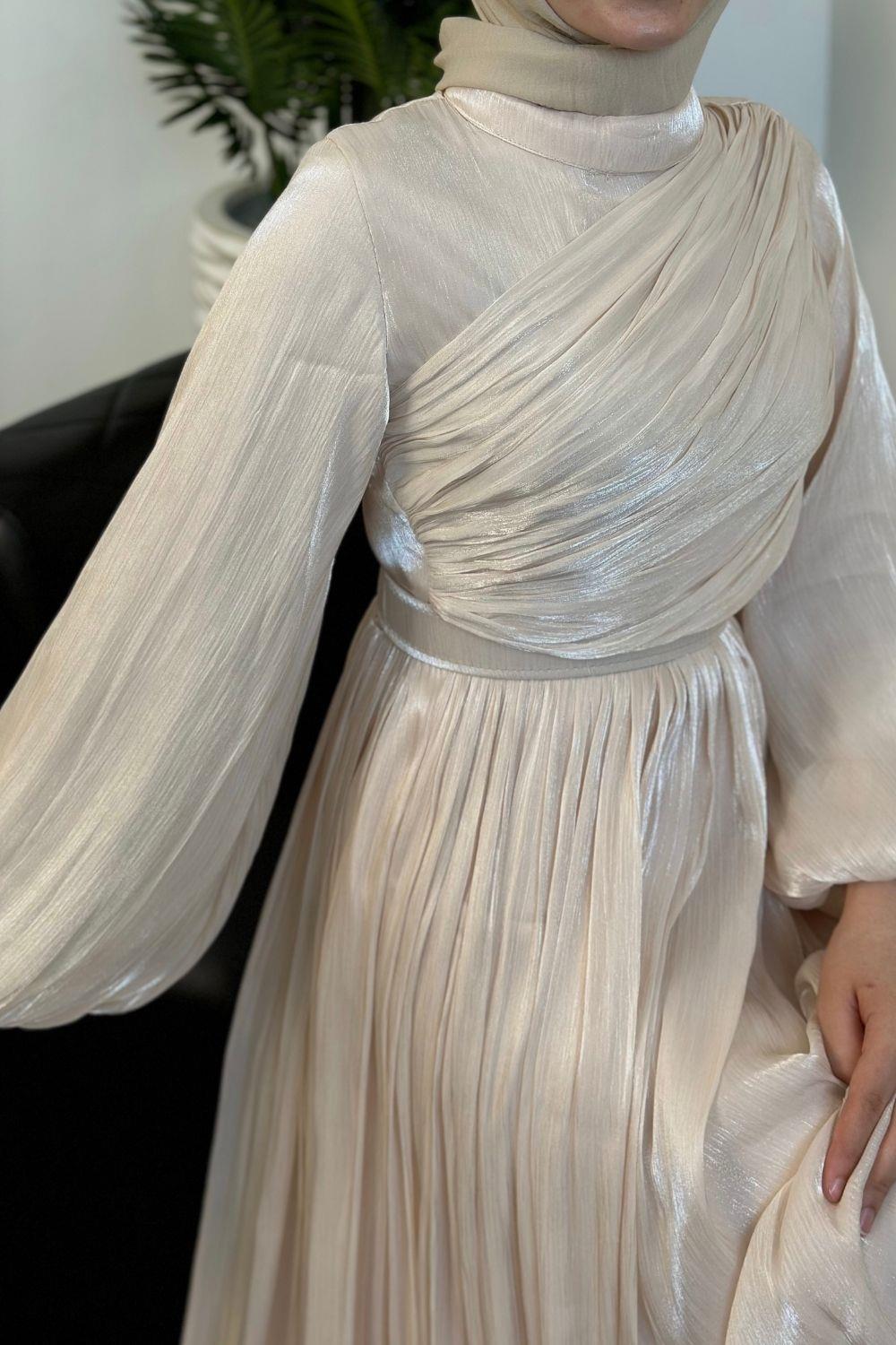 Erba Drape Detay Abiye Krem
