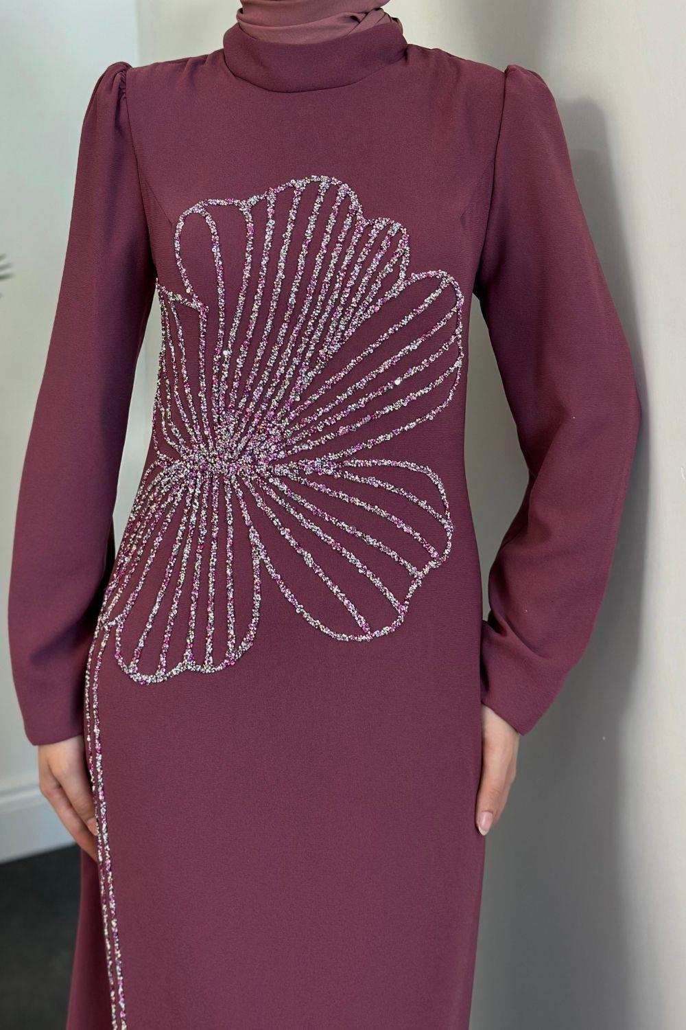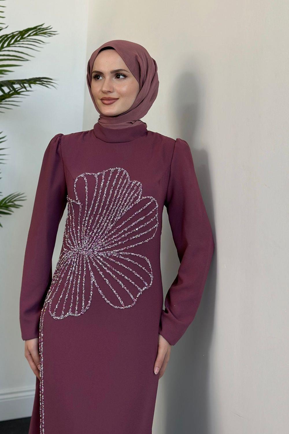 Nursema Taşlı Abiye Gül Kurusu