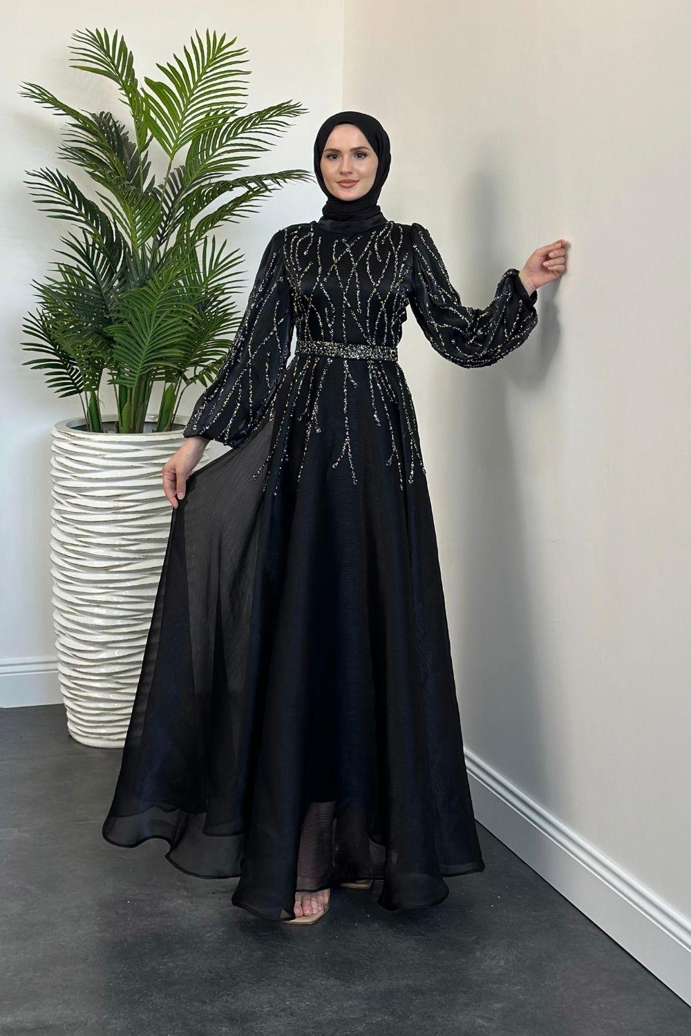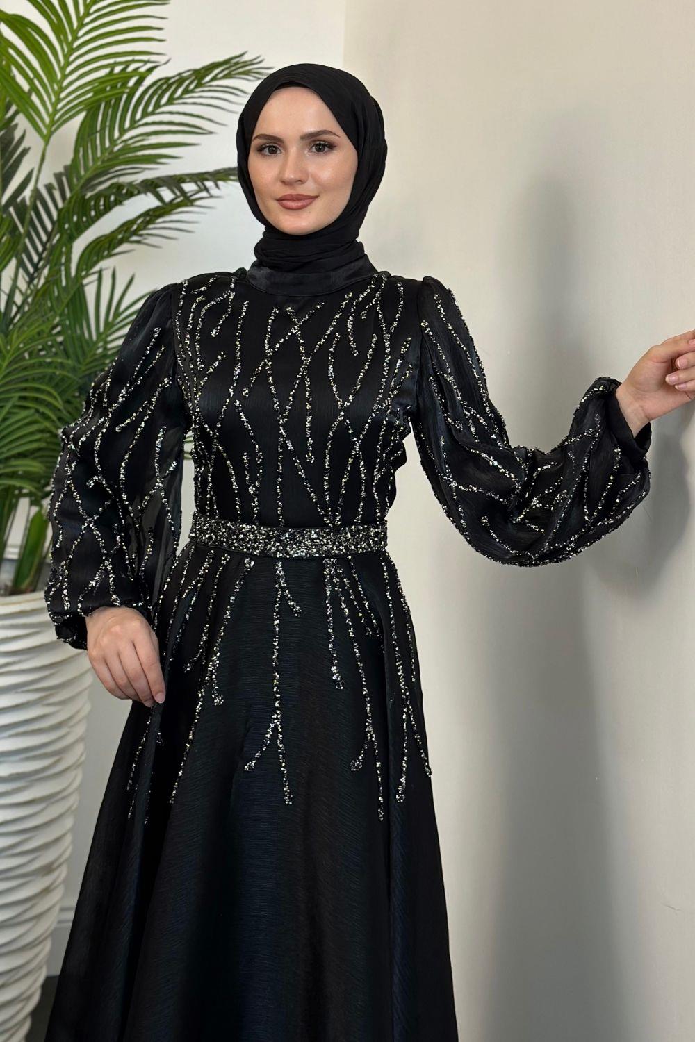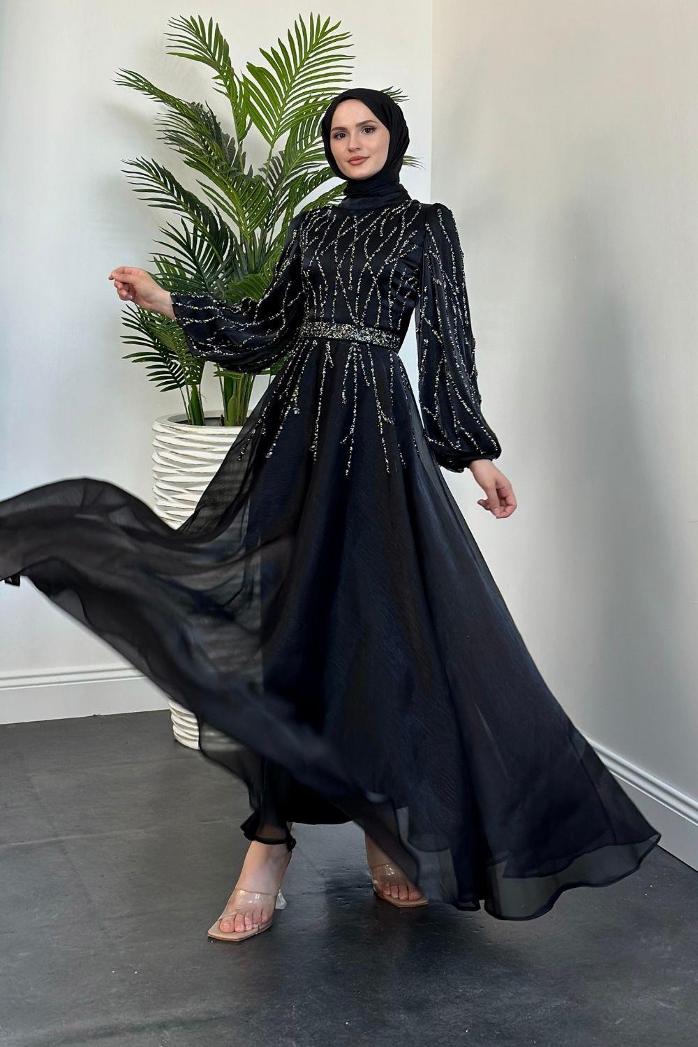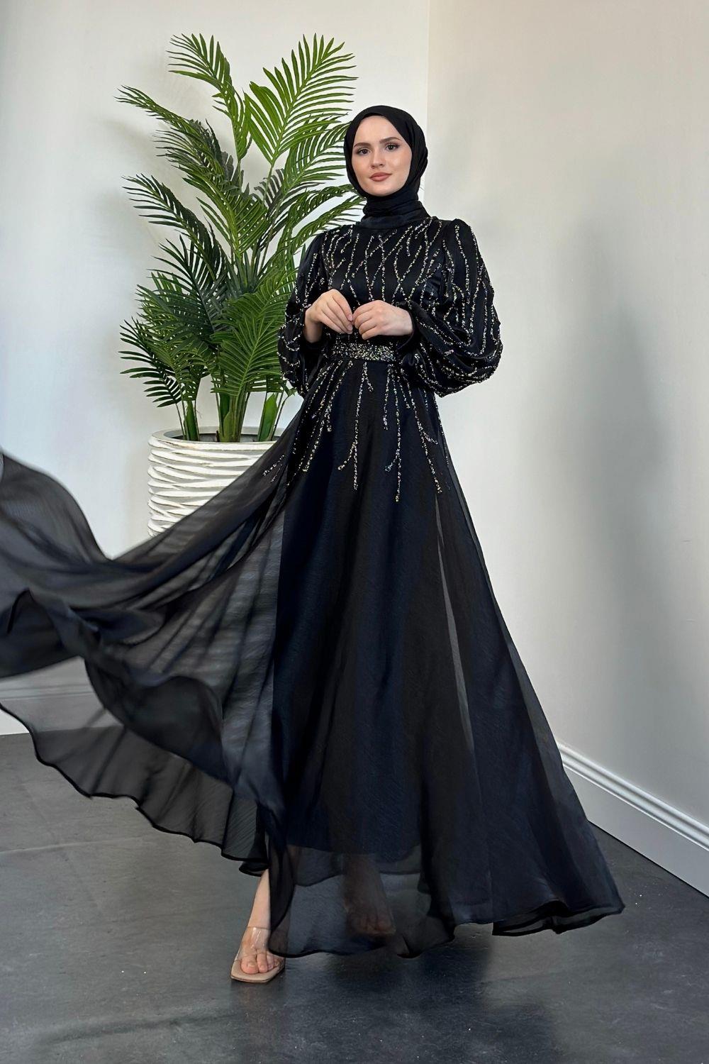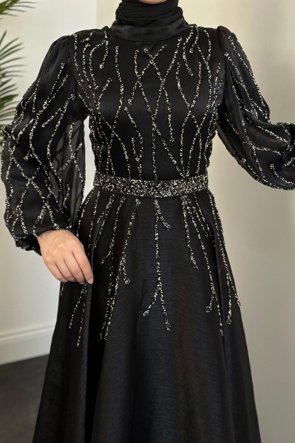 Rabelia Taşlı Abiye Siyah