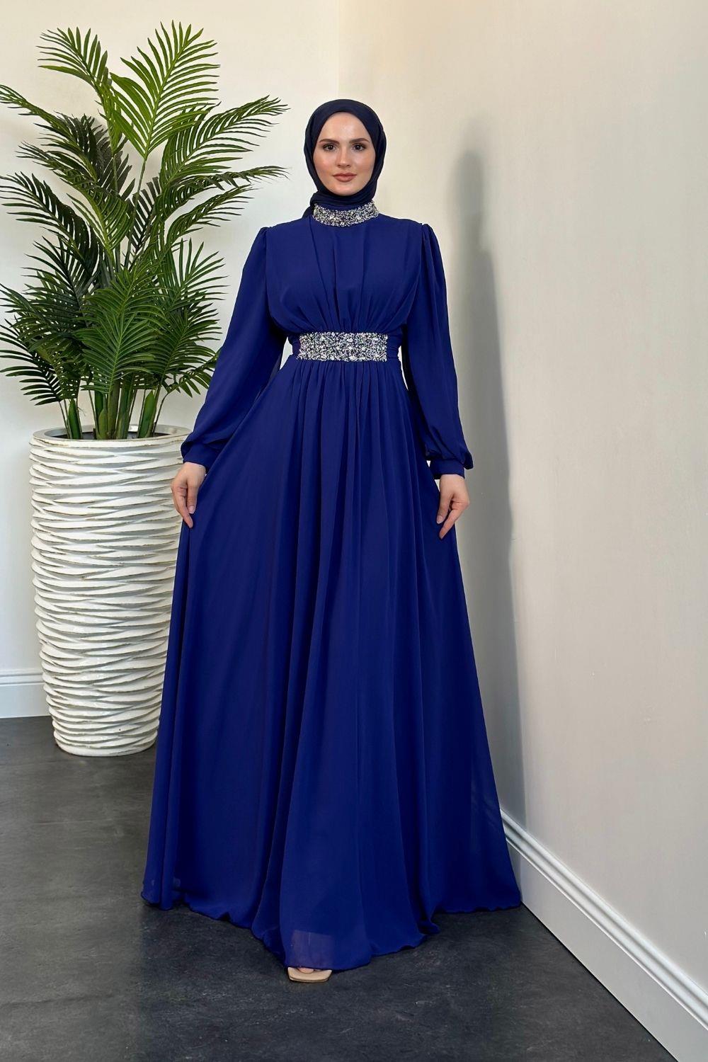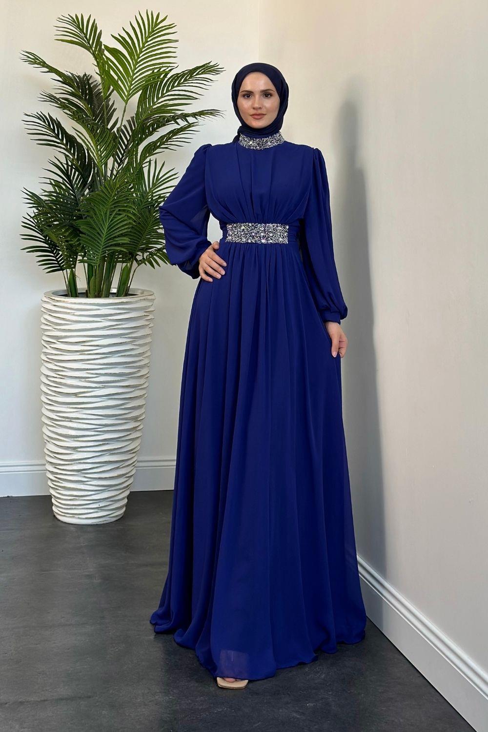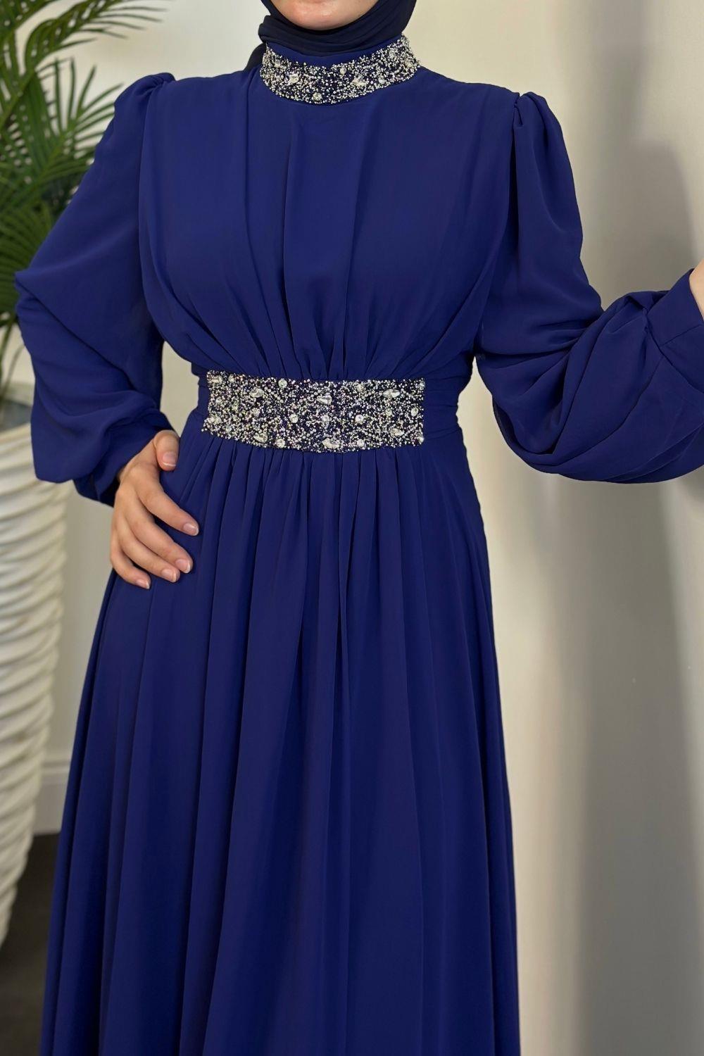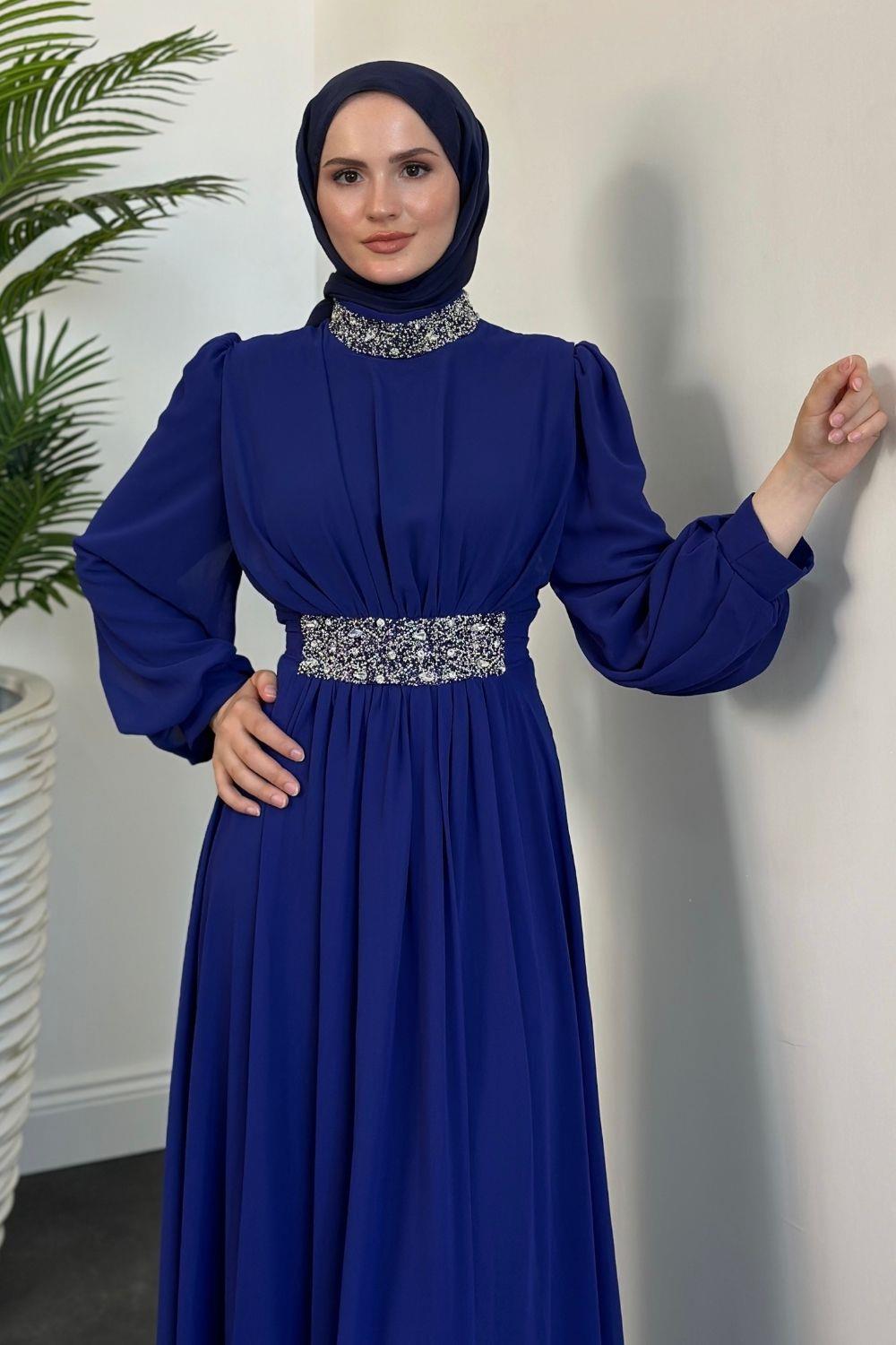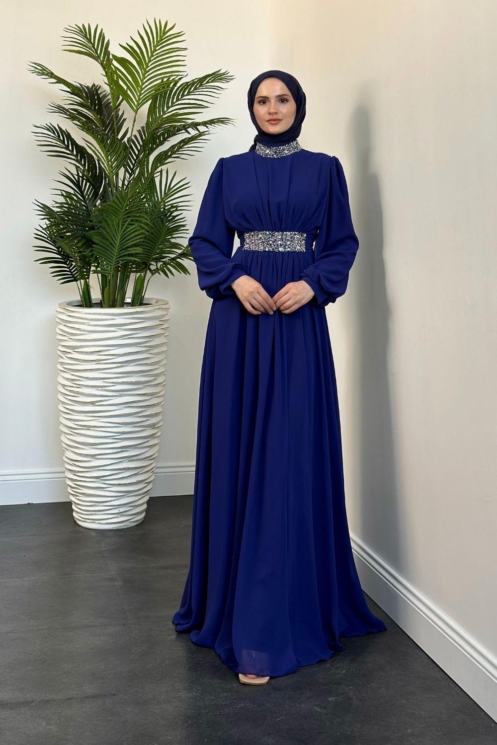 Mishe Şifon Abiye İndigo