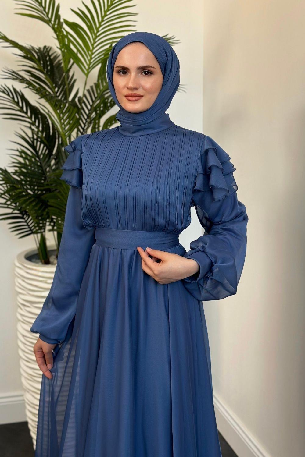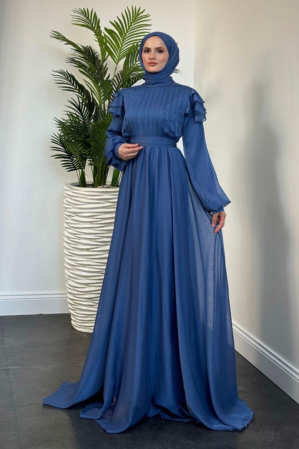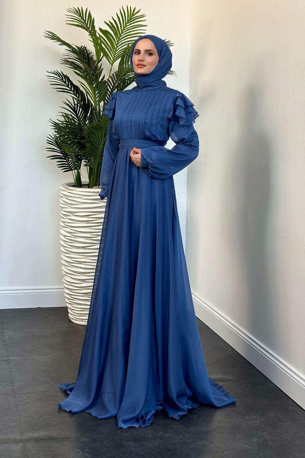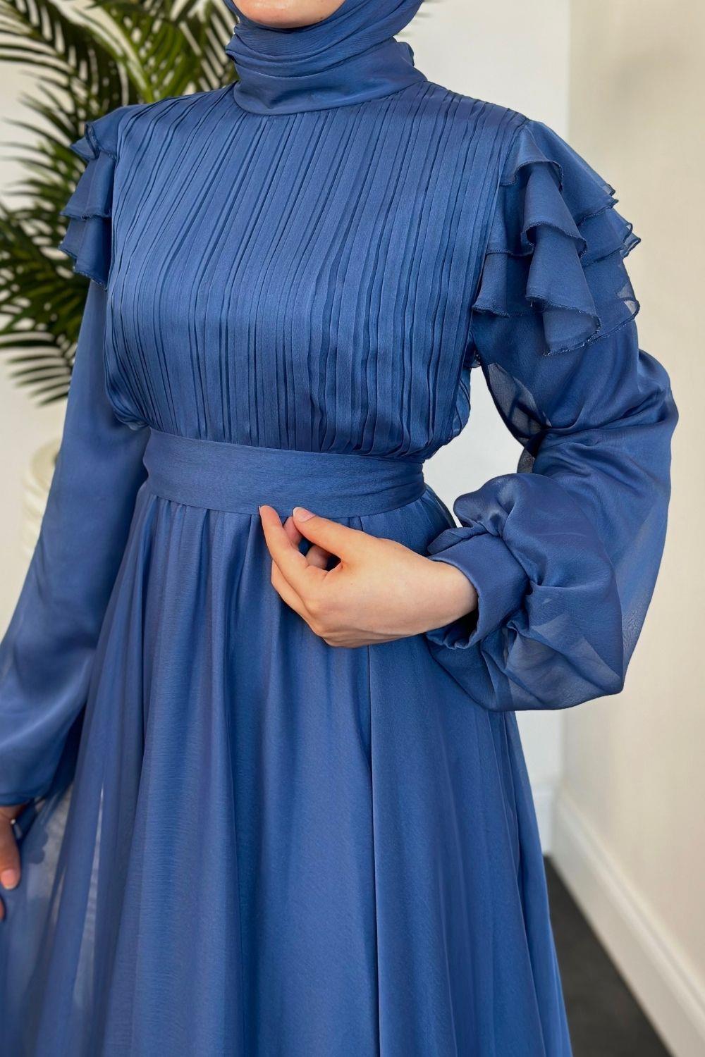 Efnan Omzu Fırfır Janjan Abiye Mavi