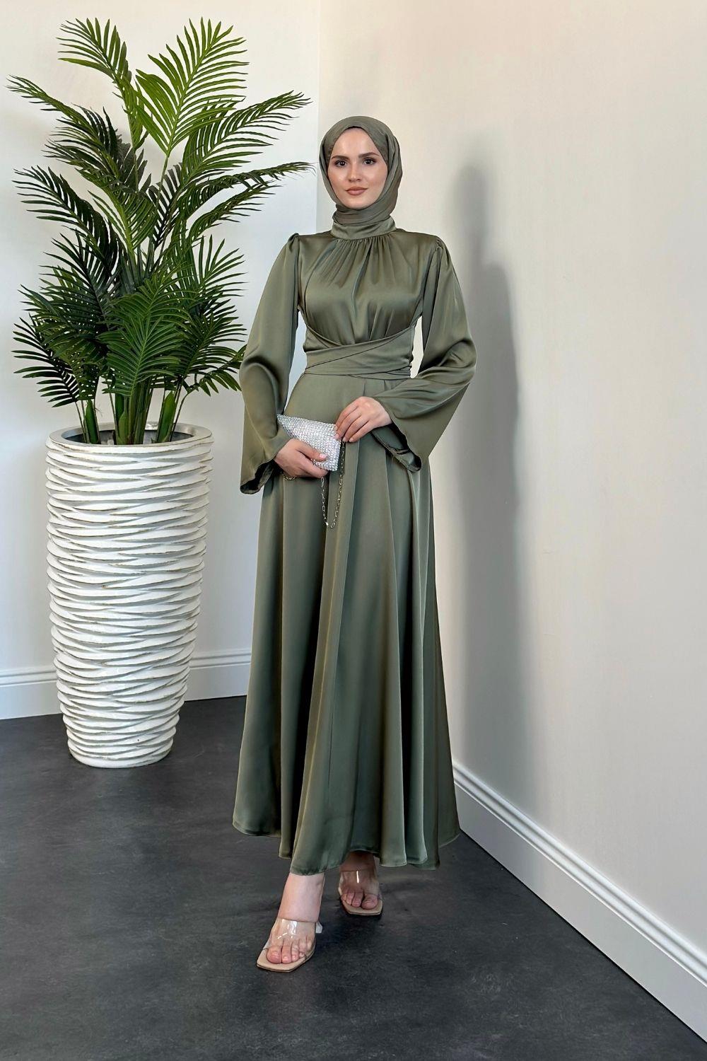 Diba Çapraz Kemer İpek Saten Abiye Haki