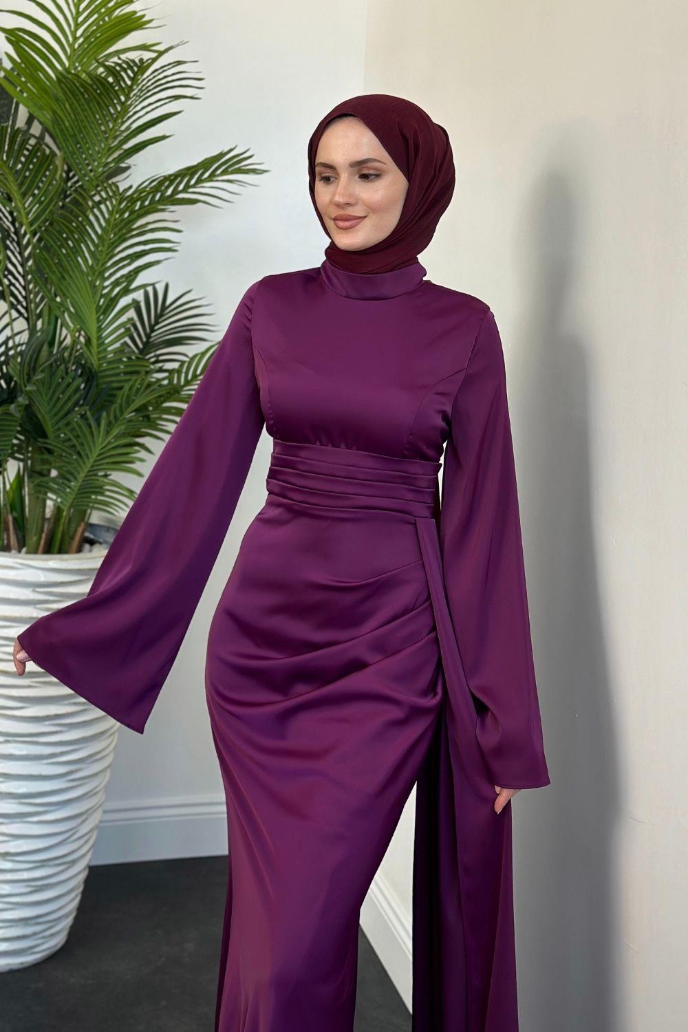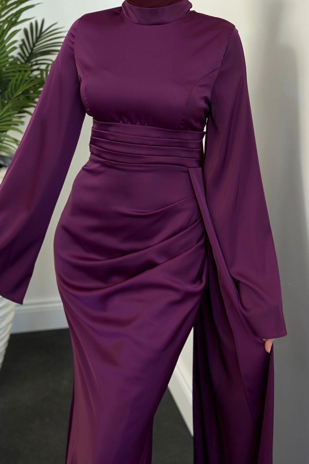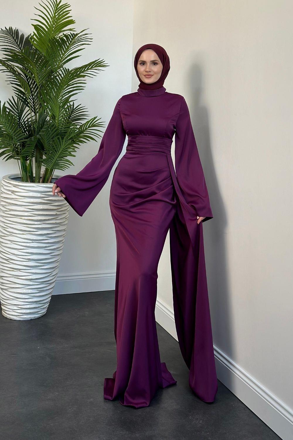 Arabella Pelerinli Saten Balık Abiye Mürdüm