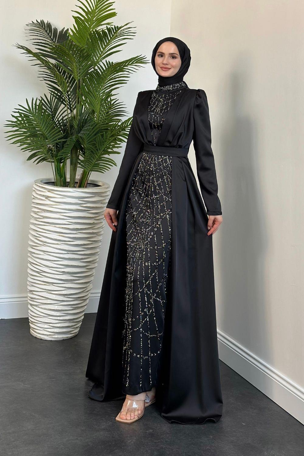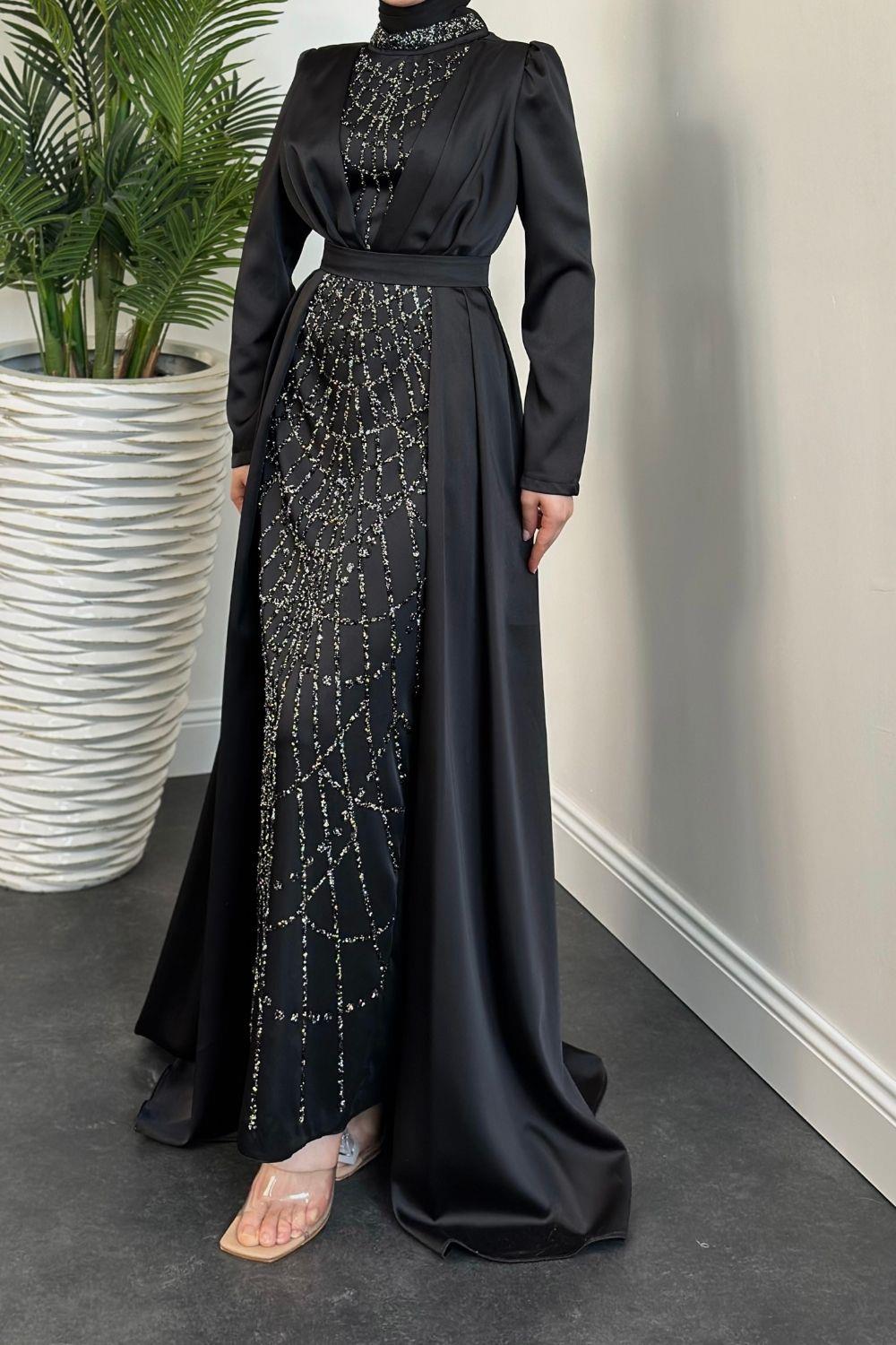 Sindirella Pelerin Detay Abiye Siyah
