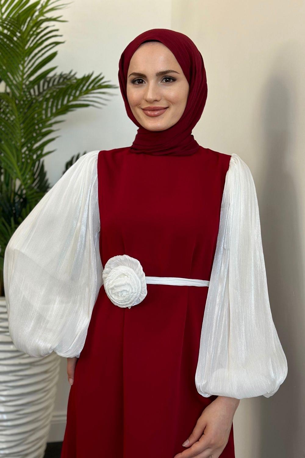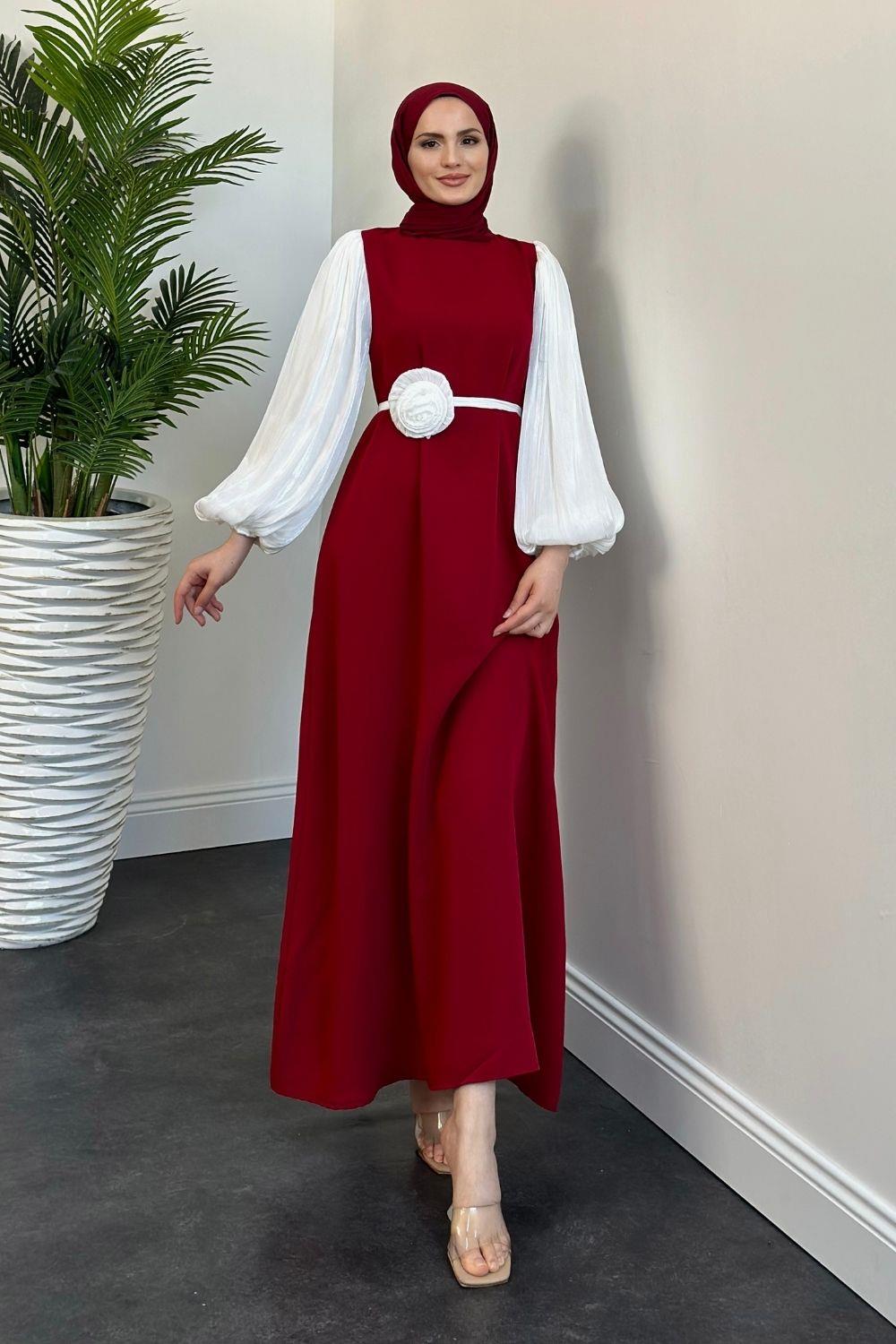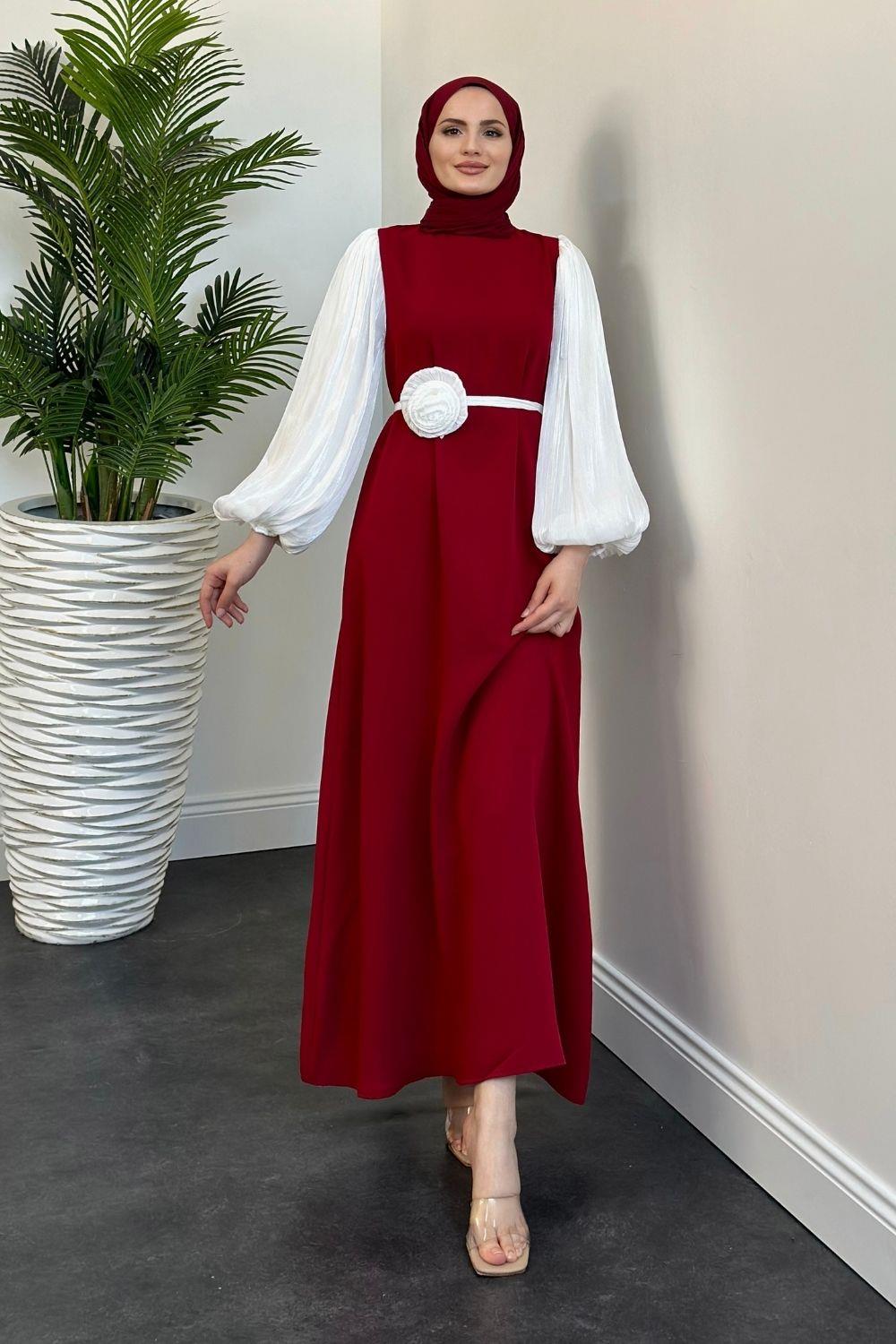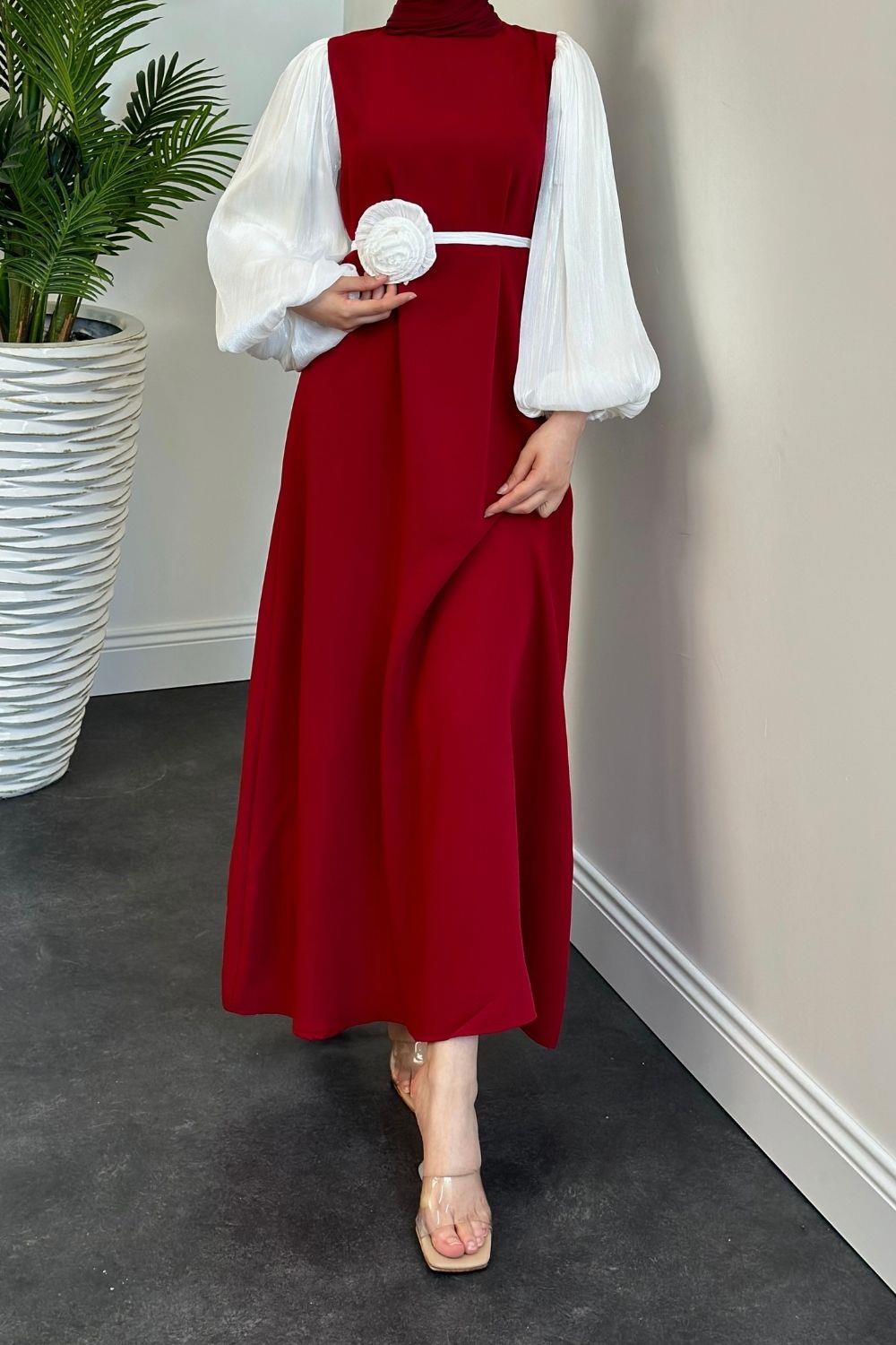 Belladia Gül Tokalı Elbise Kırmızı