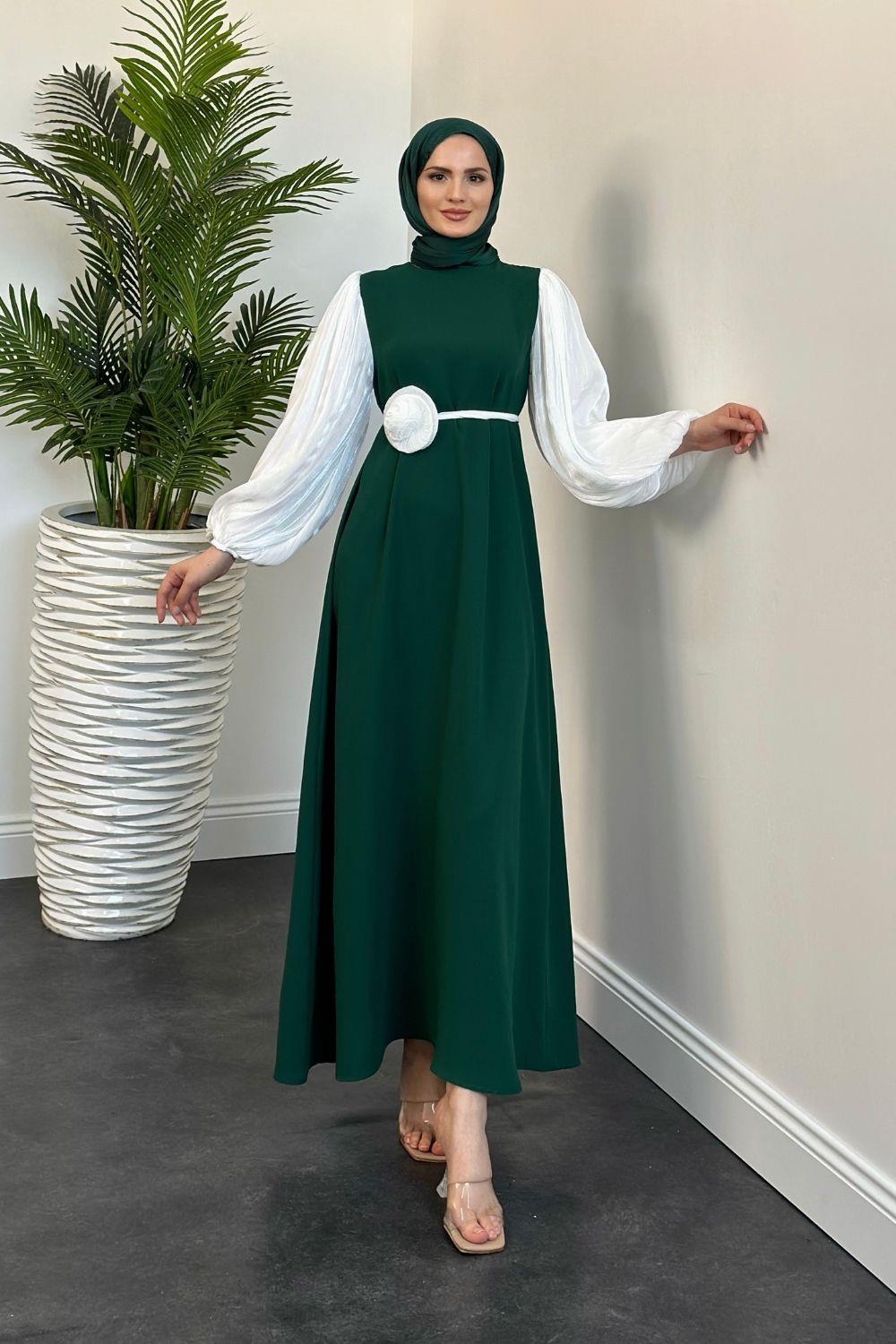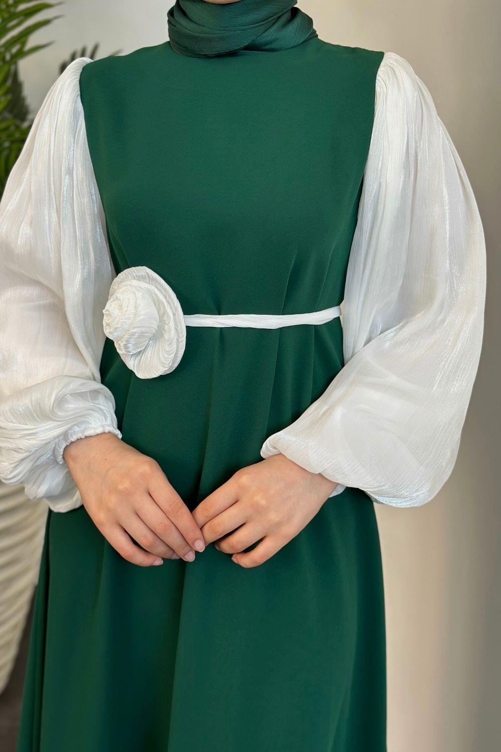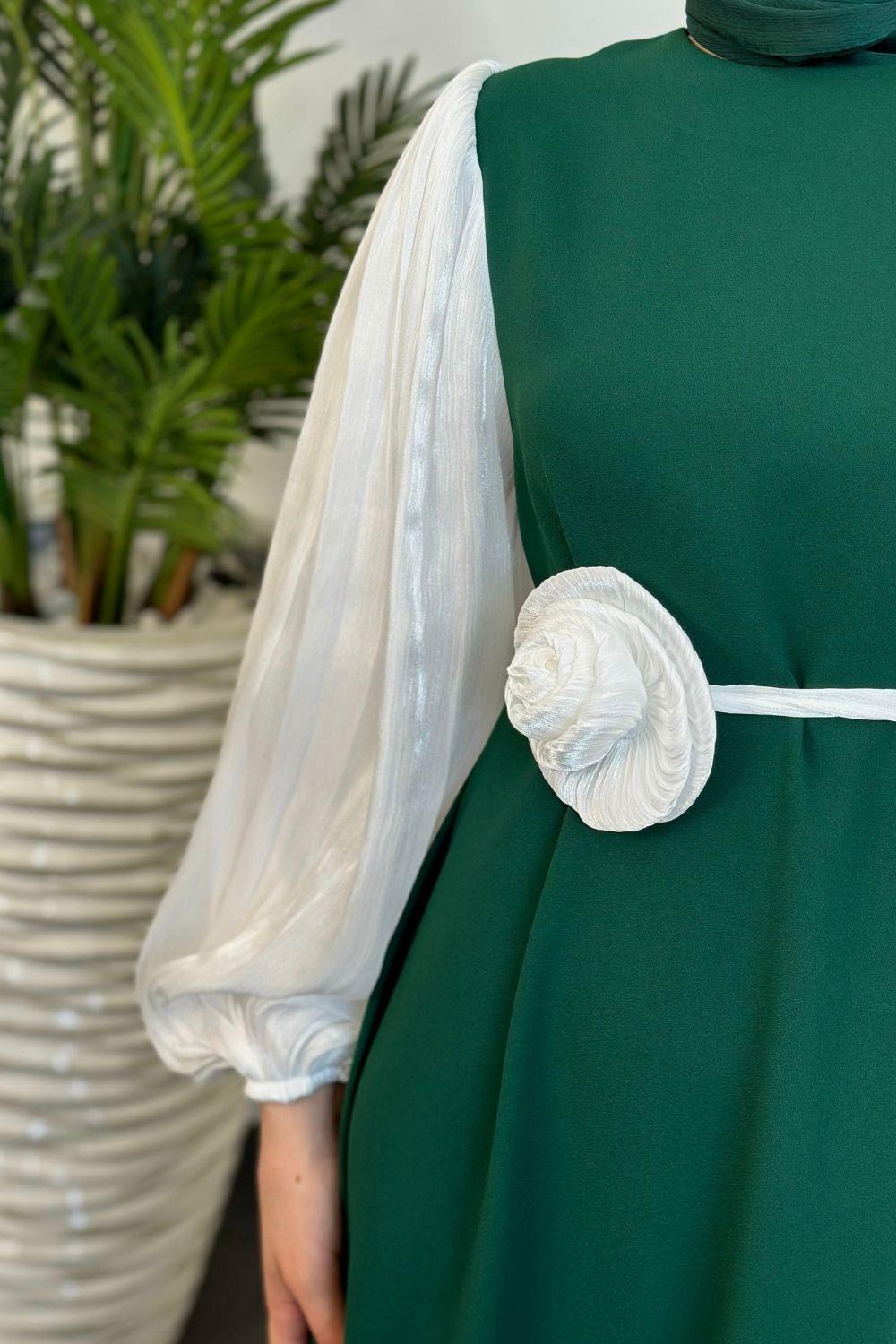 Belladia Gül Tokalı Elbise Zümrüt