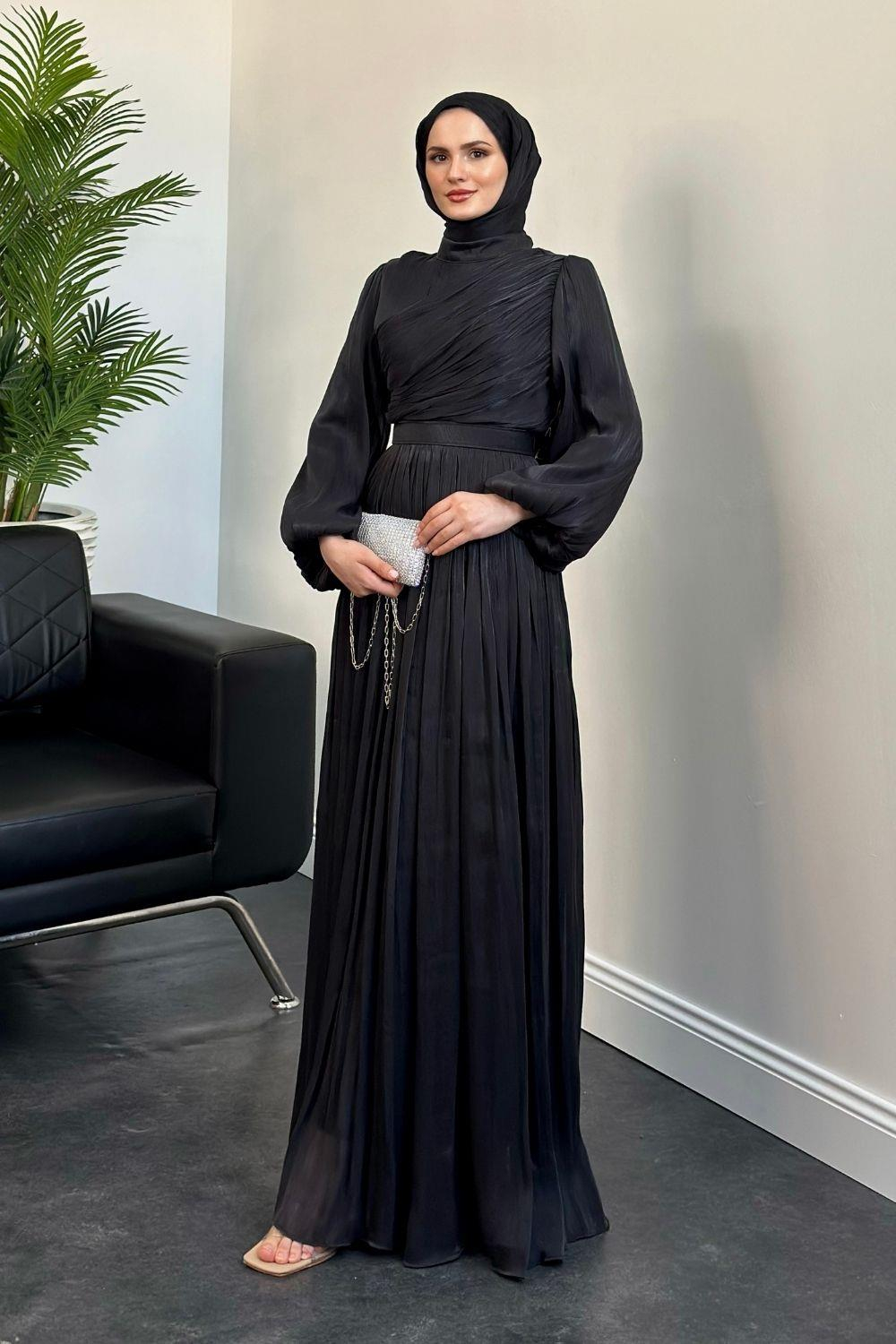 Erba Drape Detay Abiye Siyah
