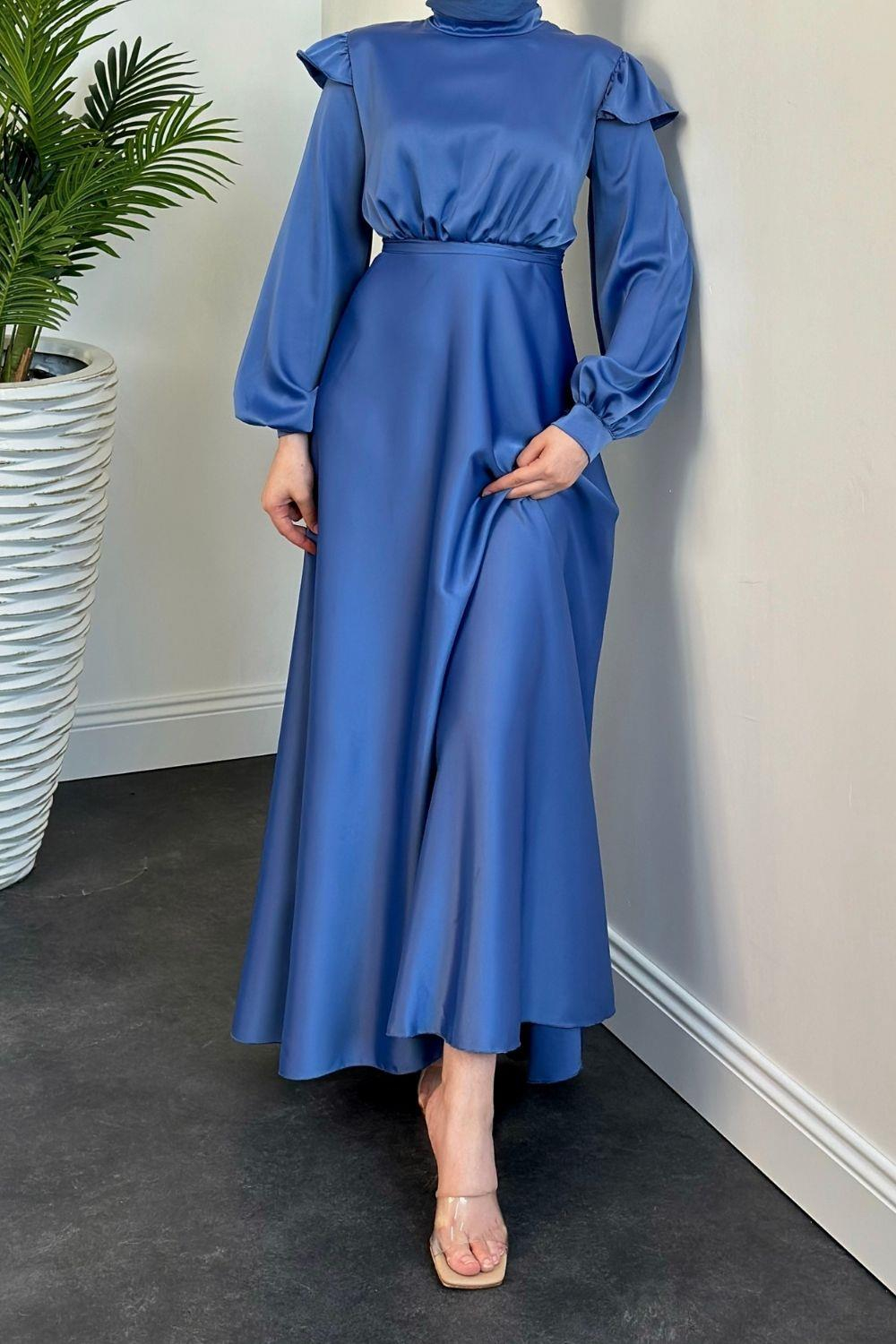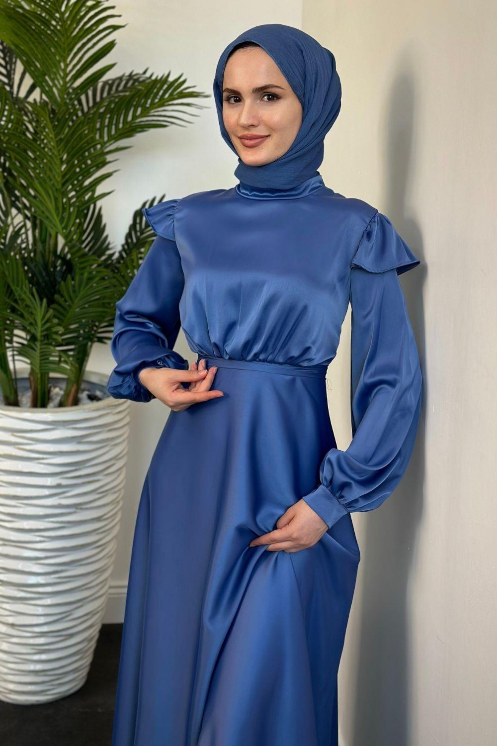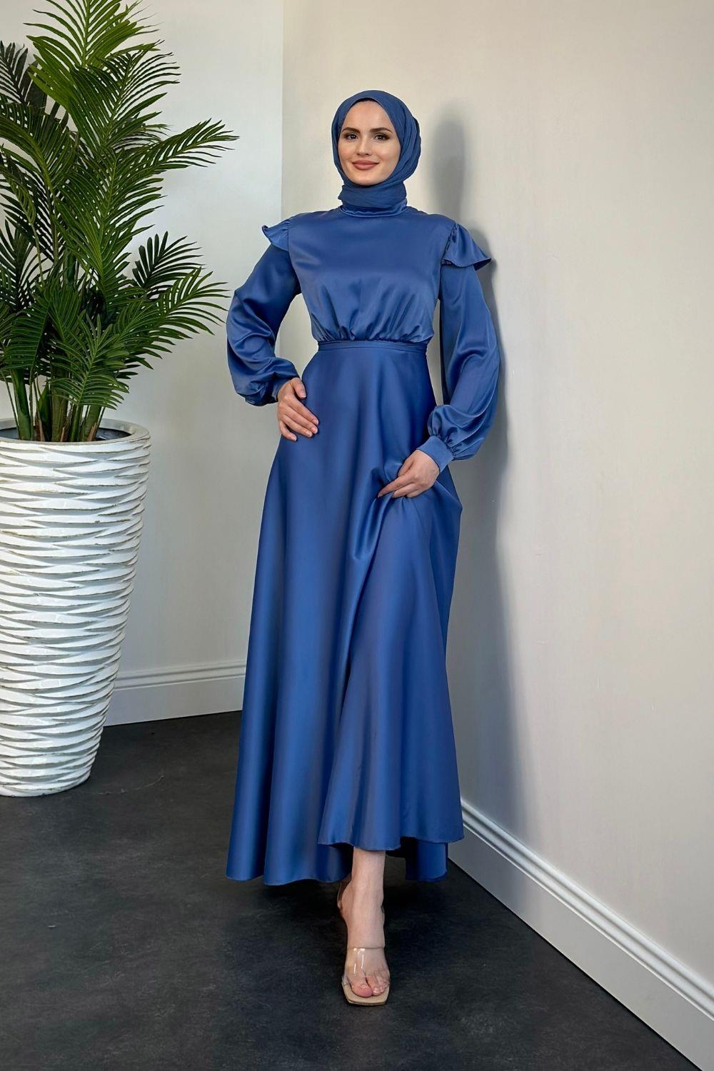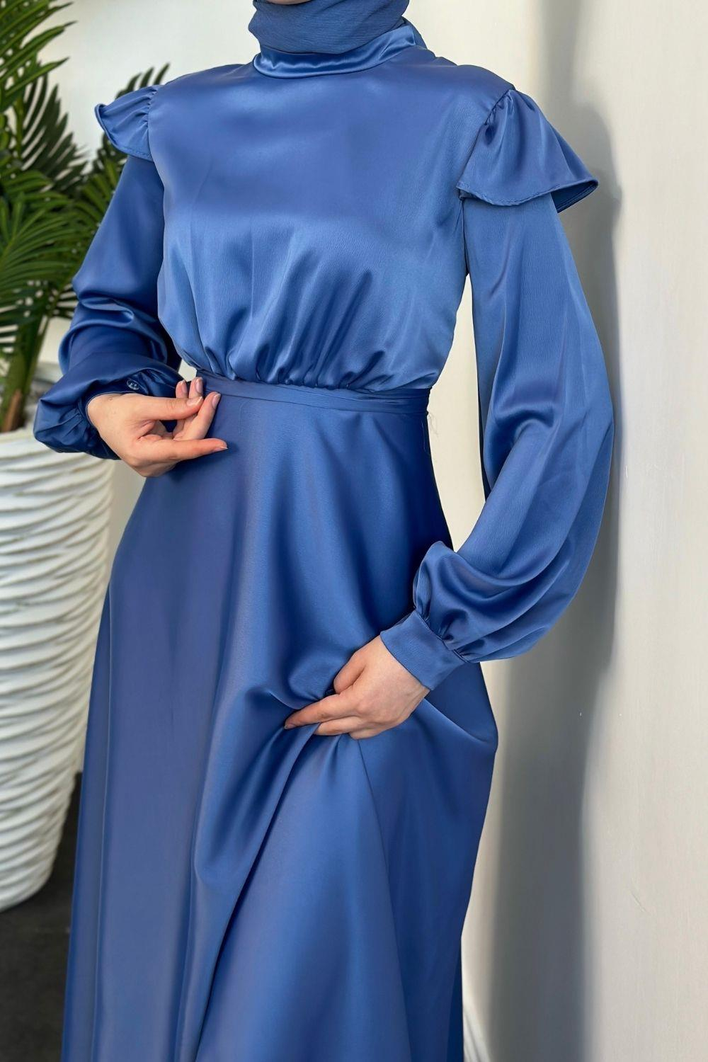 Cera Omzu Fırfır Saten Abiye Bebe Mavisi