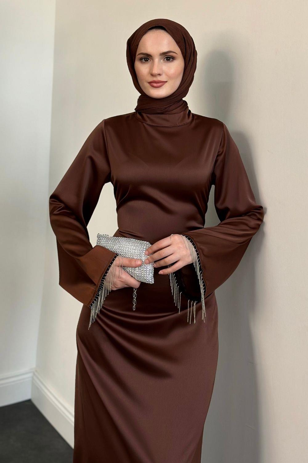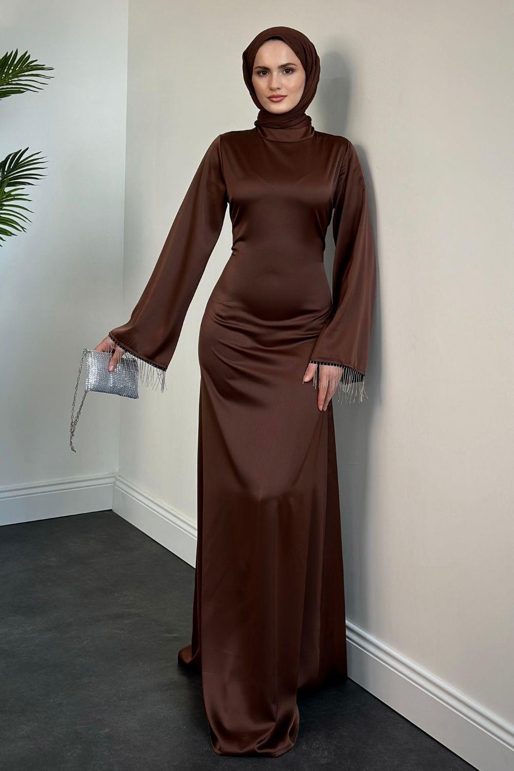 Pena İspanyol Kol Zincir Detay Abiye Kahverengi