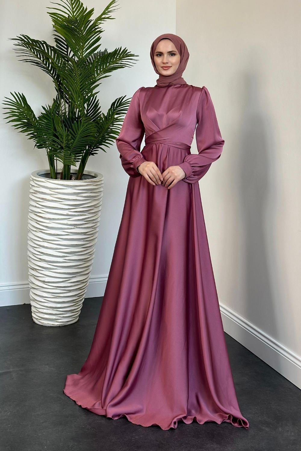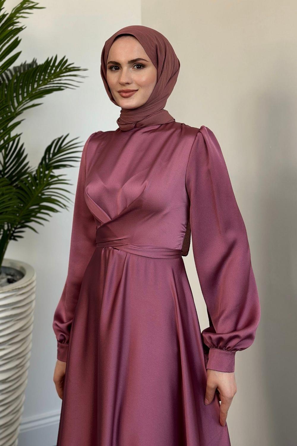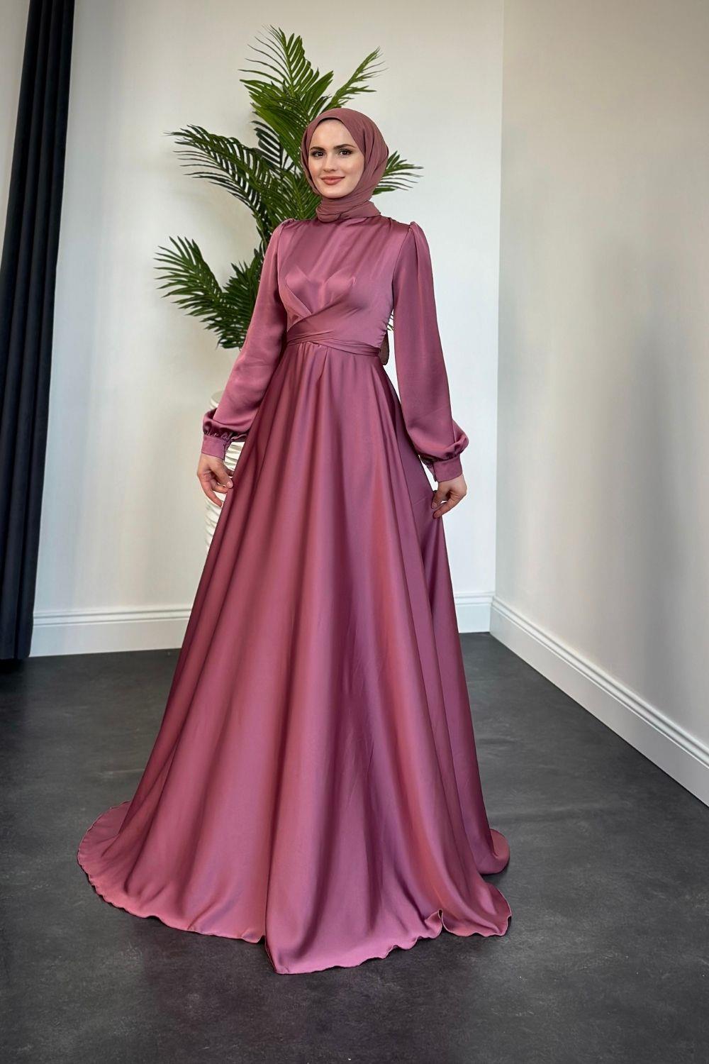 Samantha Önü Çapraz Detay Saten Abiye Gül Kurusu