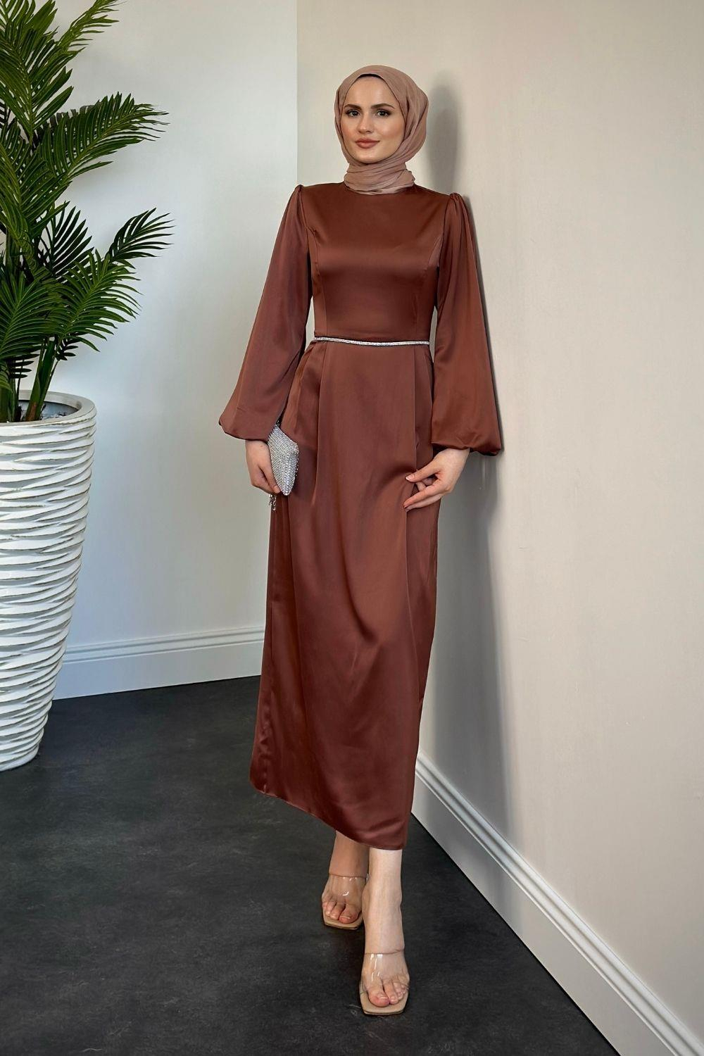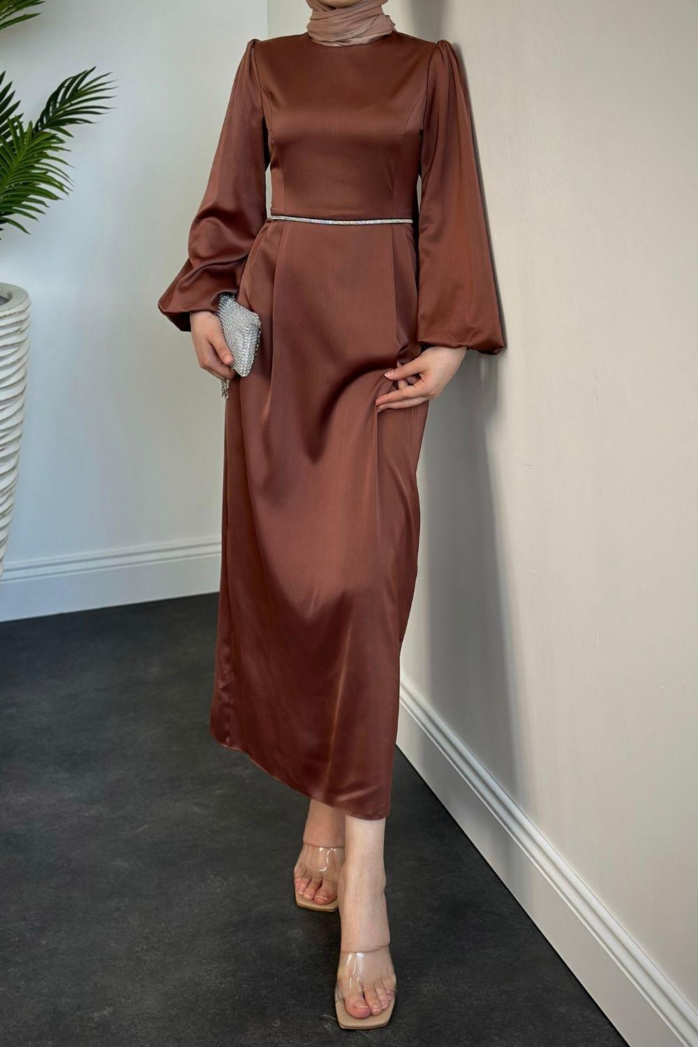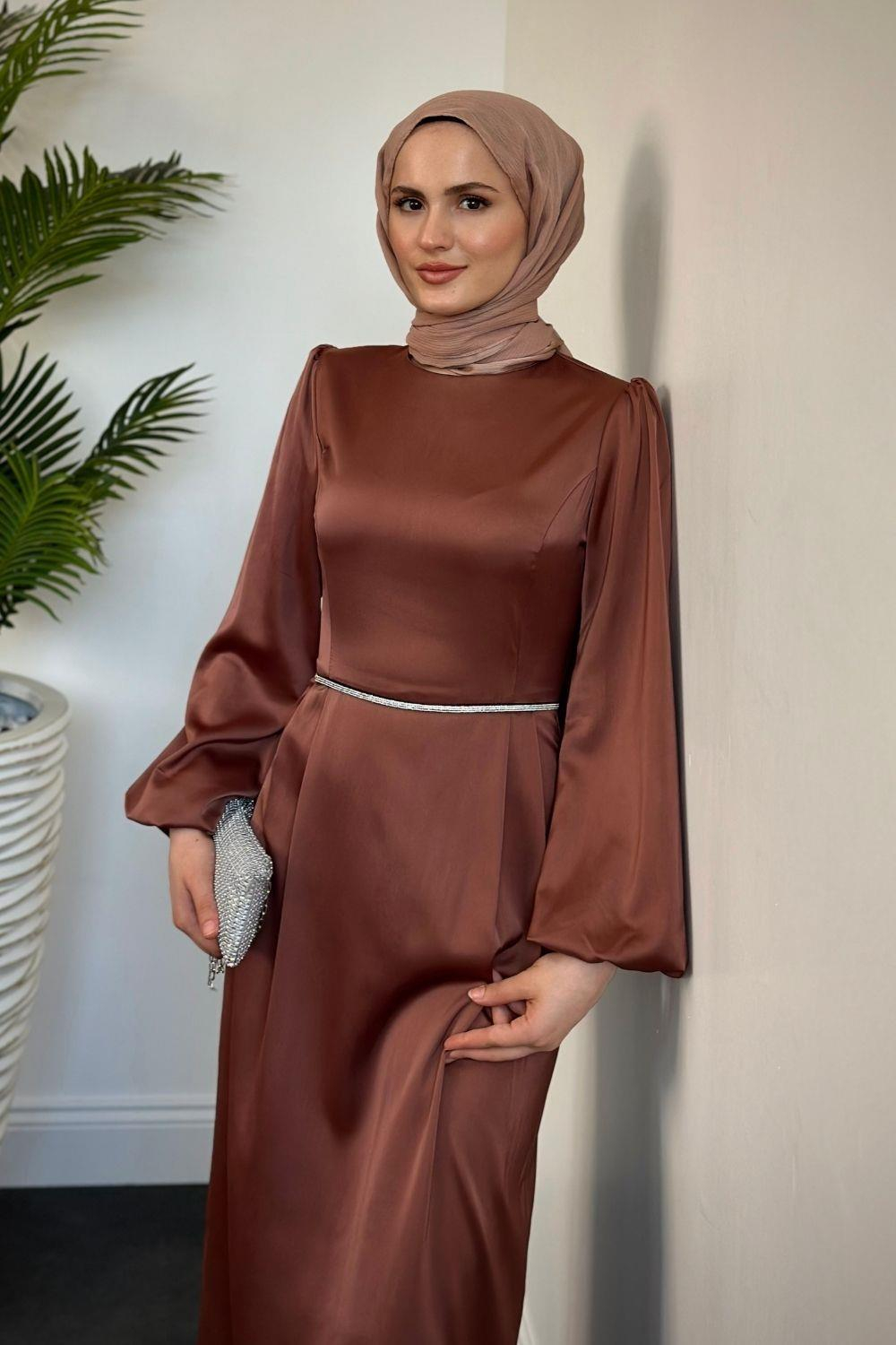 Nuvola Beli Taşlı Kalem Abiye Kahverengi