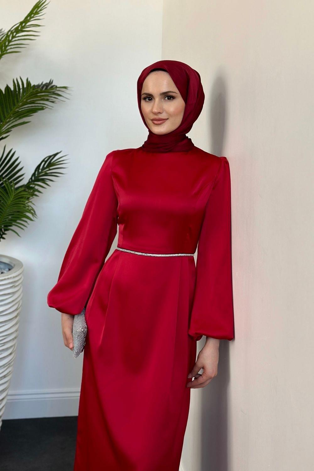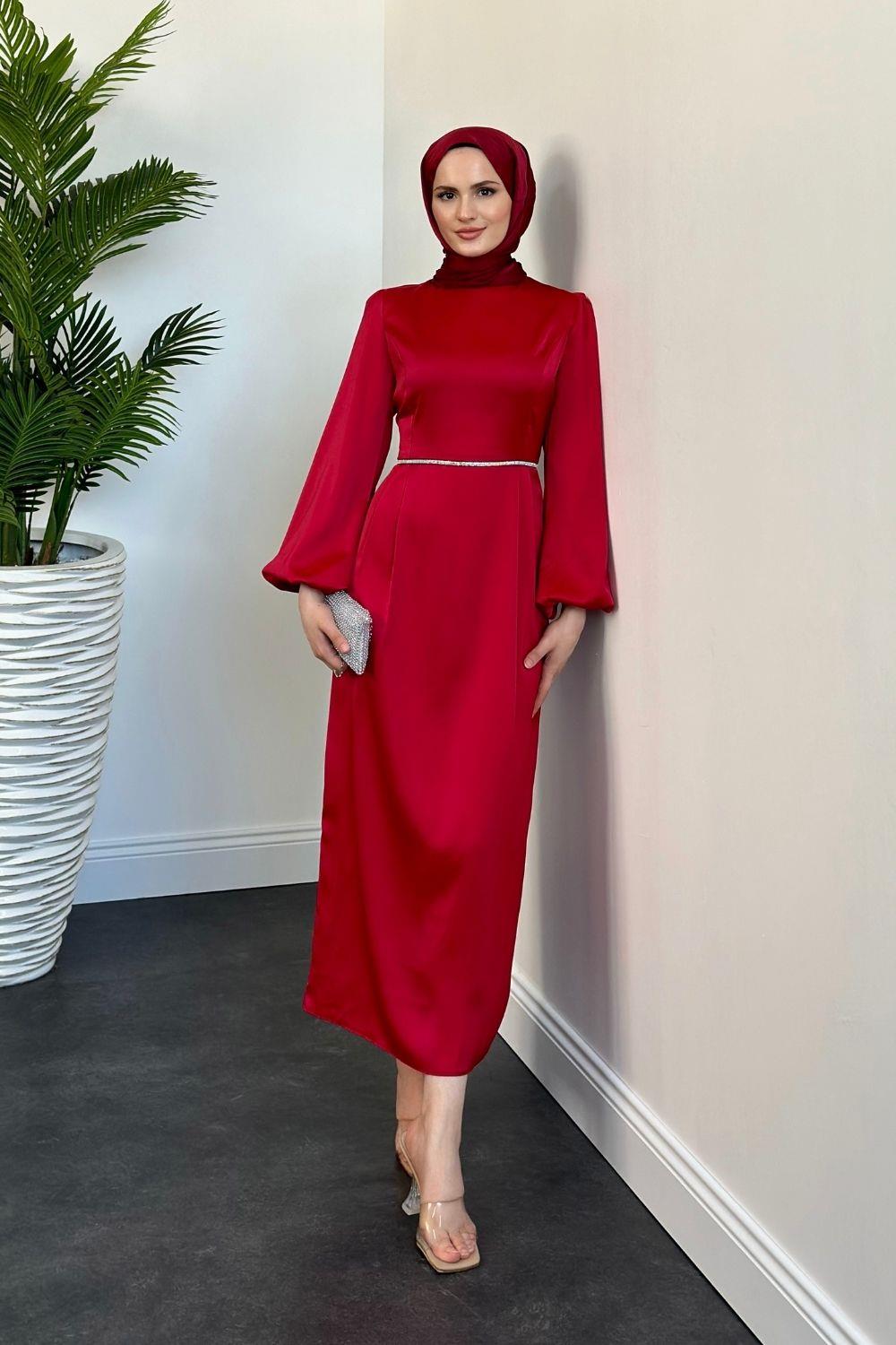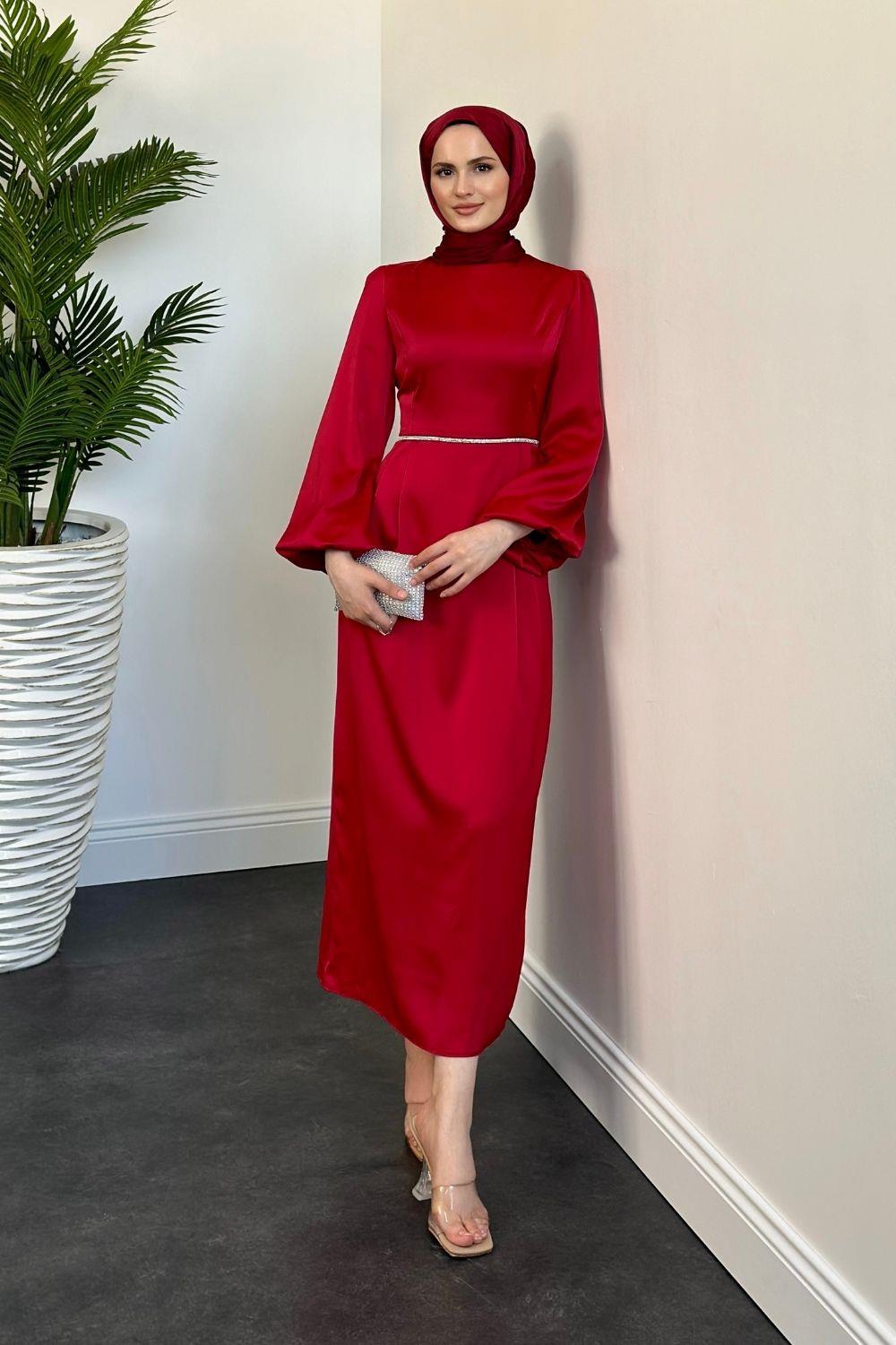 Nuvola Beli Taşlı Kalem Abiye Kırmızı