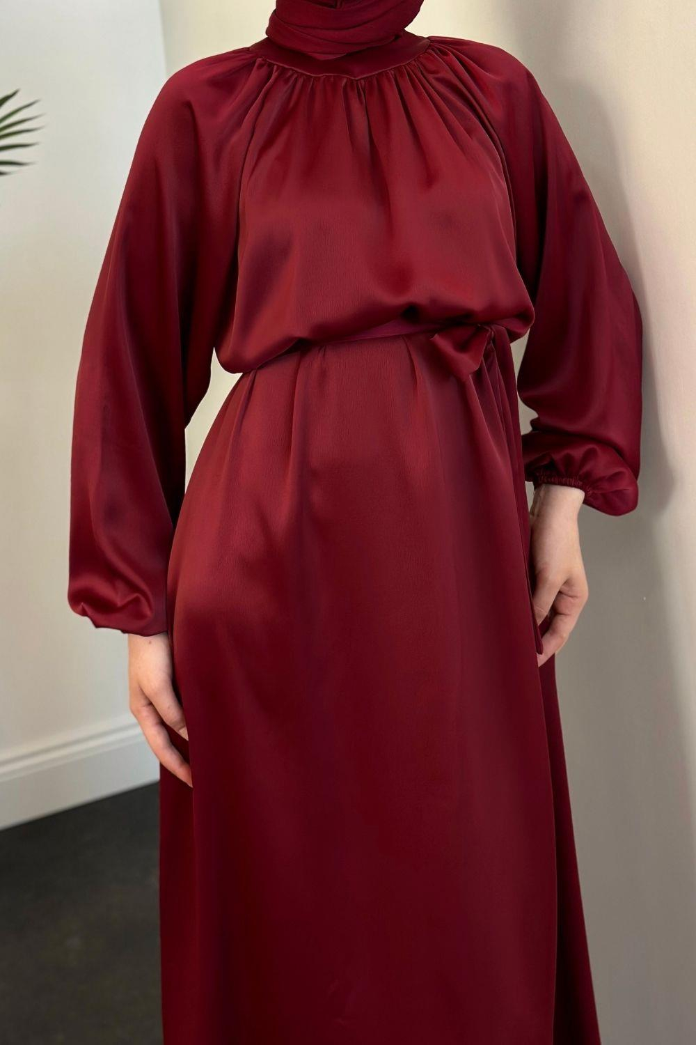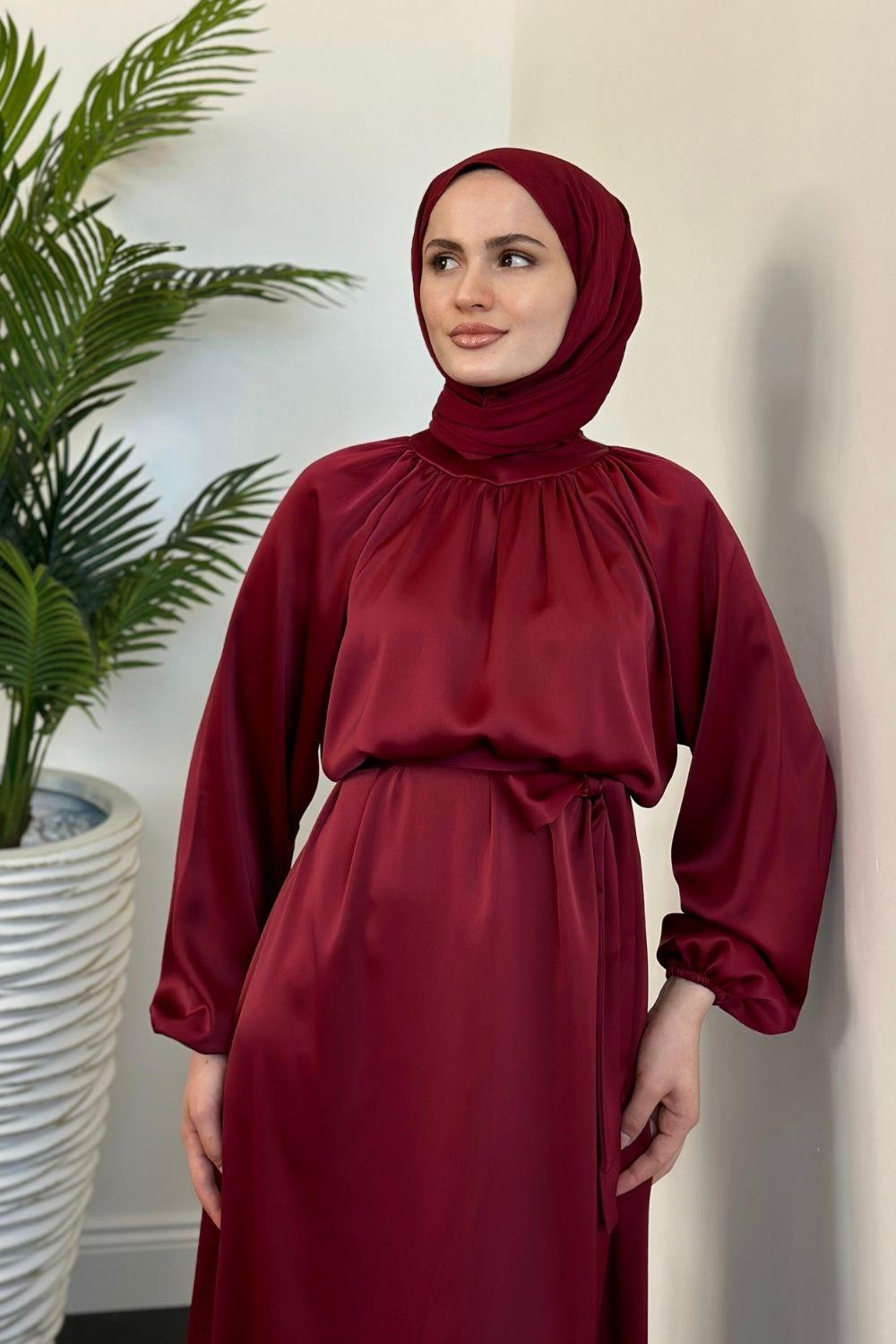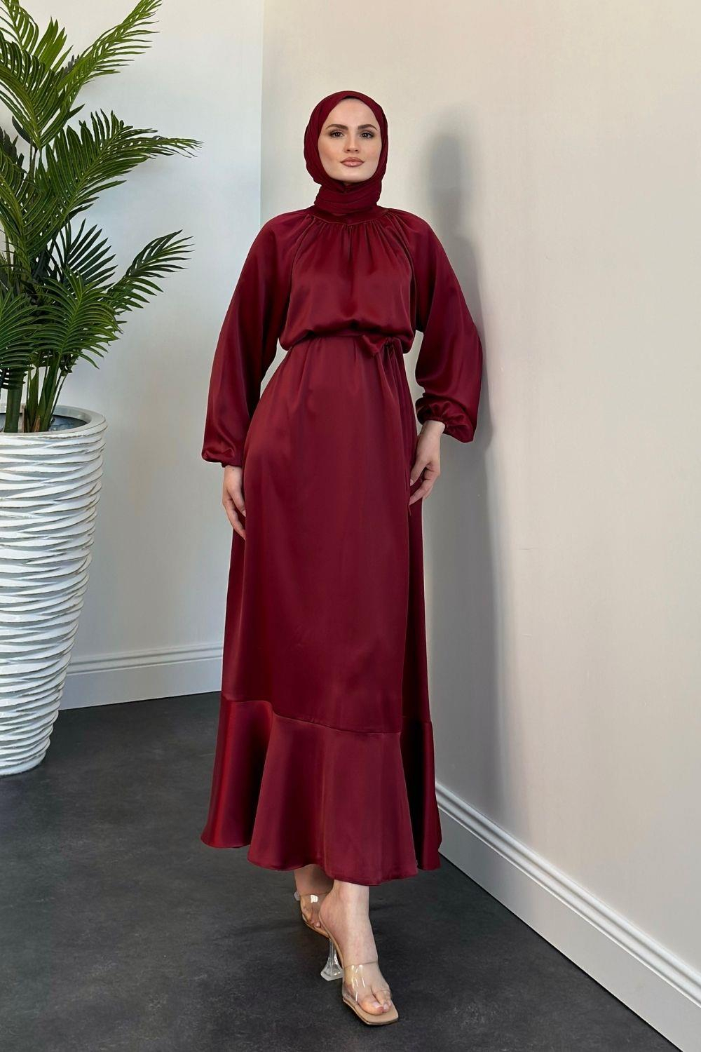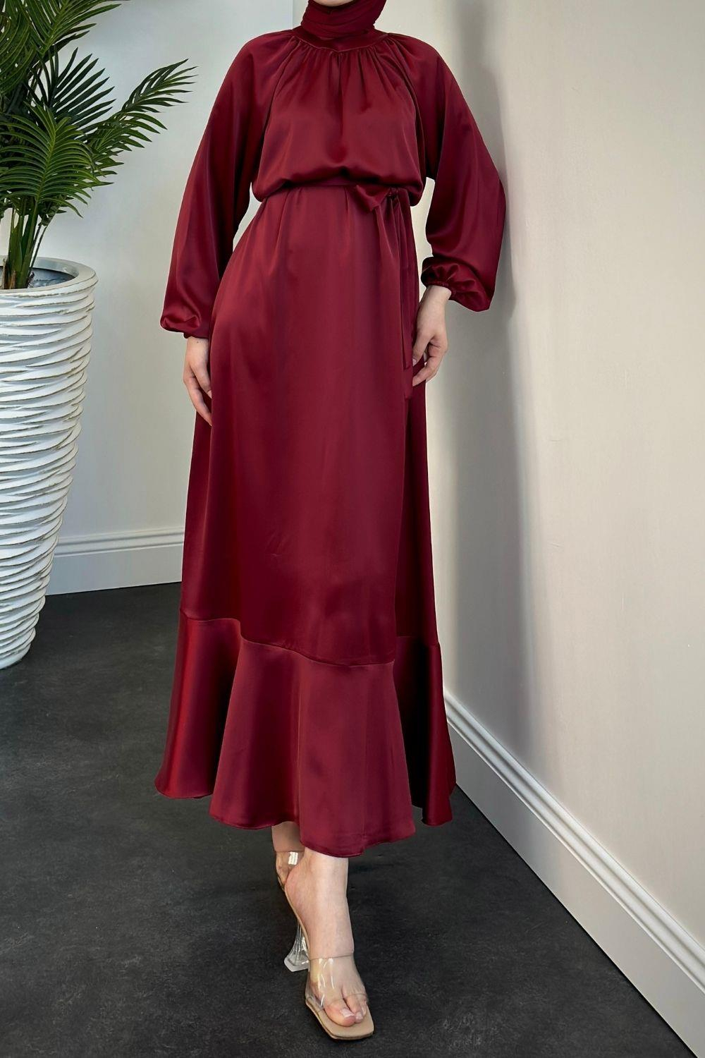 Jahan Altı Volan Saten Abiye Bordo